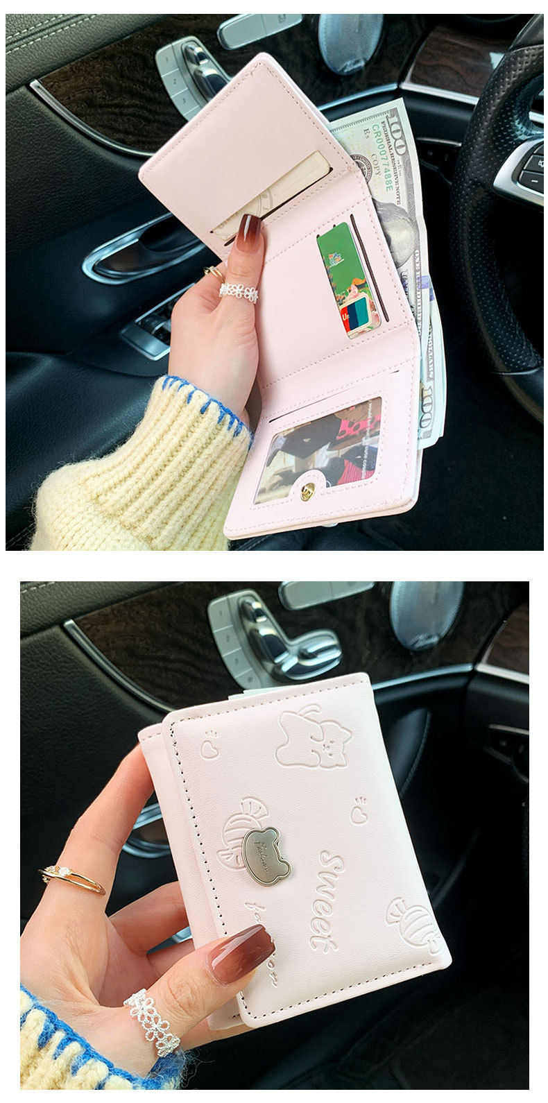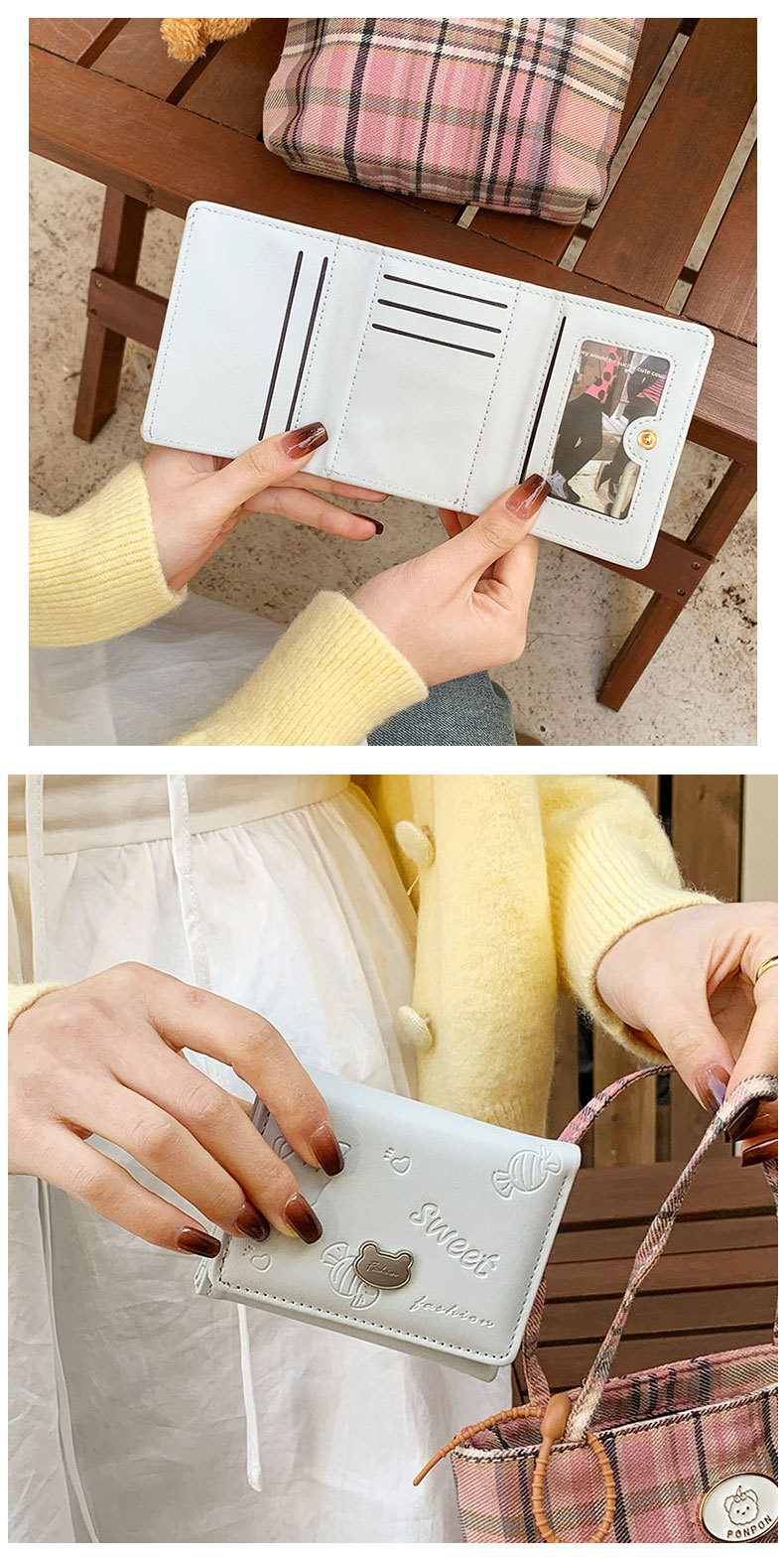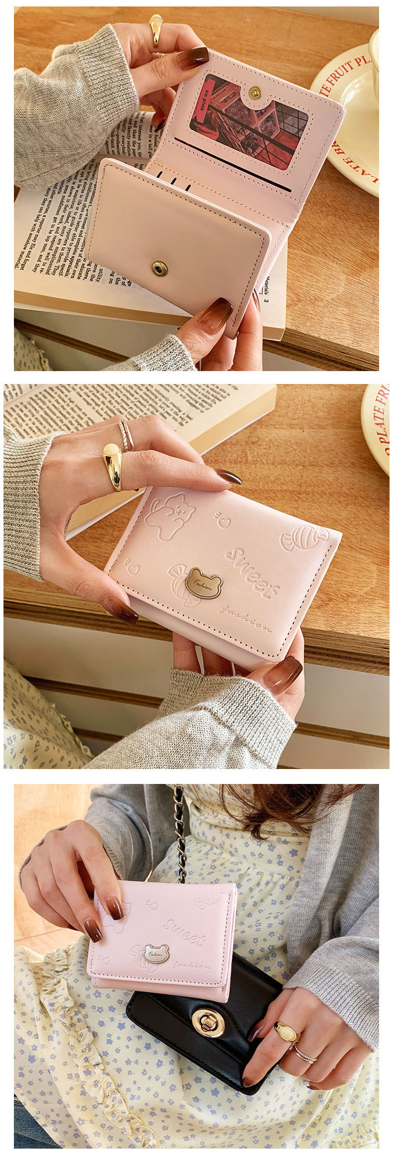 높은 가치 만화 짧은 지갑 여성 지갑 한국 곰 미니 PU 작은 신선한 귀여운 30% 할인 지갑스토어 가기
