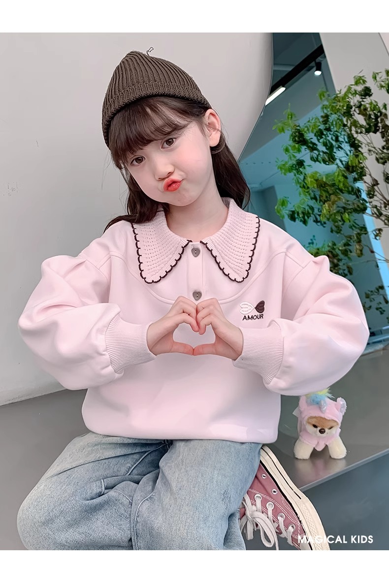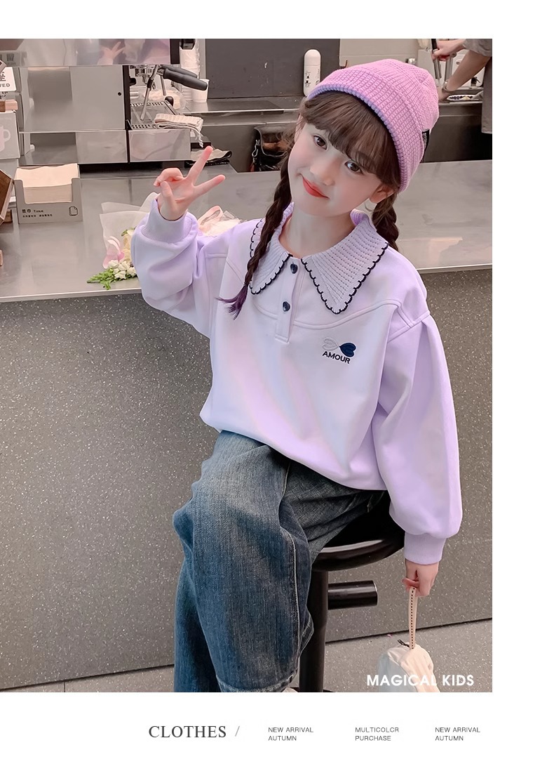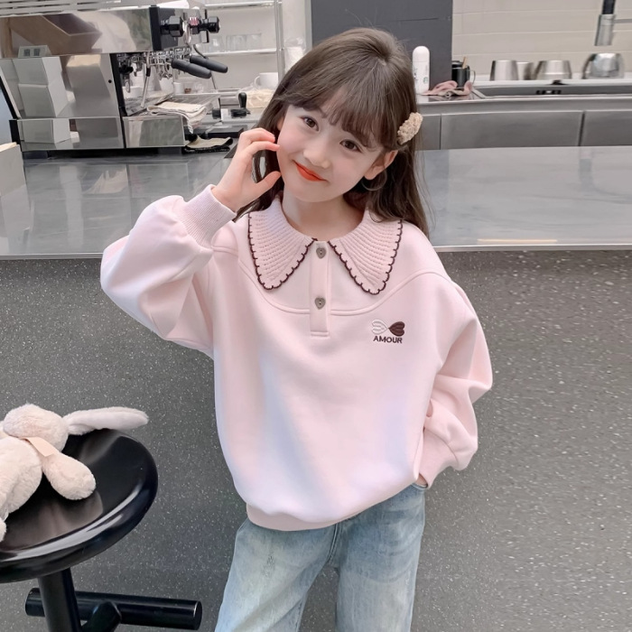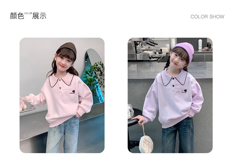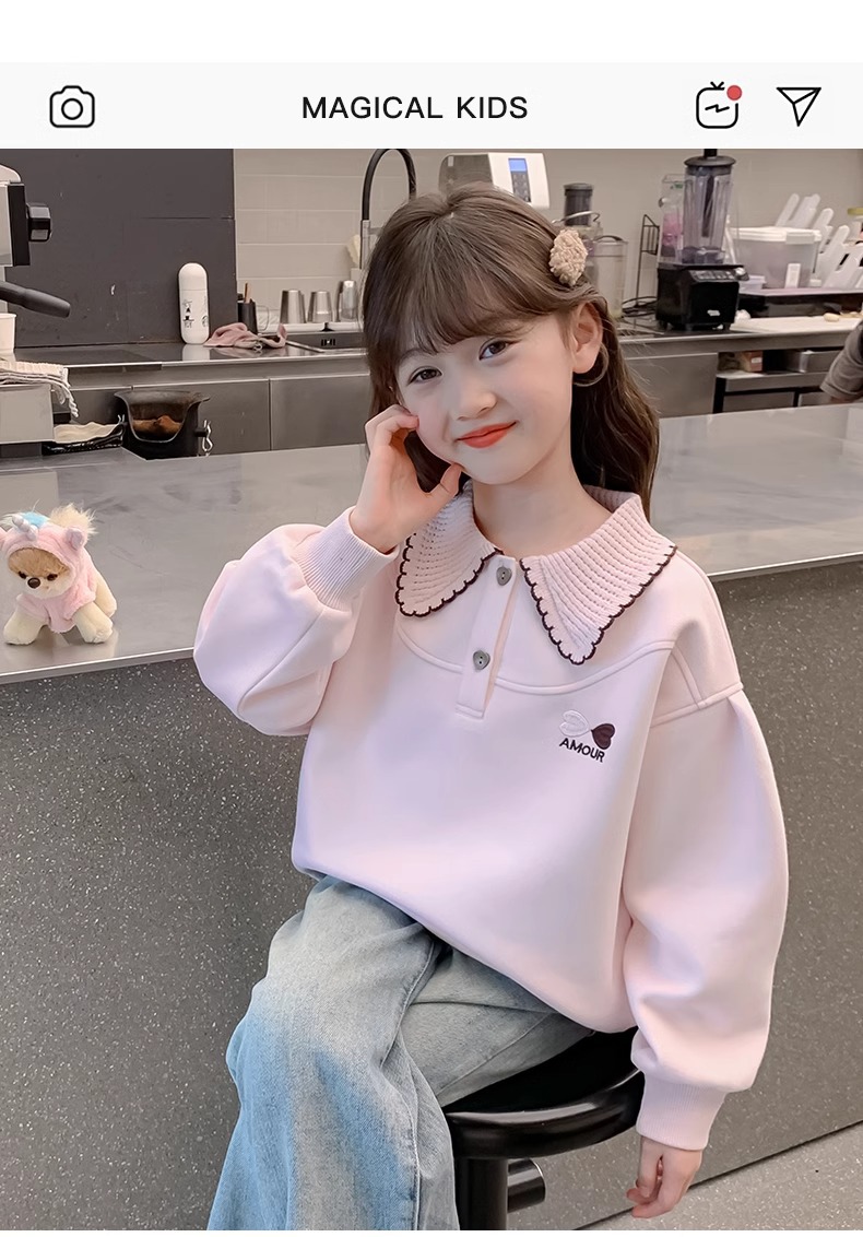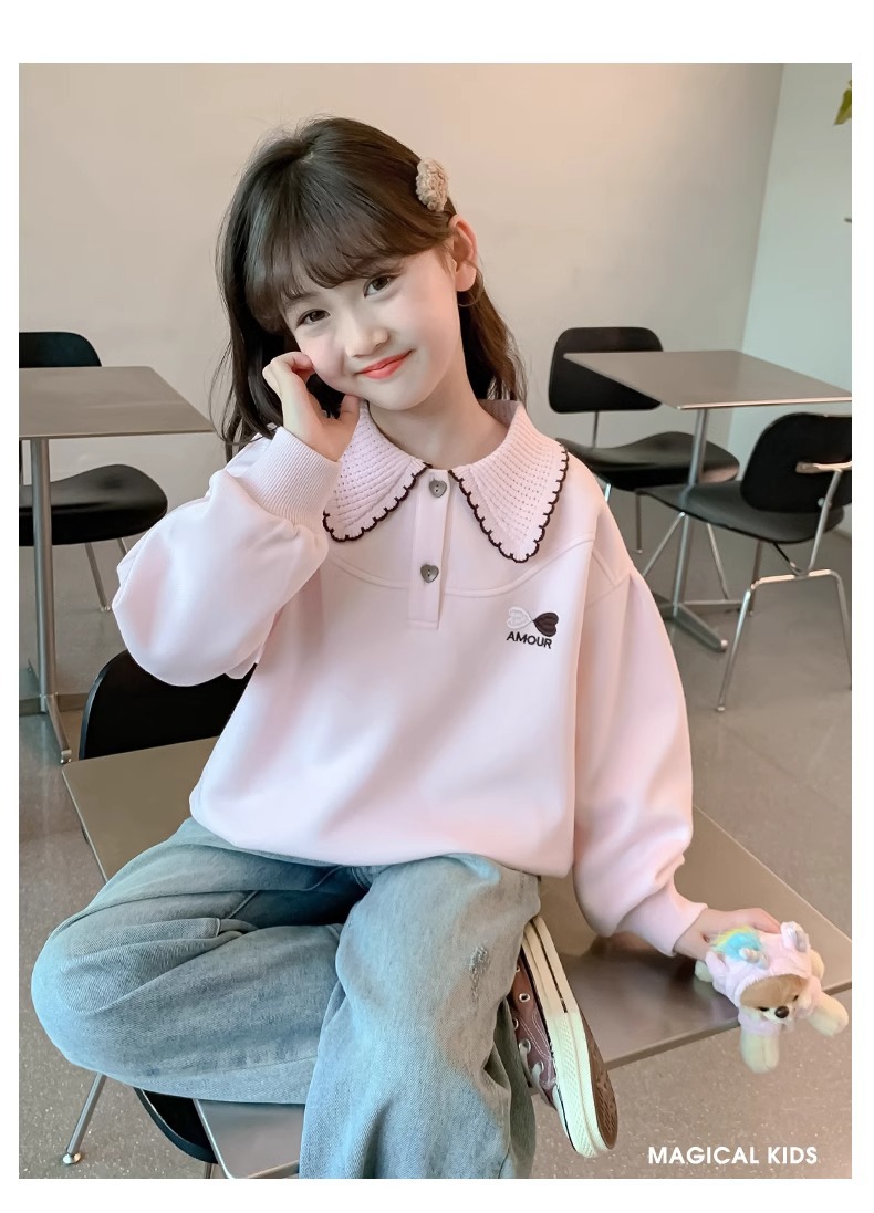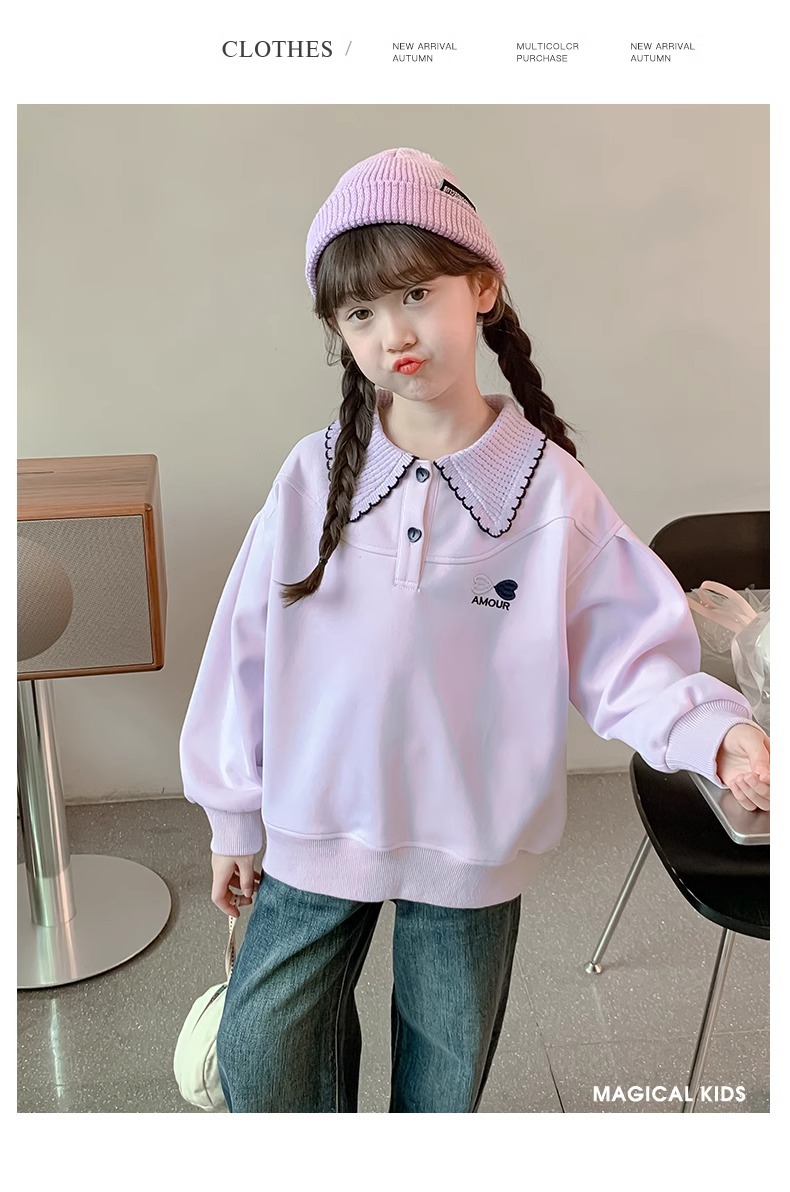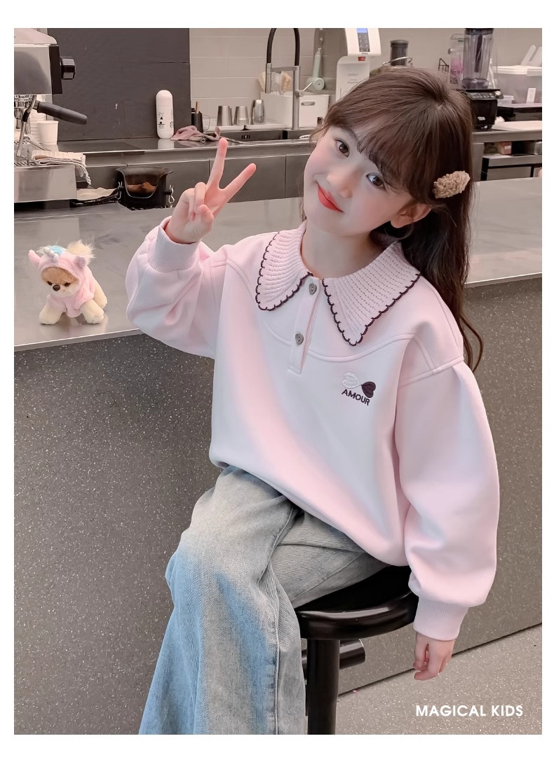 걸스 폴로 칼라 만화 중대 어린이를위한 올 매치 스웨트 셔츠 봄 새로운 서양 스타일 한국 느슨한 인형 칼라 풀오버스토어 가기