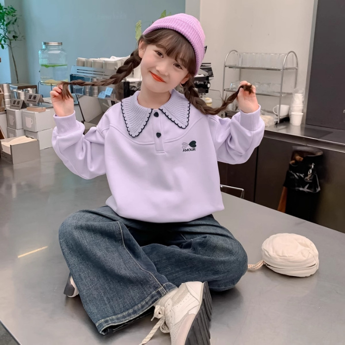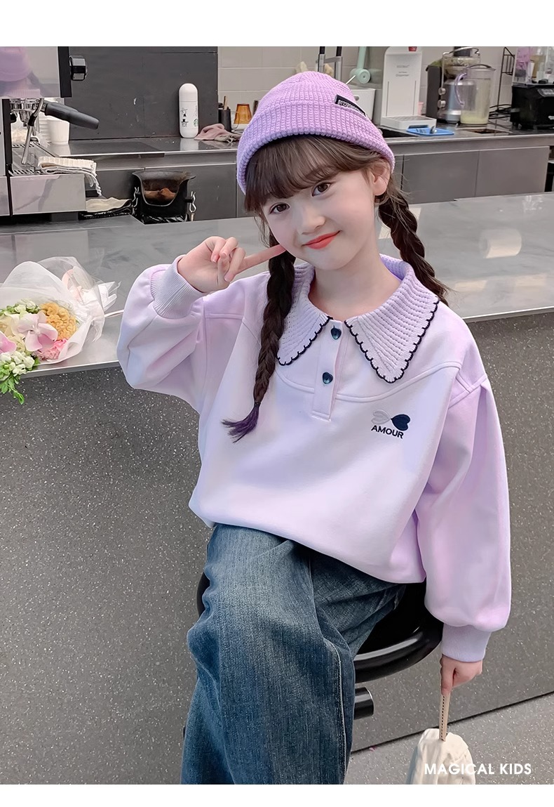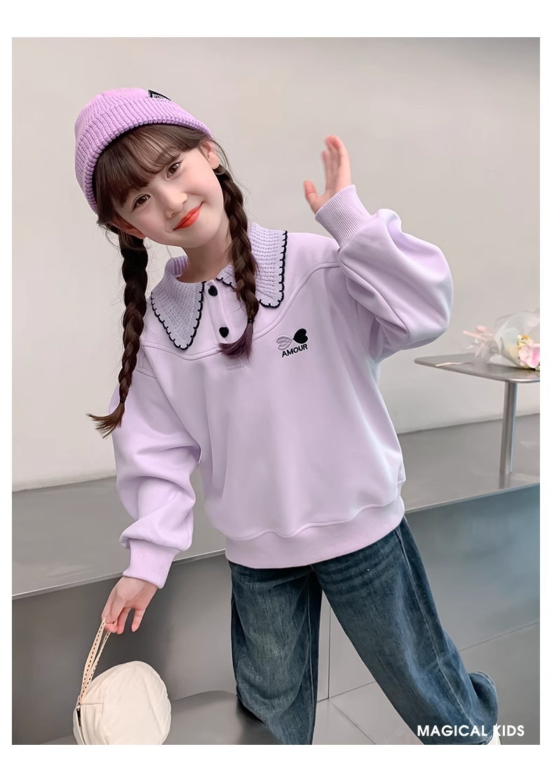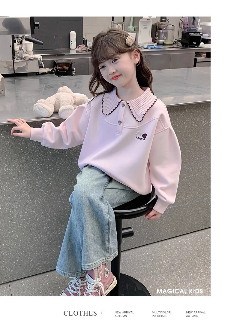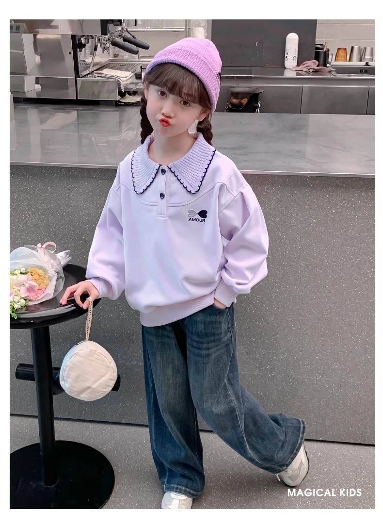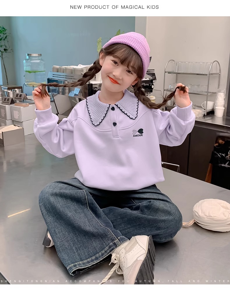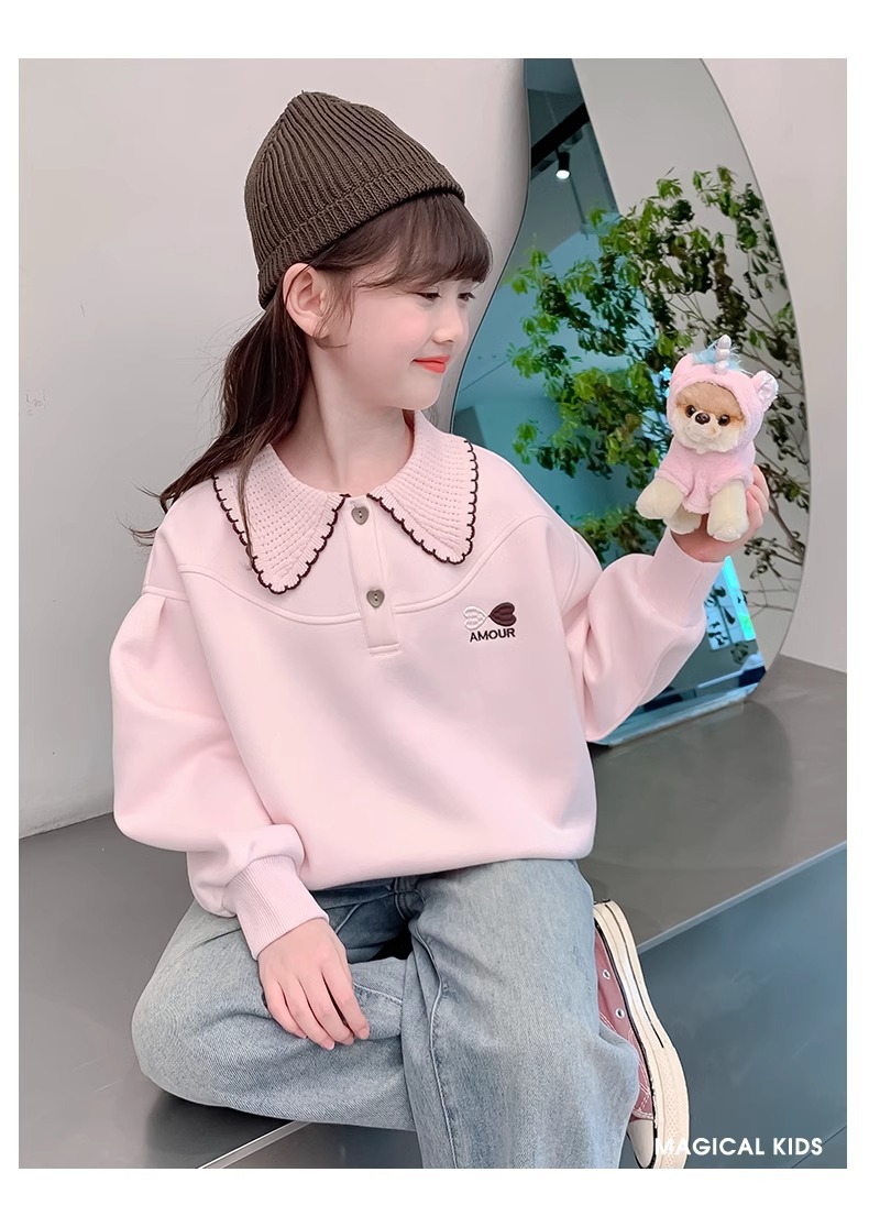 걸스 폴로 칼라 만화 중대 어린이를위한 올 매치 스웨트 셔츠 봄 새로운 서양 스타일 한국 느슨한 인형 칼라 풀오버스토어 가기
