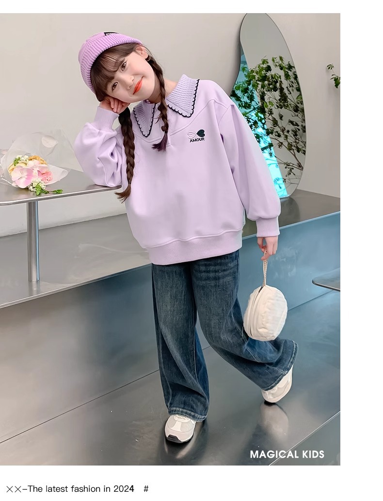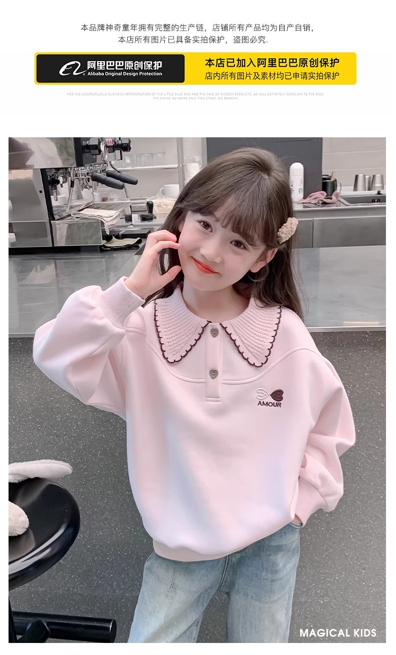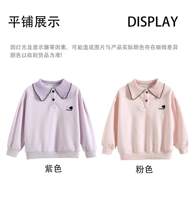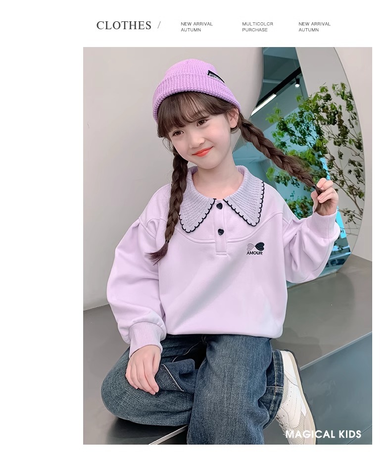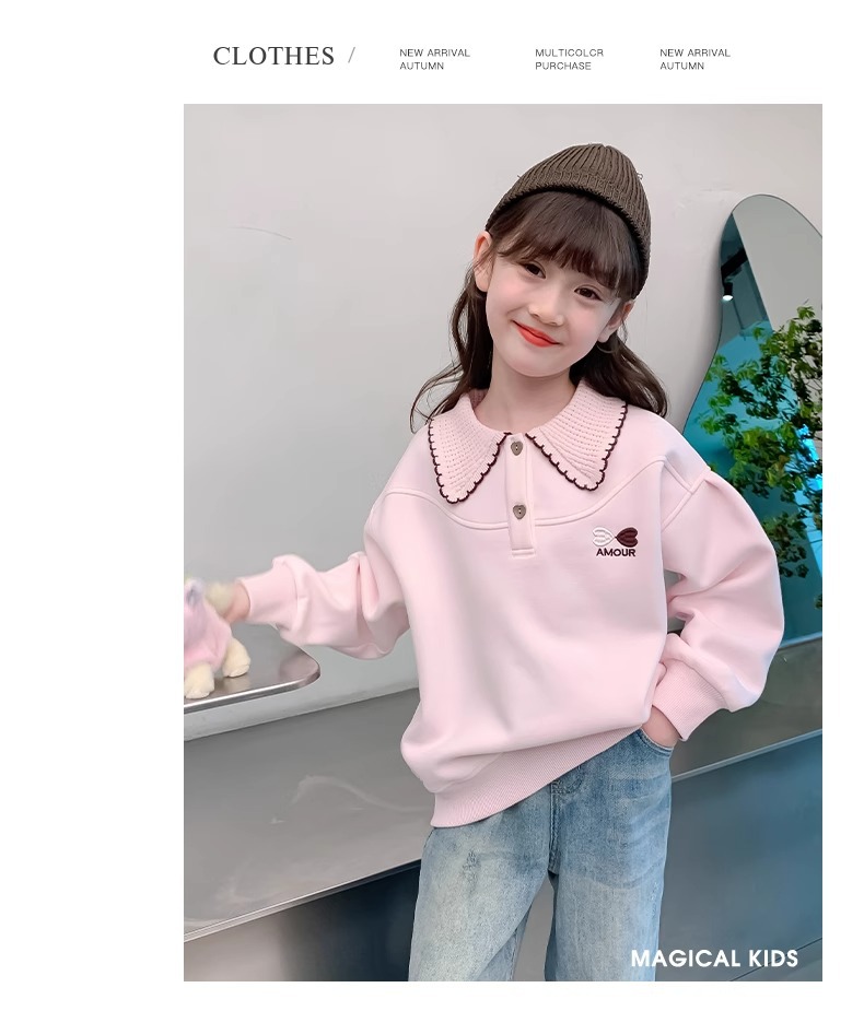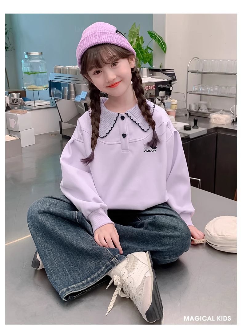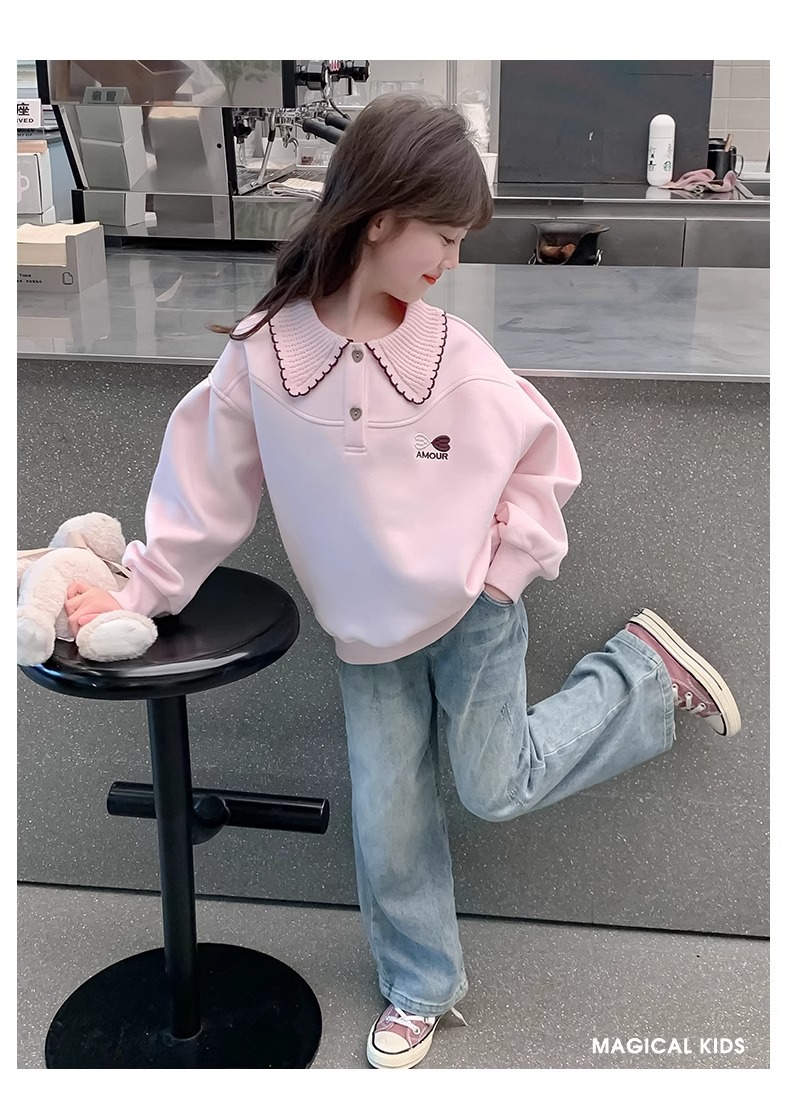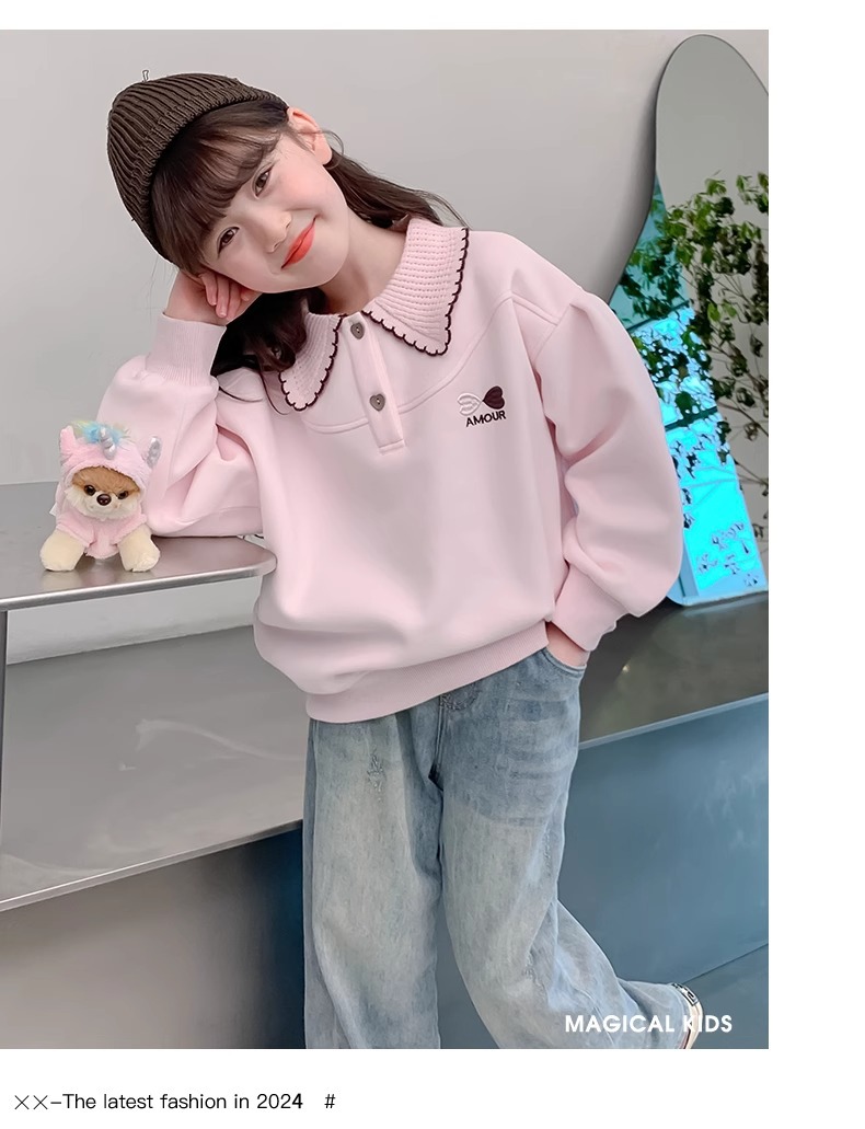 걸스 폴로 칼라 만화 중대 어린이를위한 올 매치 스웨트 셔츠 봄 새로운 서양 스타일 한국 느슨한 인형 칼라 풀오버스토어 가기