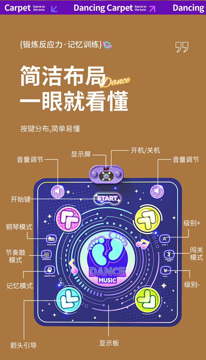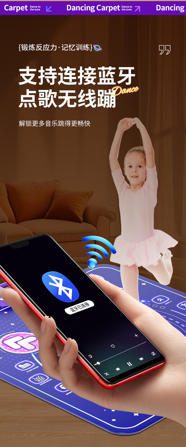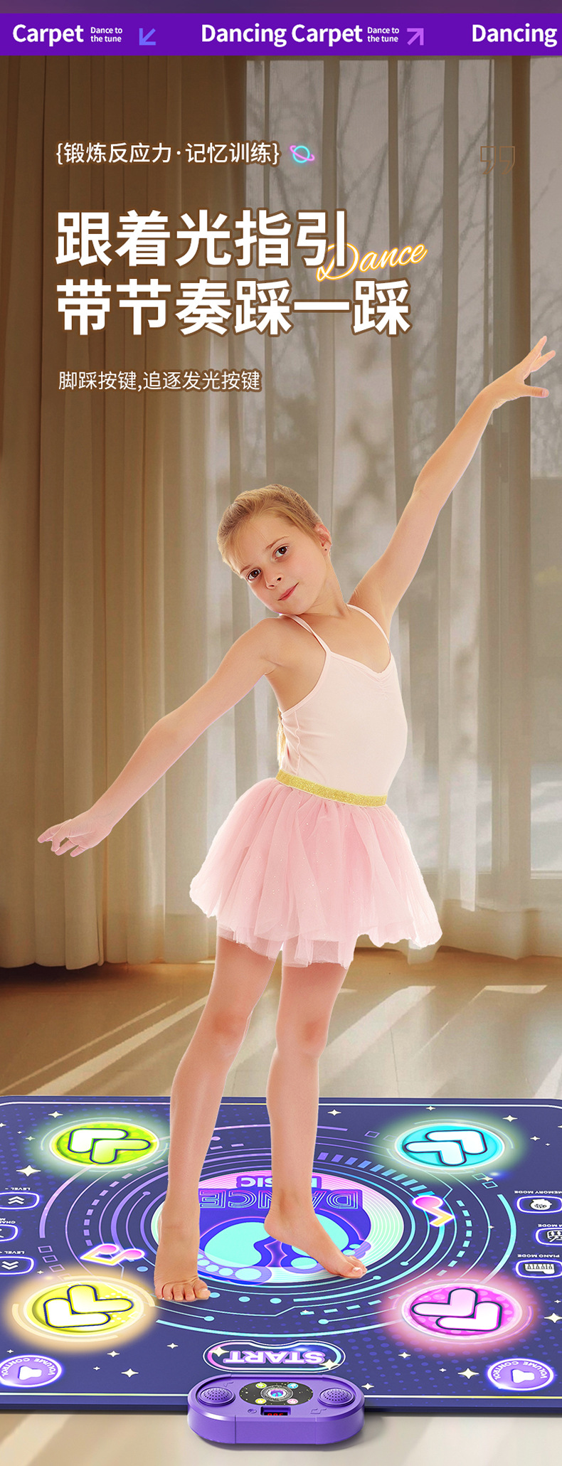 국경 간 댄스 담요 음악 블루투스 스포츠 센서 시스템 트레이너 피트니스 긴 높이 게임 점프 담요 어린이 장난감스토어 가기