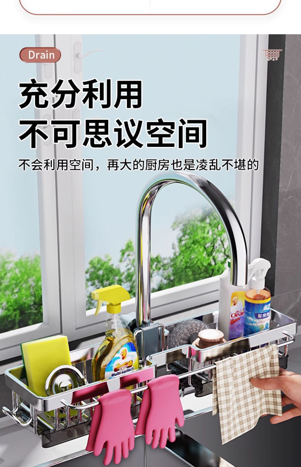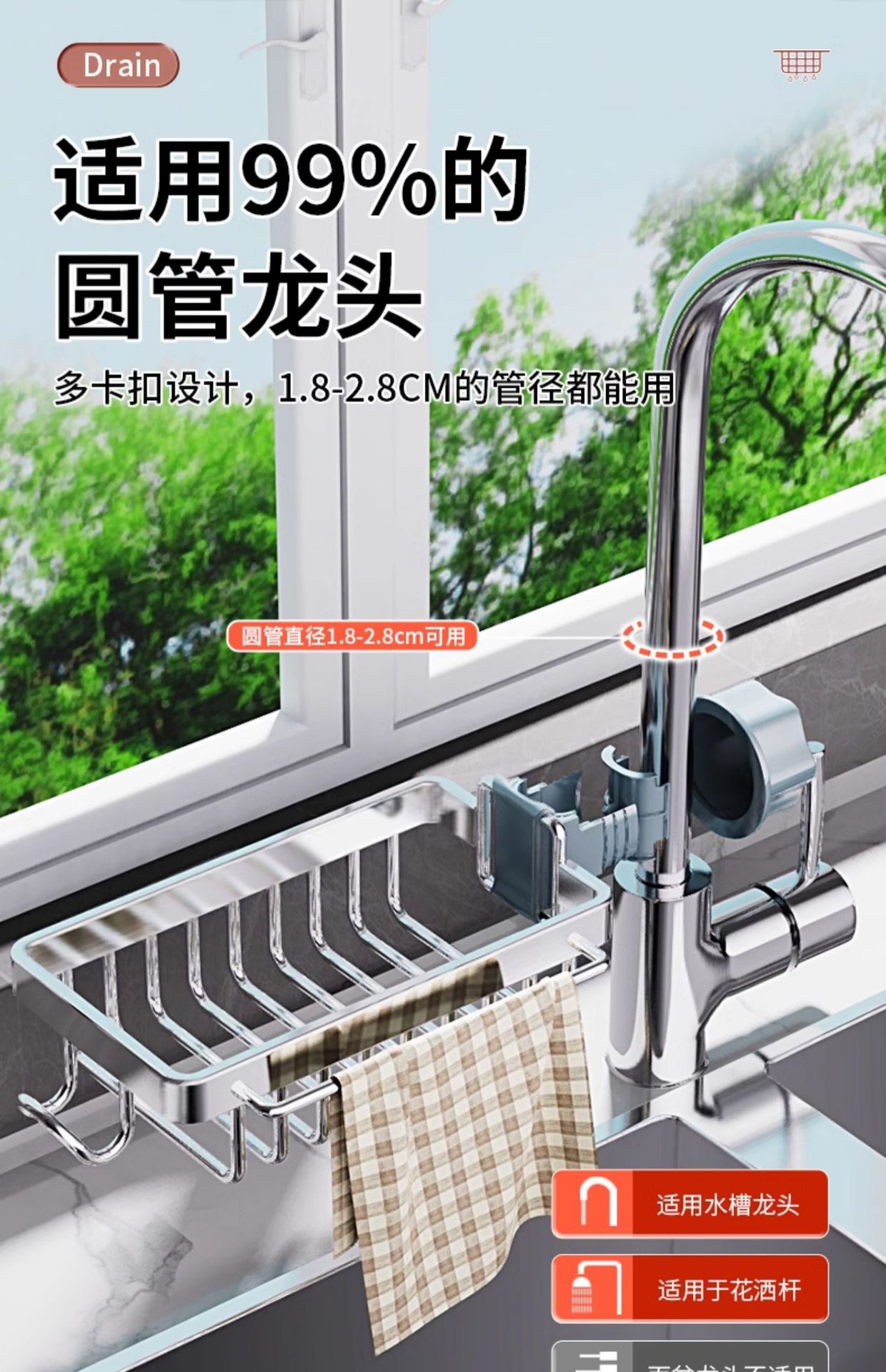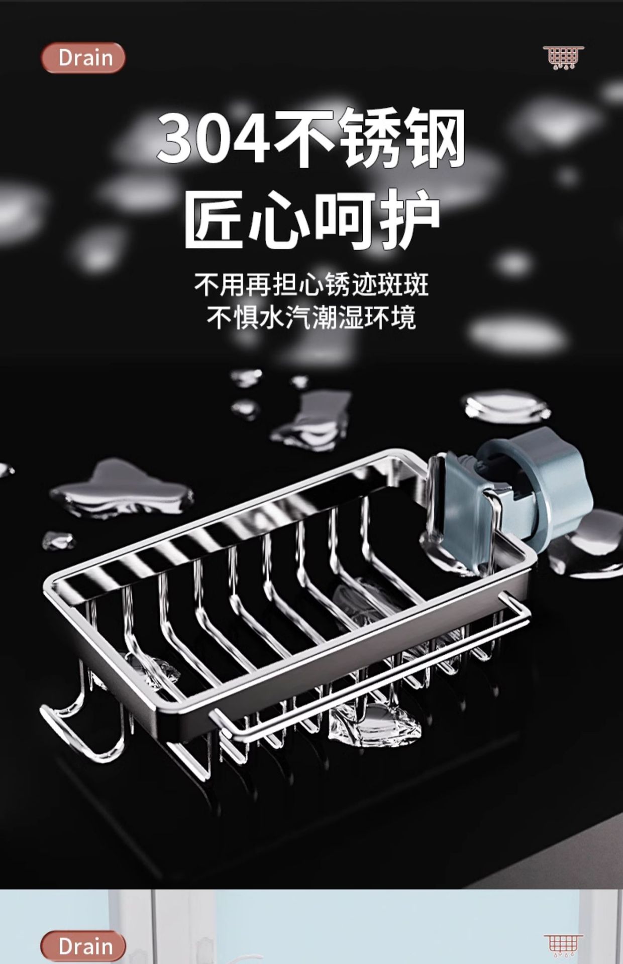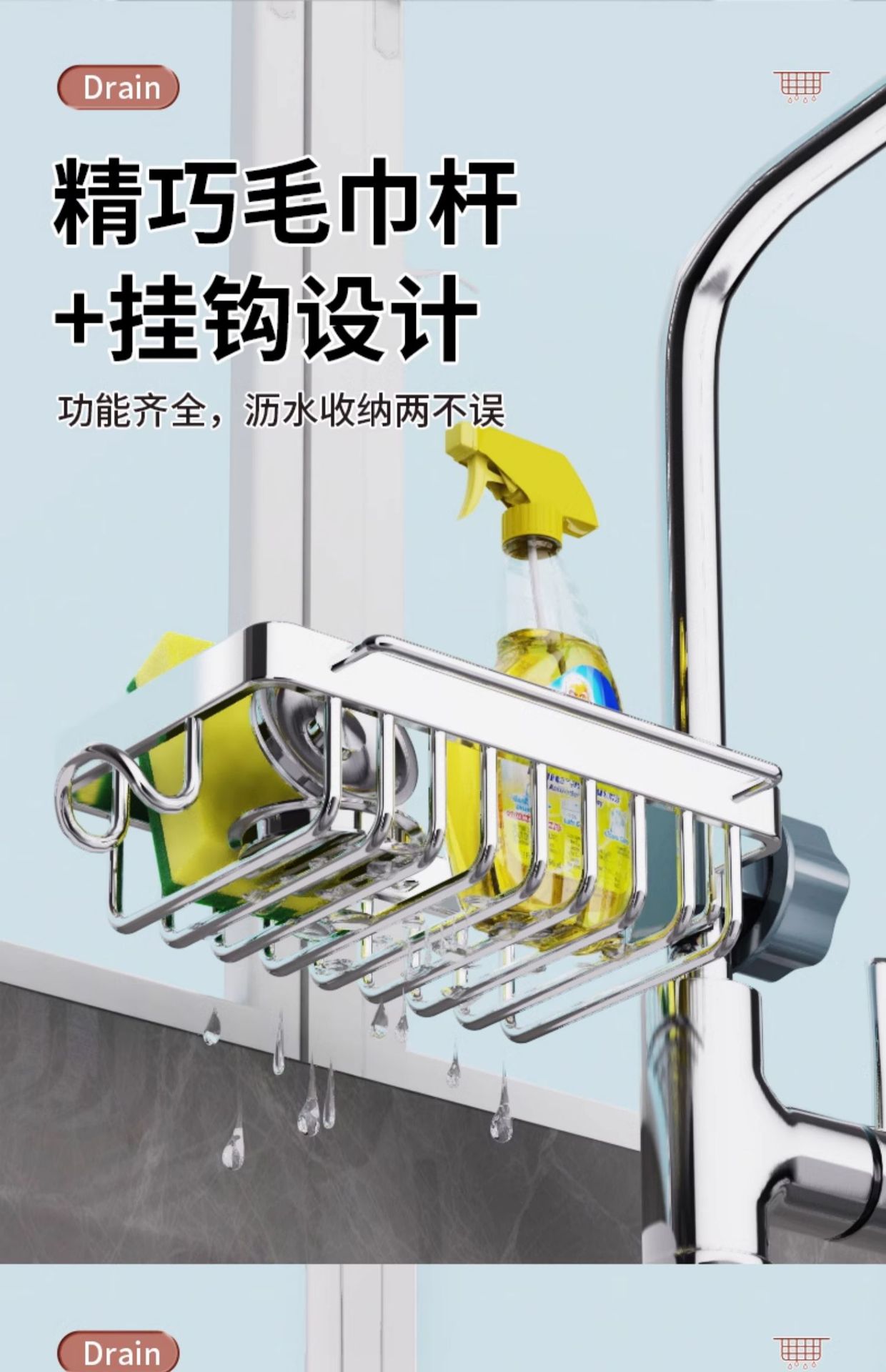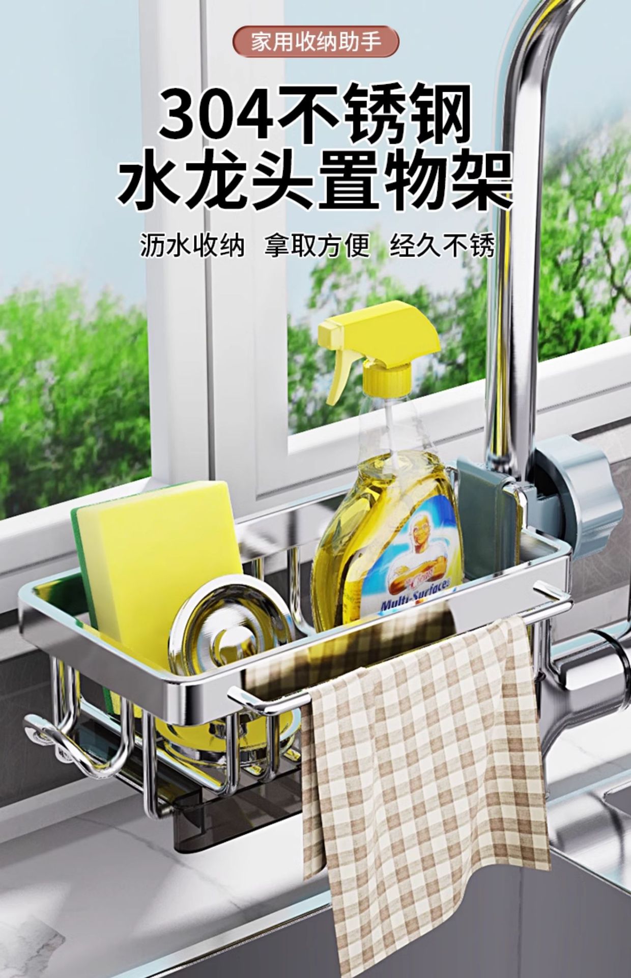 304 스테인레스 스틸 수도꼭지 저장 랙 주방 용품 수영장 싱크 저장 그릇 스폰지 헝겊 건조 랙