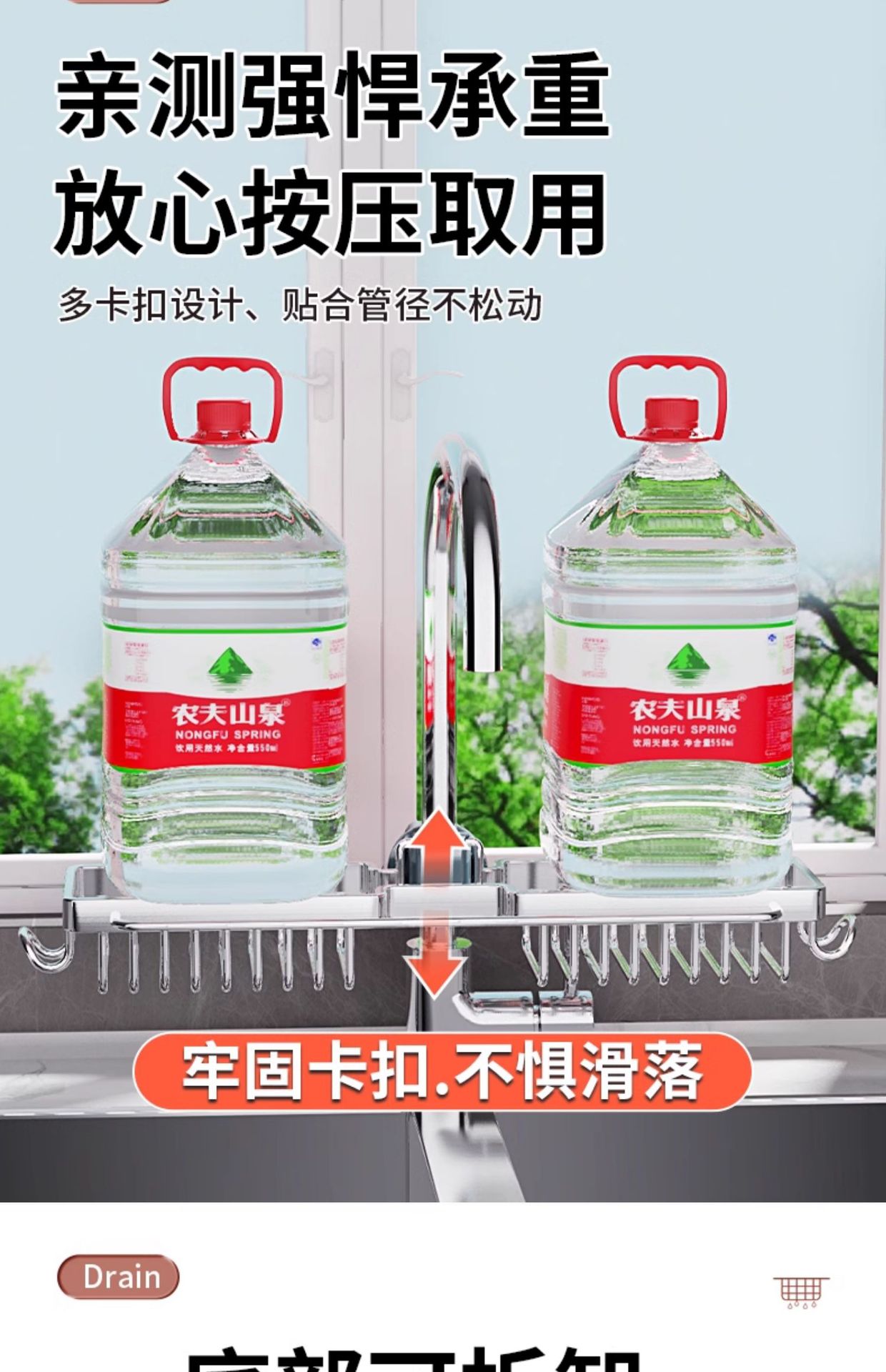 • [304 스테인레스 스틸·특대] [로드·후크 포함|왼쪽 모델 + 물받이]