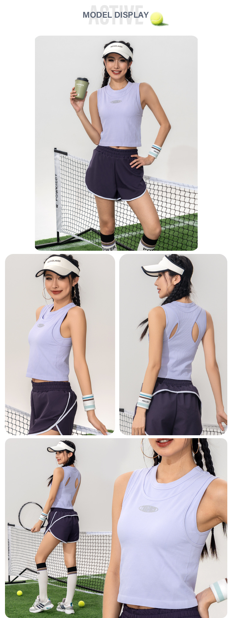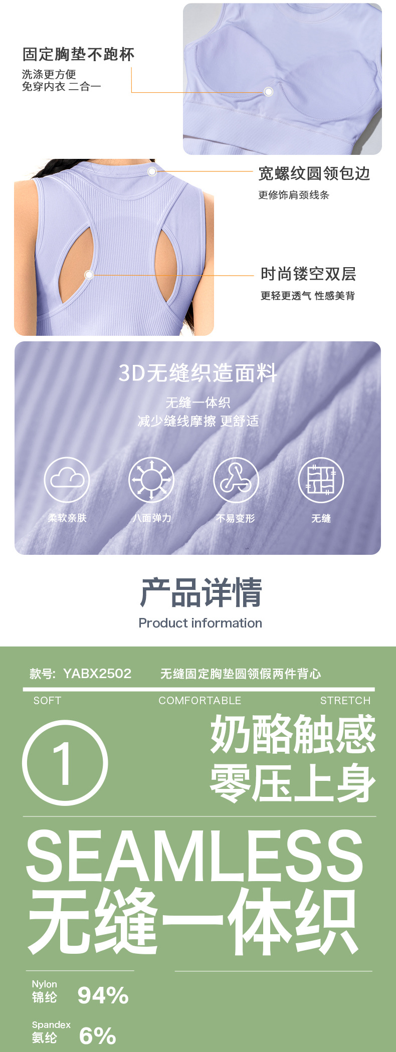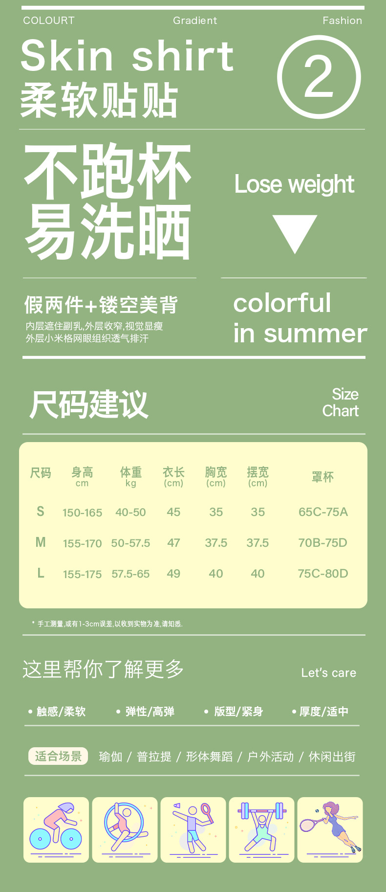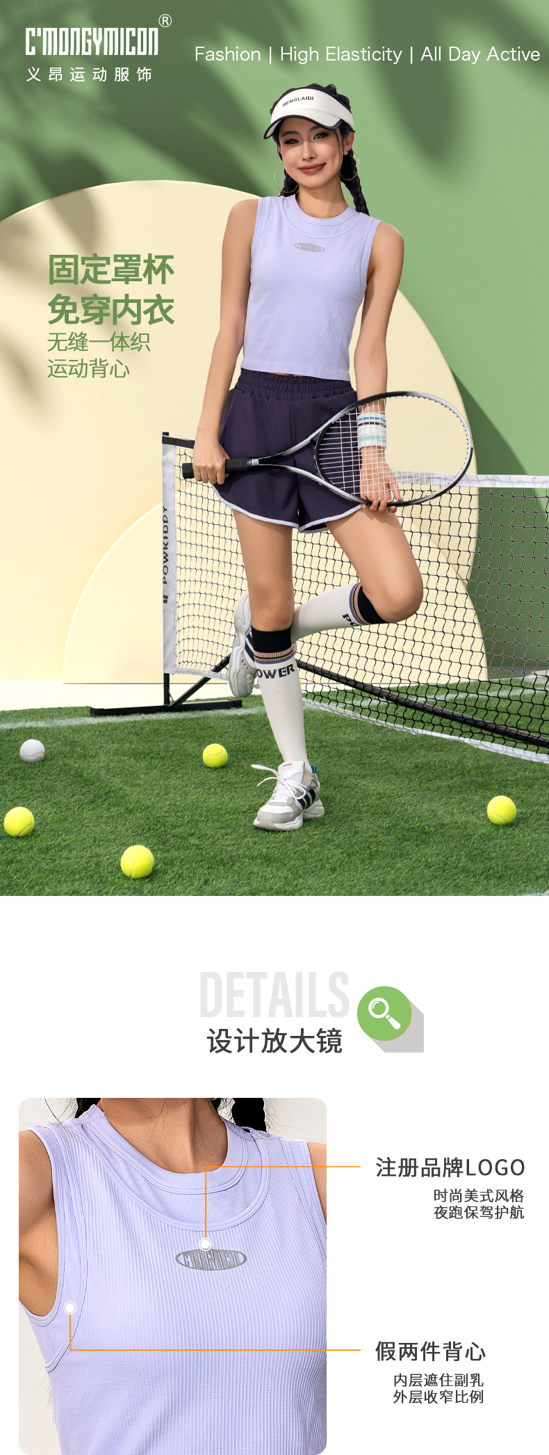 봄과 여름 새로운 요가 스포츠 최고 여성 고정 원피스 컵 아름다운 백 요가 의류 커버 파라미리스 충격 방지 더블 레이어 조끼
