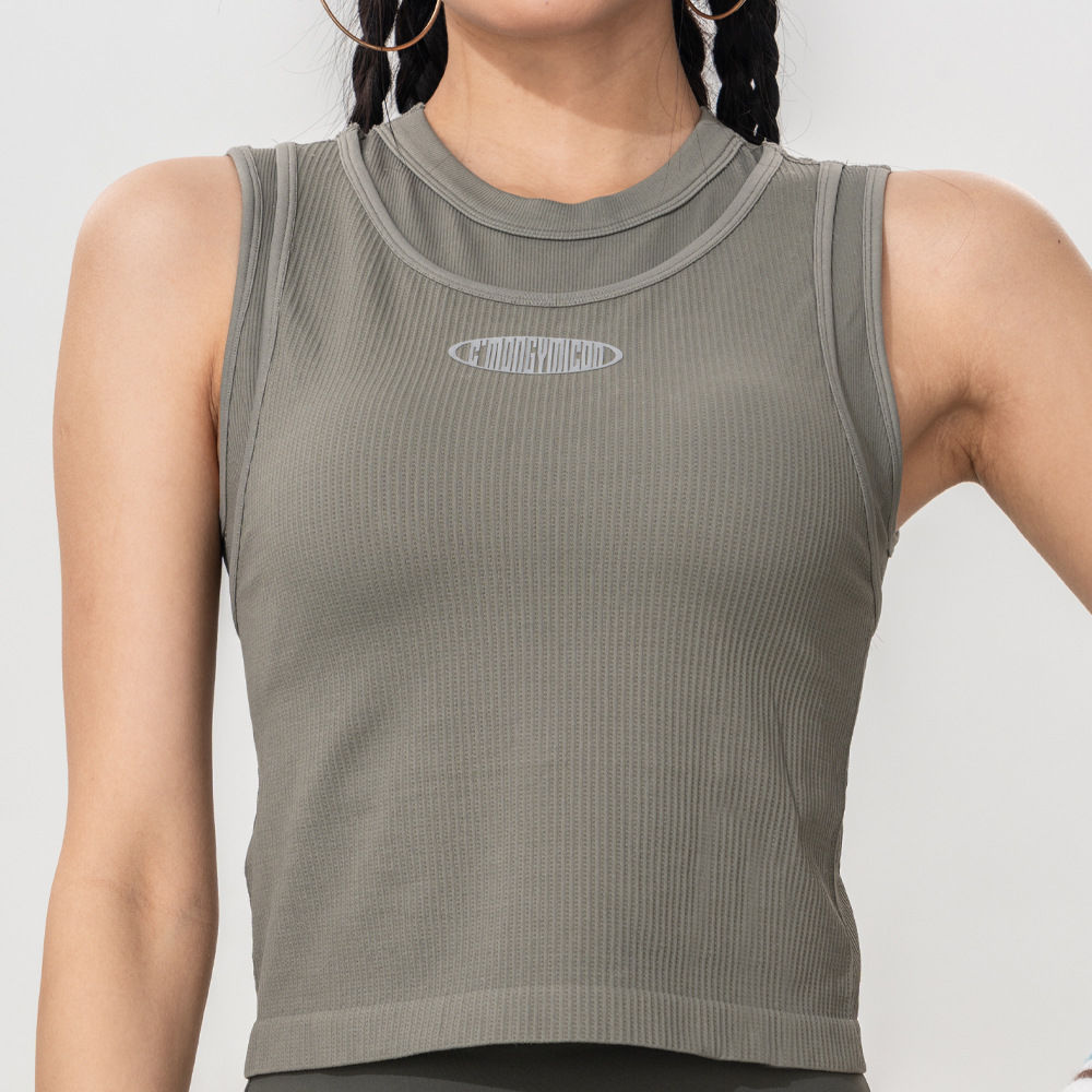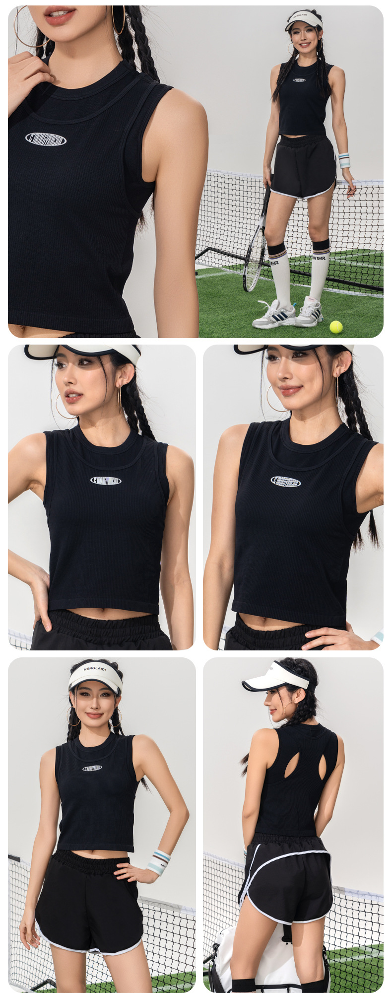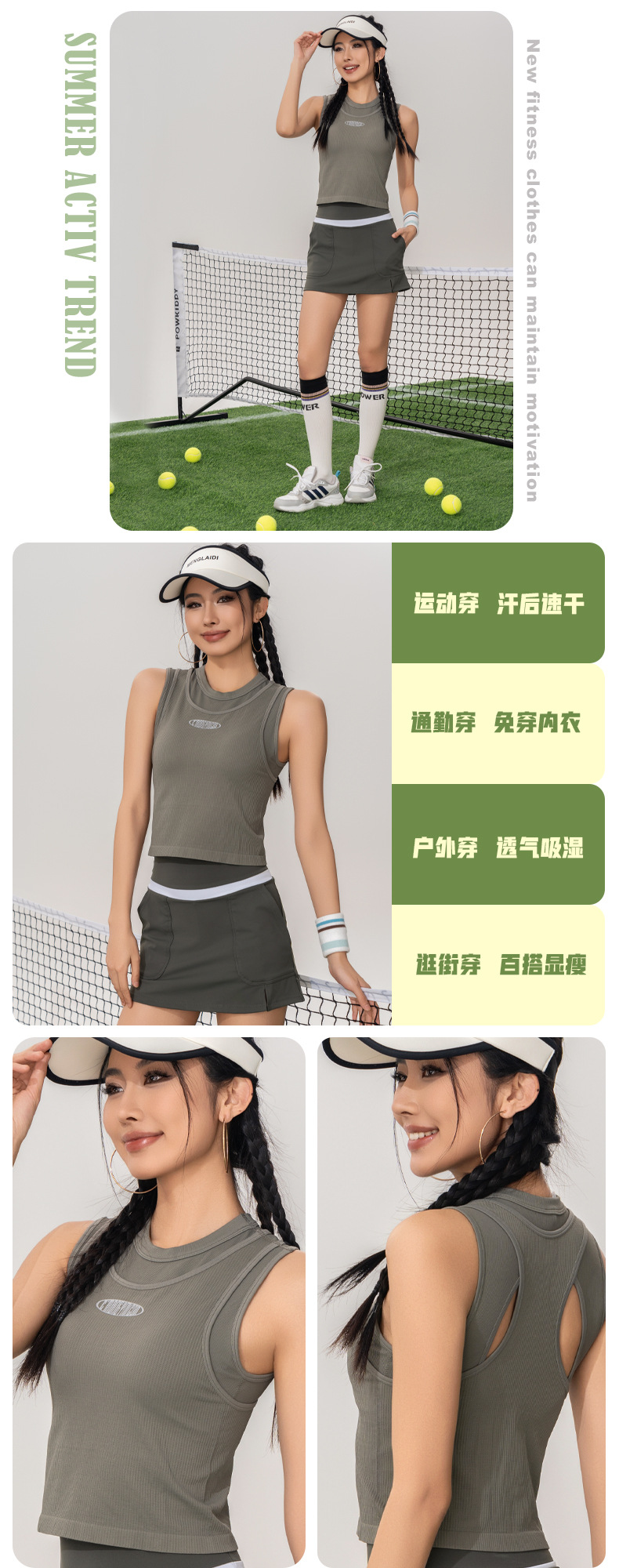 봄과 여름 새로운 요가 스포츠 최고 여성 고정 원피스 컵 아름다운 백 요가 의류 커버 파라미리스 충격 방지 더블 레이어 조끼스토어 가기