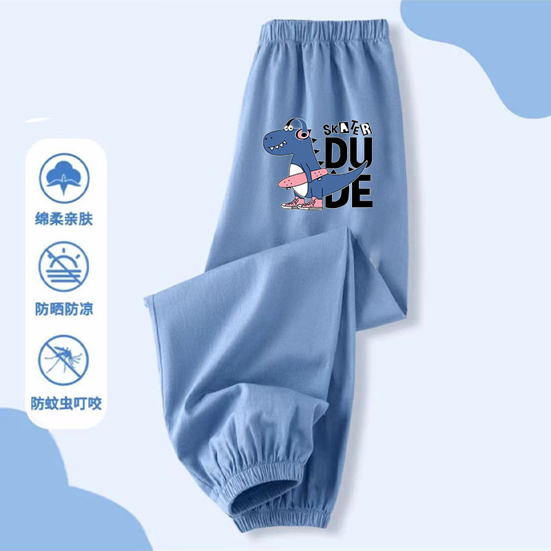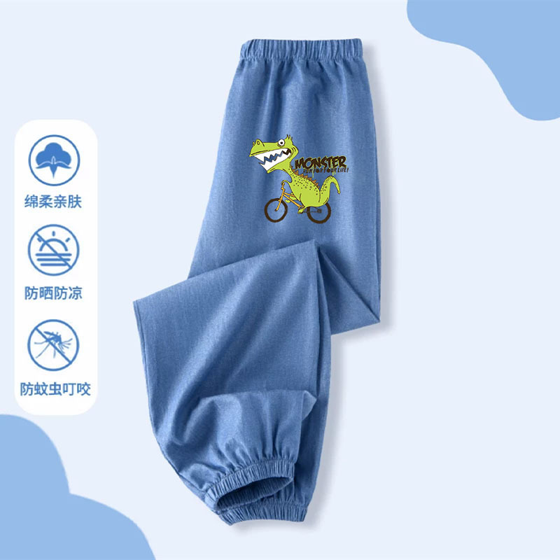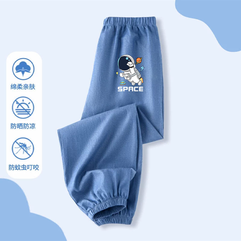 소년 만화 여름 착용 얇은 아이스 실크 데님 바지 큰 소년 2025 새로운 잘 생긴 외부 착용 모든 경기 방지 모기 바지스토어 가기