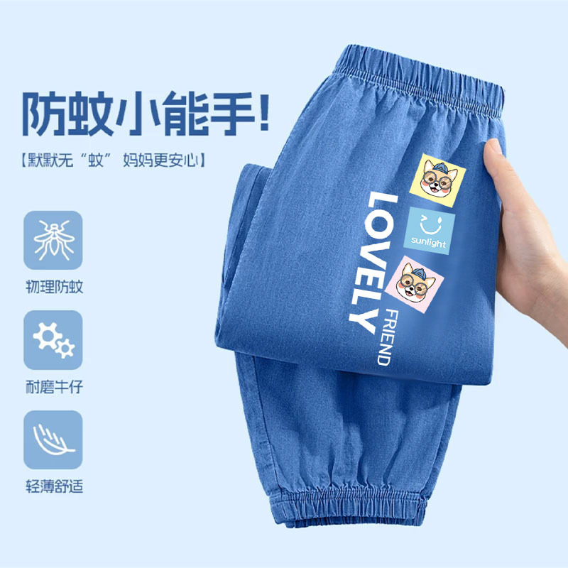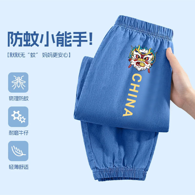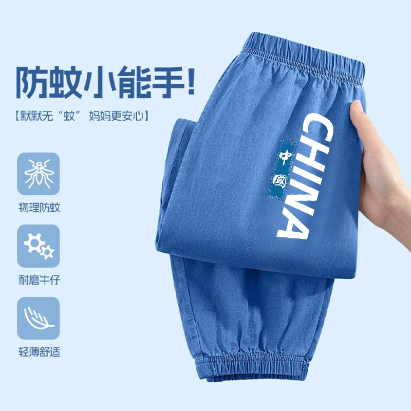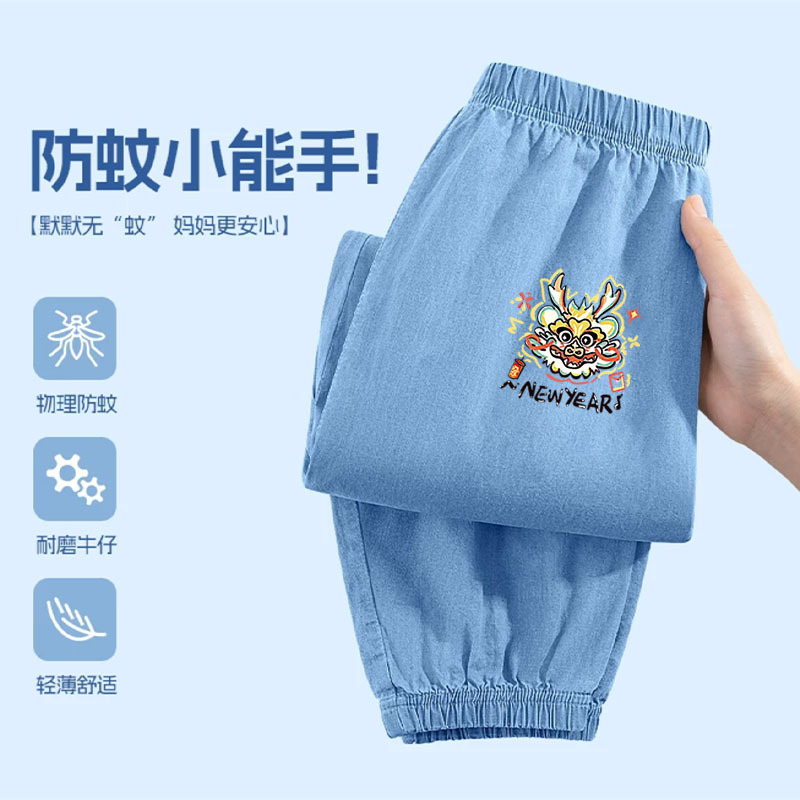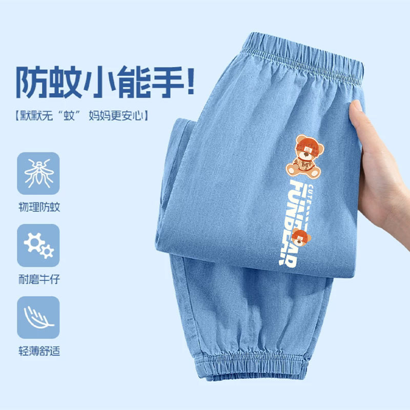 어린이 모기 방지 바지 여름 잘 생긴 얇은 소년 아이스 실크 데님 바지 2025 새 소년의 빠른 건조 외모 바지스토어 가기