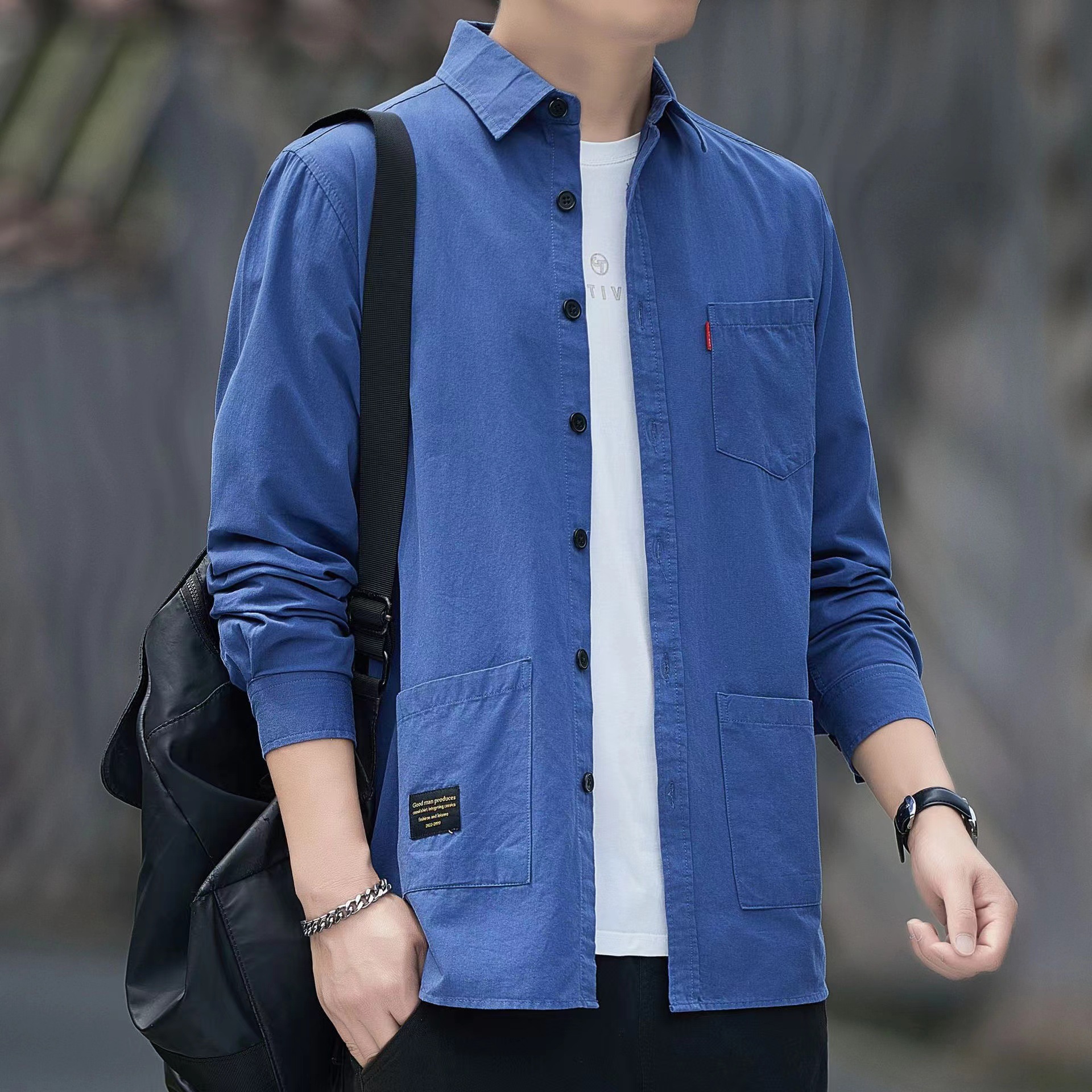 긴 소매 셔츠 남자의 봄과 가을 2025 새로운 비 다림질 고급 센스 재킷 셔츠 캐주얼 트렌디 브랜드 작업복스토어 가기