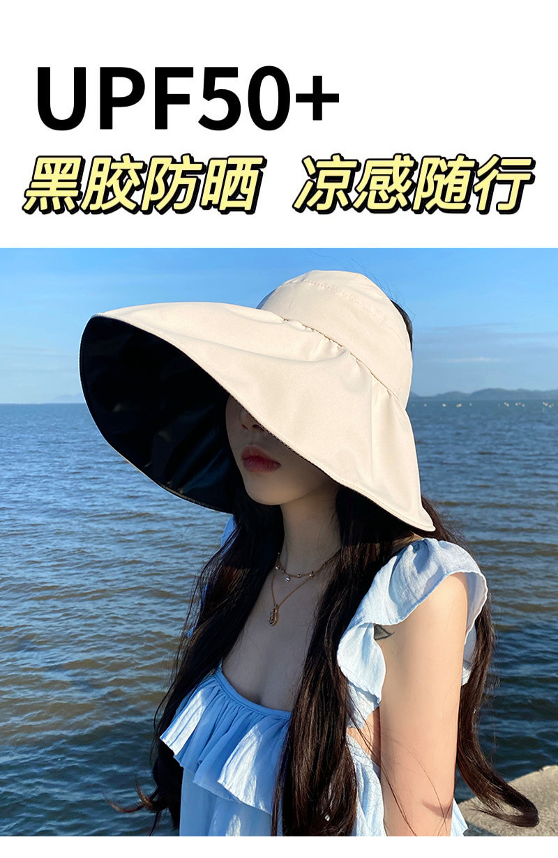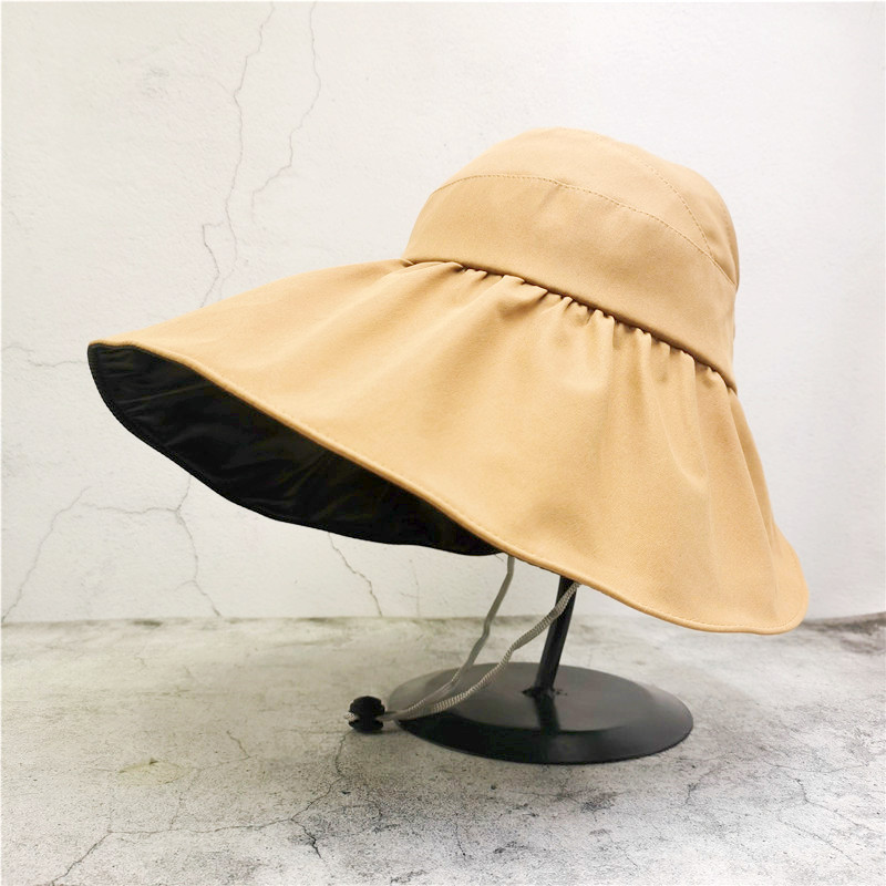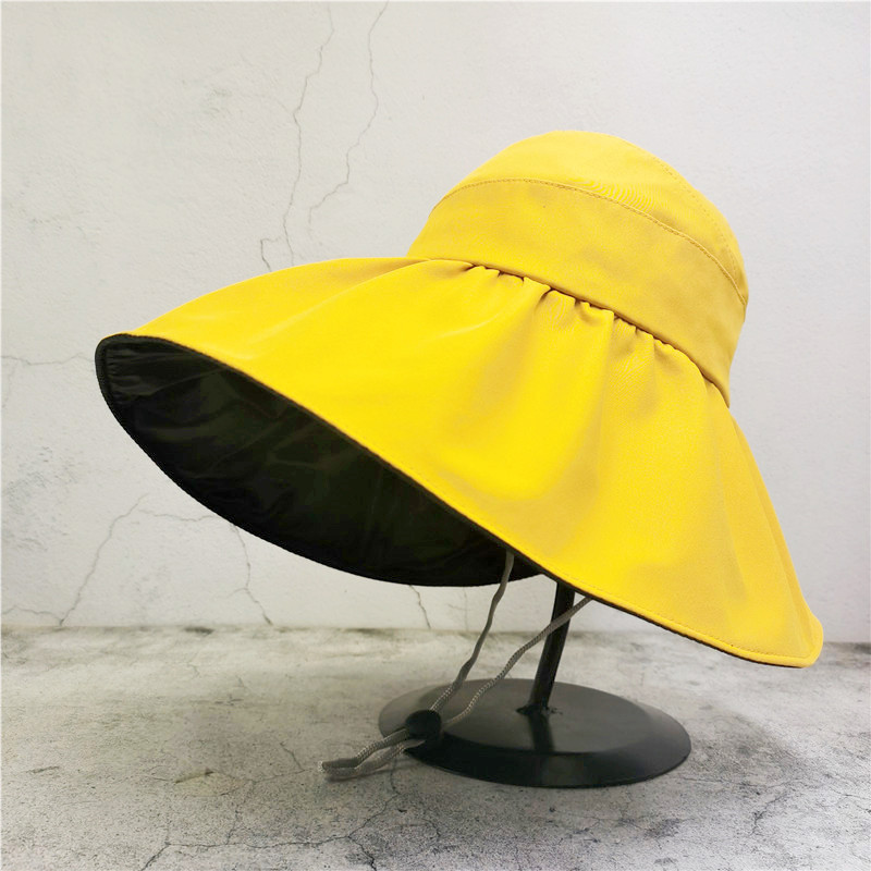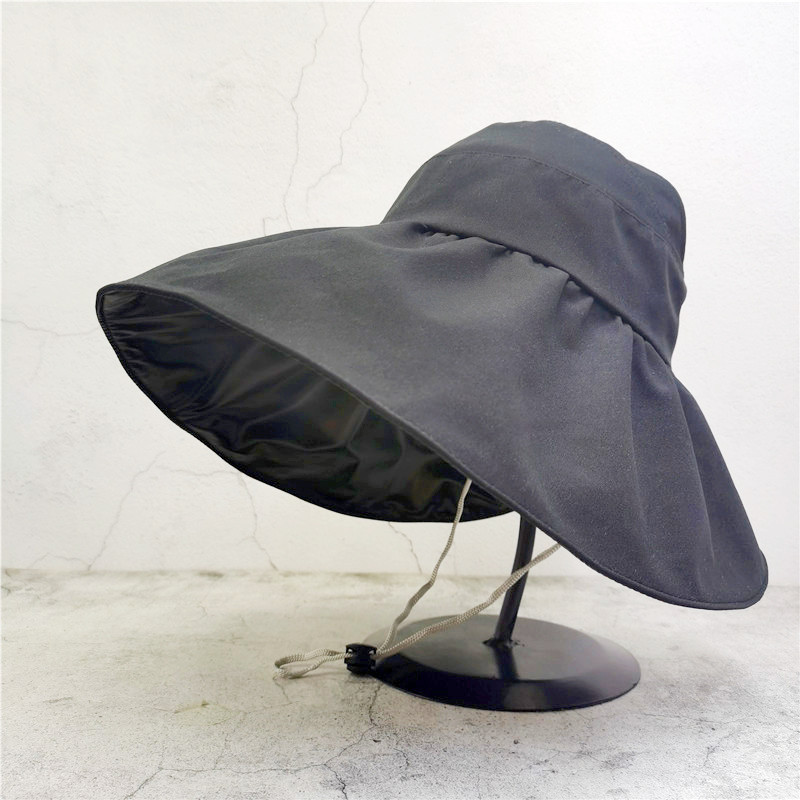 블랙 고무 빈 탑 태양 모자 여성의 여름 태양 보호 모자 UV 보호 얼굴 커버 어부의 모자 접이식 조정 큰 머리 와이스토어 가기