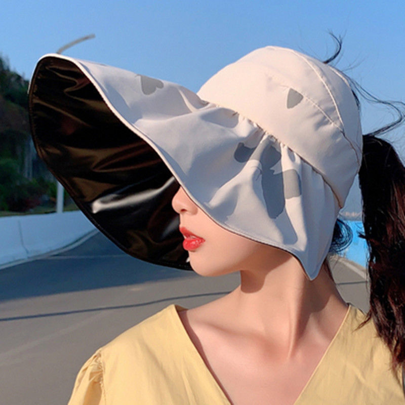 블랙 고무 빈 탑 태양 모자 여성의 여름 태양 보호 모자 UV 보호 얼굴 커버 어부의 모자 접이식 조정 큰 머리 와이