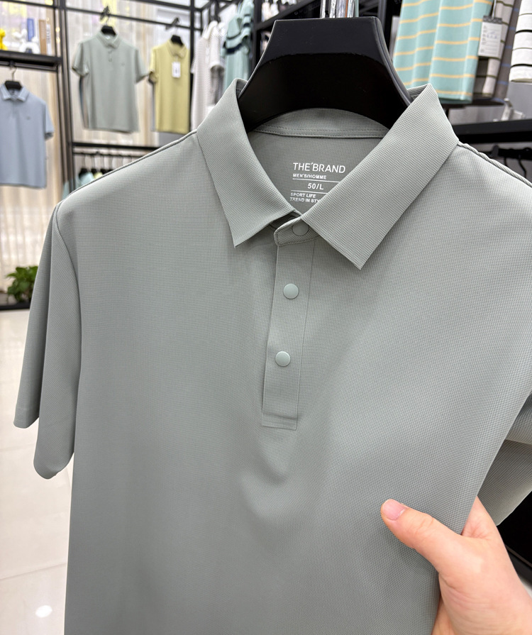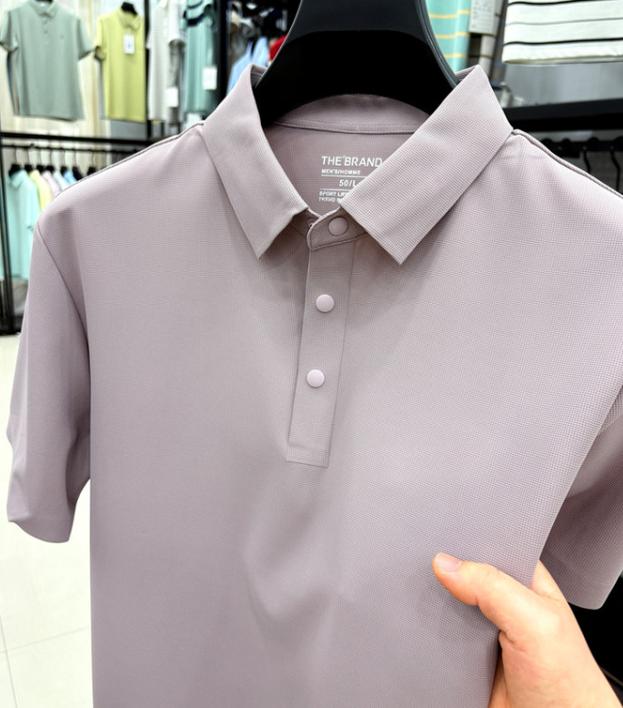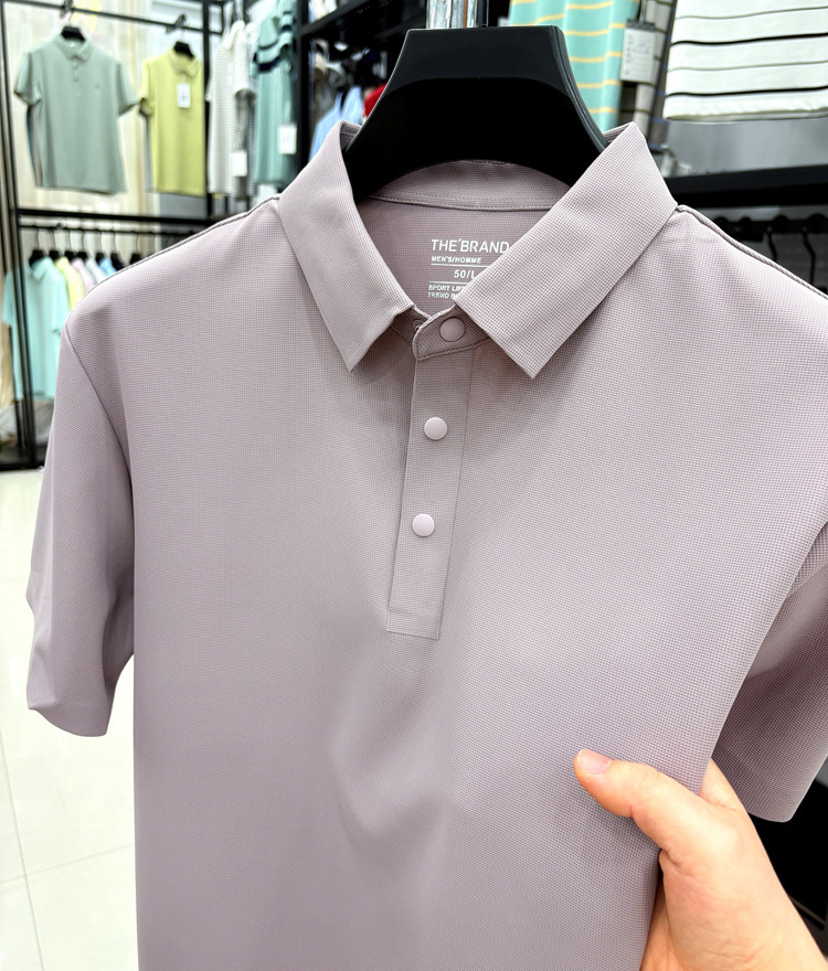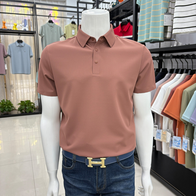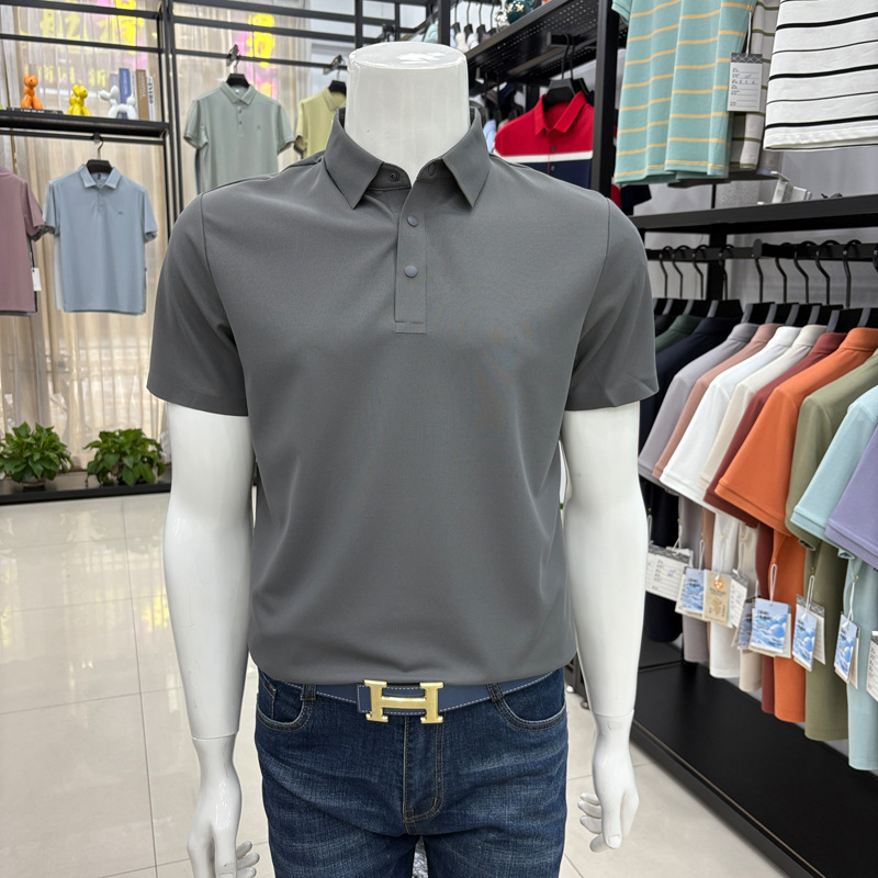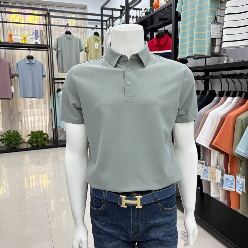 2026년 신상 속건성 여름용 남성용 무봉제 반팔 티셔츠, 상큼하고 통기성 좋은 무지 폴로 반팔