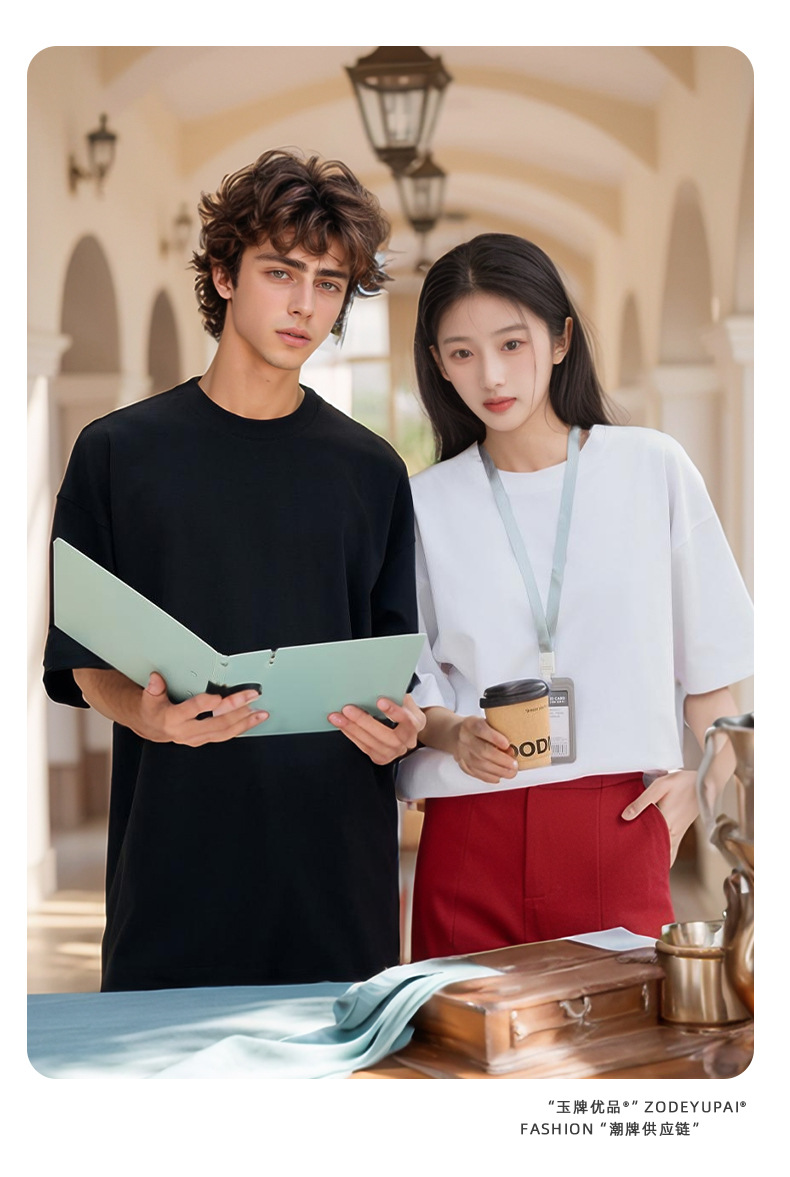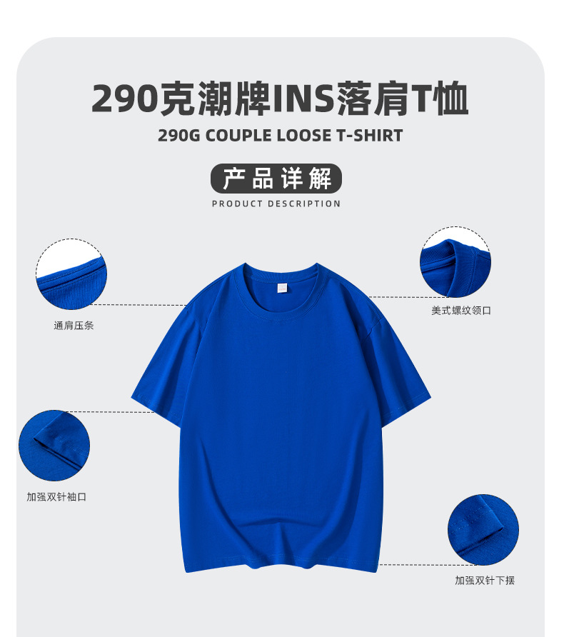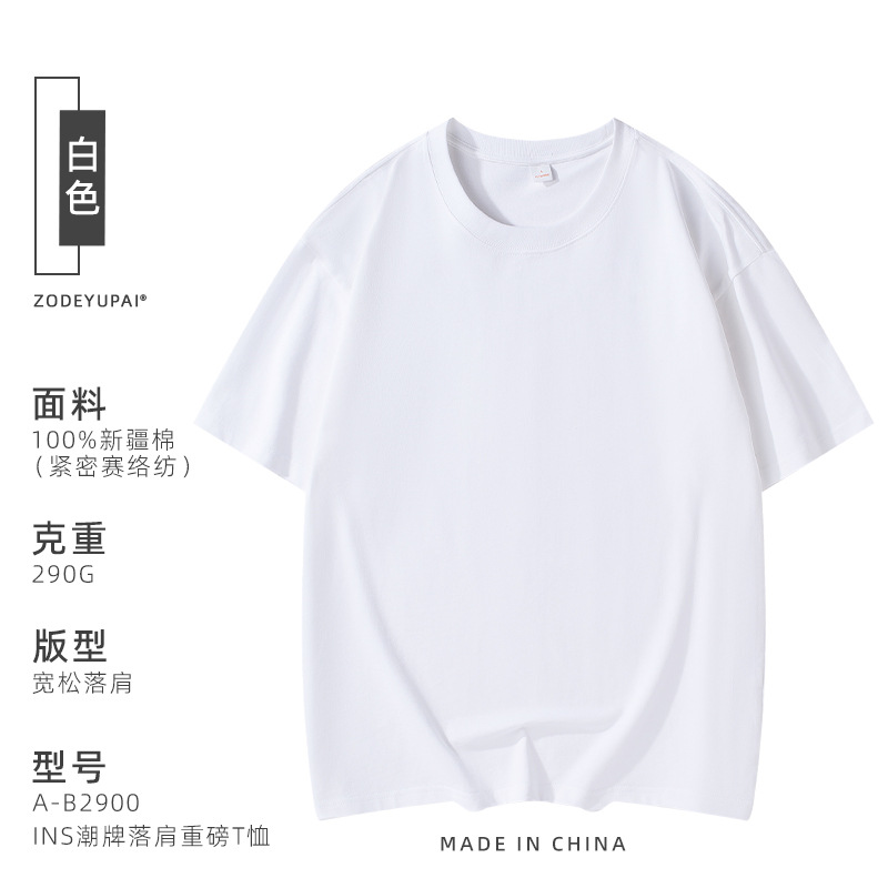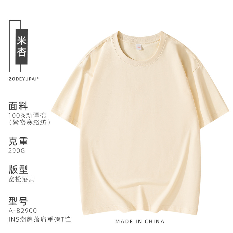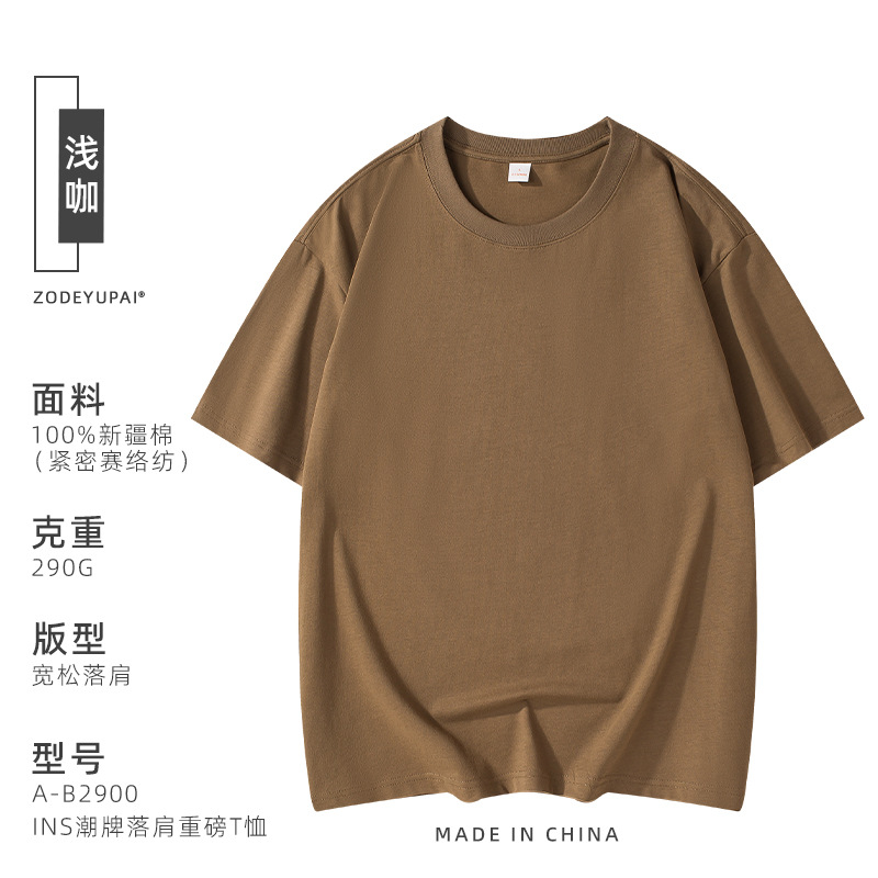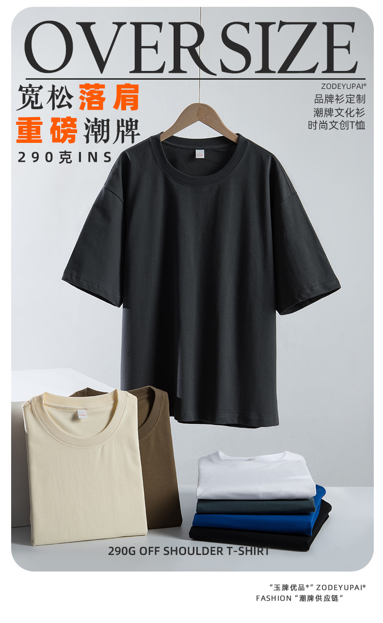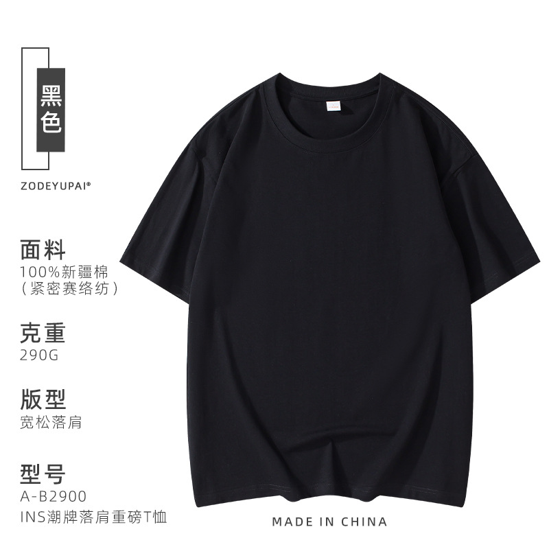 290g 순면 헤비 타이드 브랜드 라운드 넥 티셔츠 로고 팀 셔츠 남성 및 여성 반소매 자수 사용자 정의
