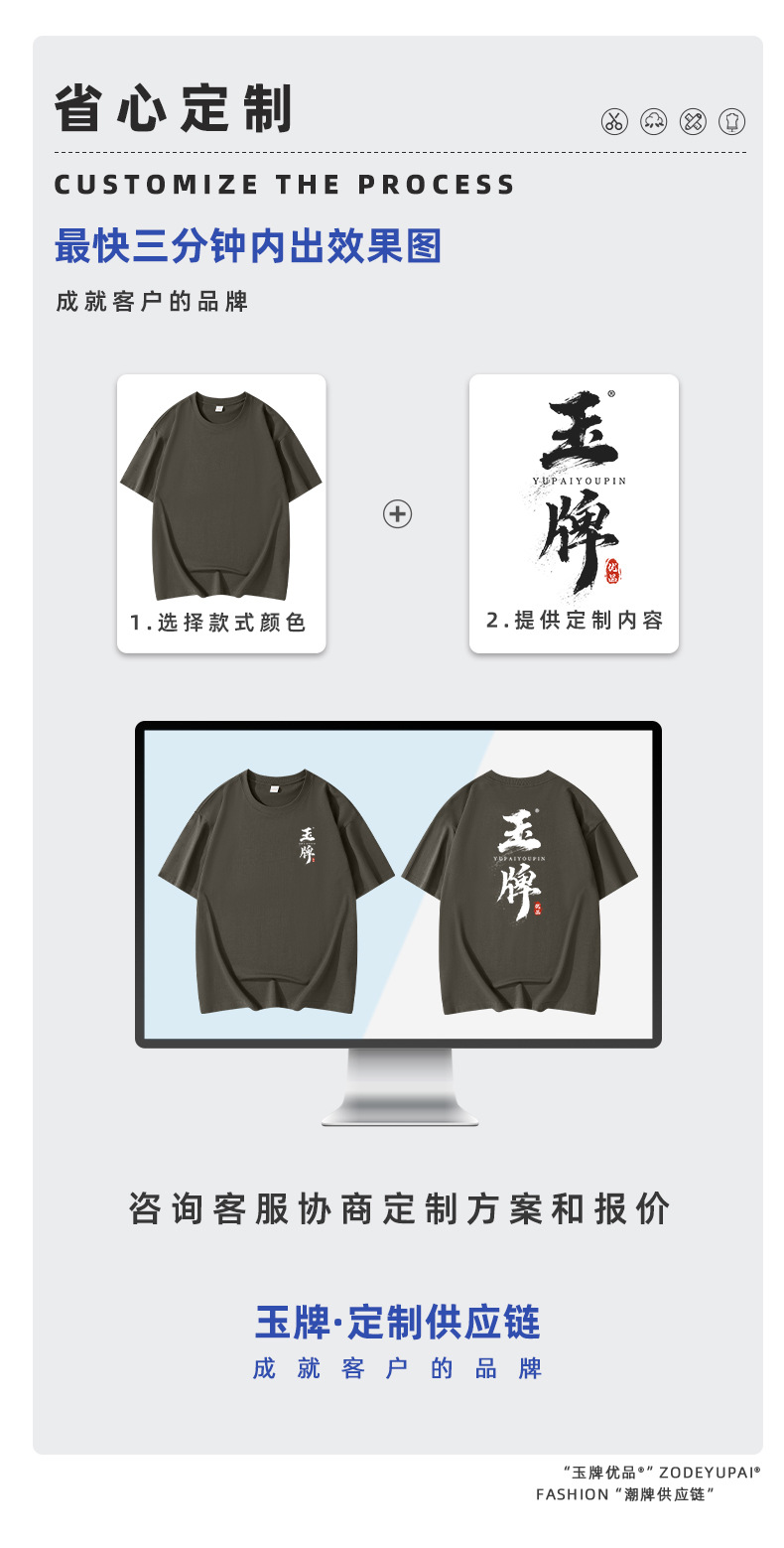 290g 순면 헤비 타이드 브랜드 라운드 넥 티셔츠 로고 팀 셔츠 남성 및 여성 반소매 자수 사용자 정의스토어 가기