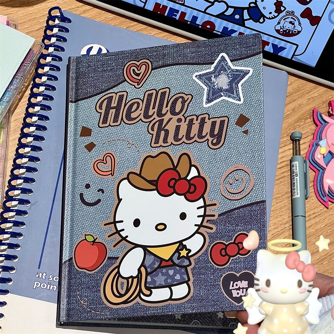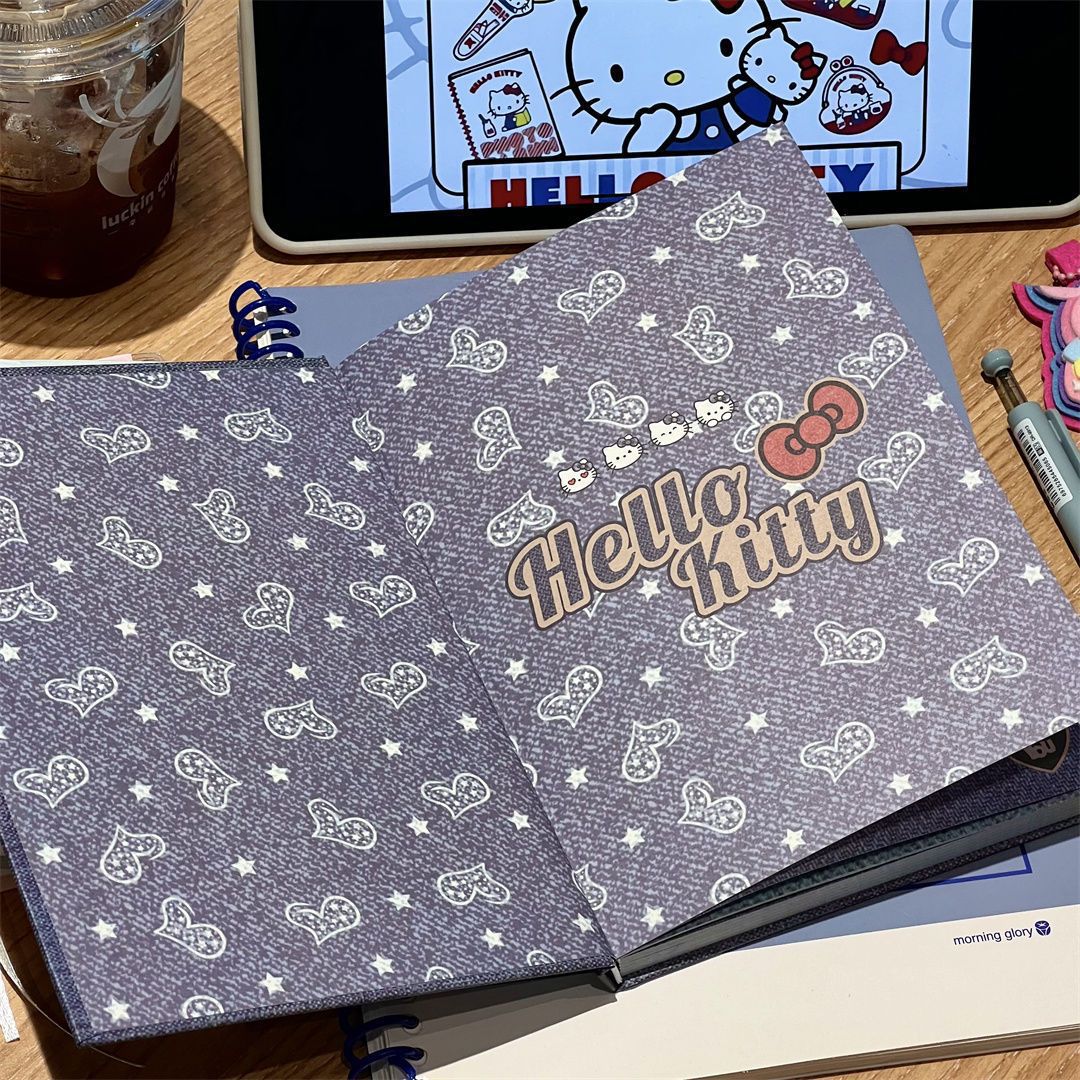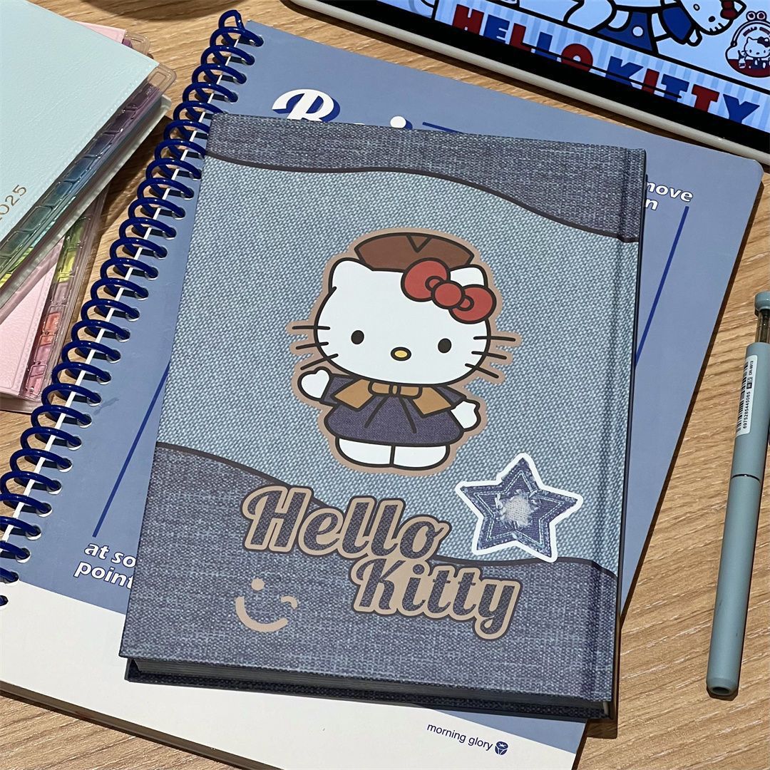 새로운 귀여운 hellokittyA5 하드 쉘 노트북 두꺼운 컬러 내부 손 원장 데님 Kt 고양이 메모장스토어 가기