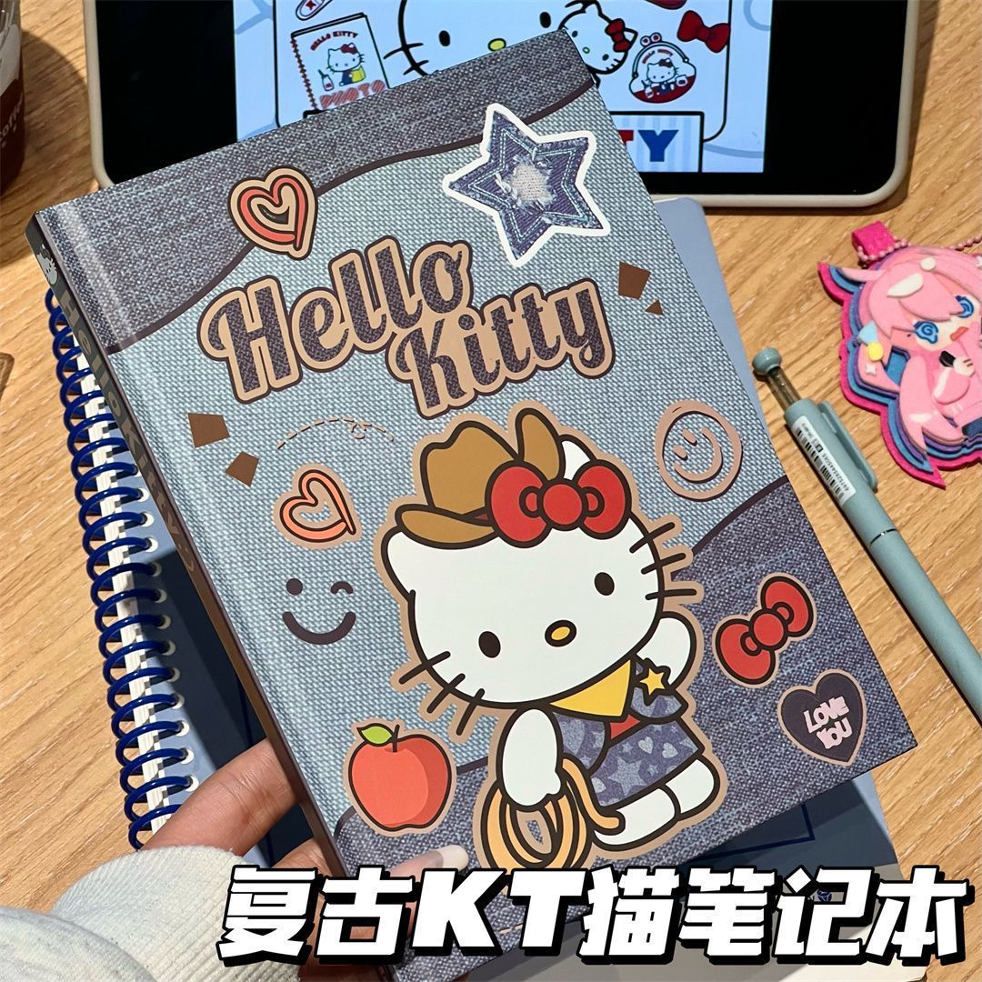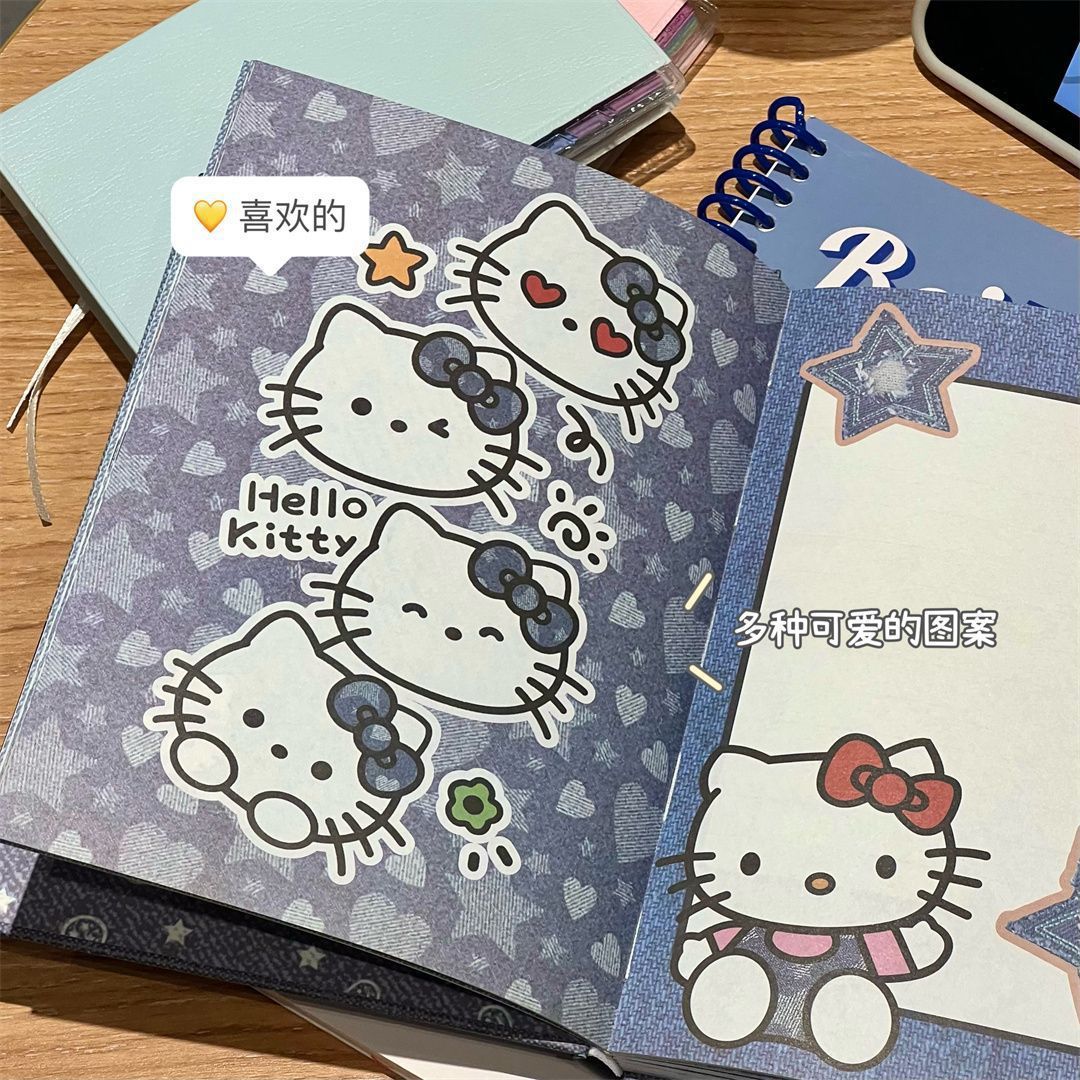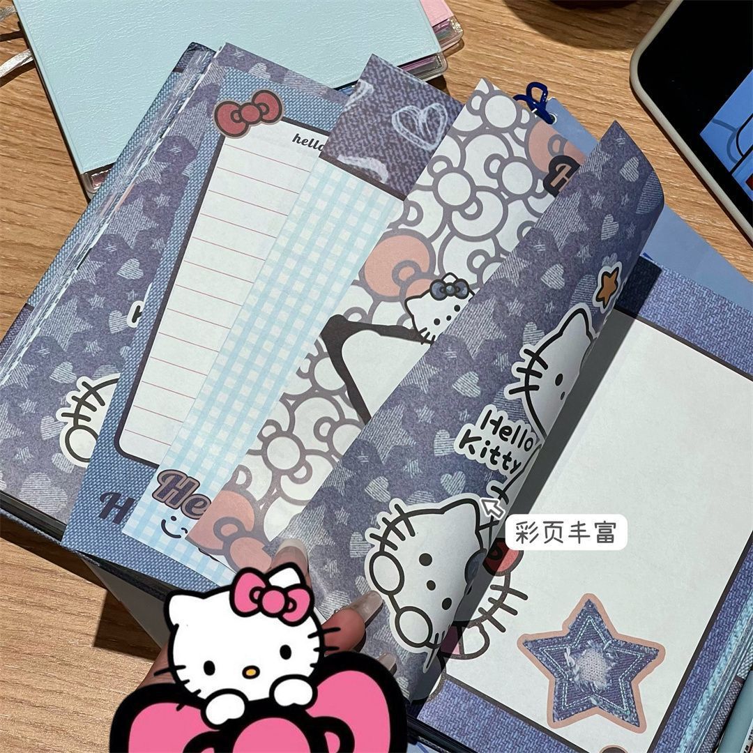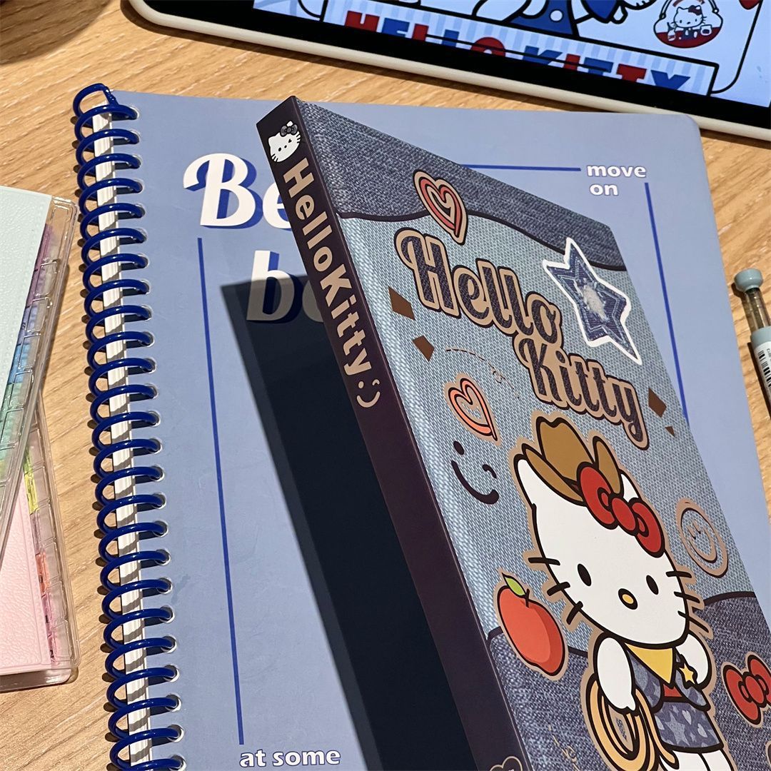 새로운 귀여운 hellokittyA5 하드 쉘 노트북 두꺼운 컬러 내부 손 원장 데님 Kt 고양이 메모장스토어 가기