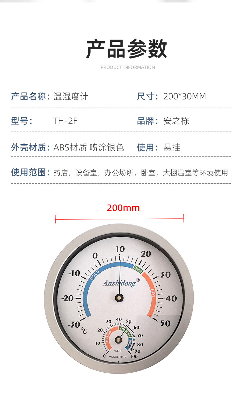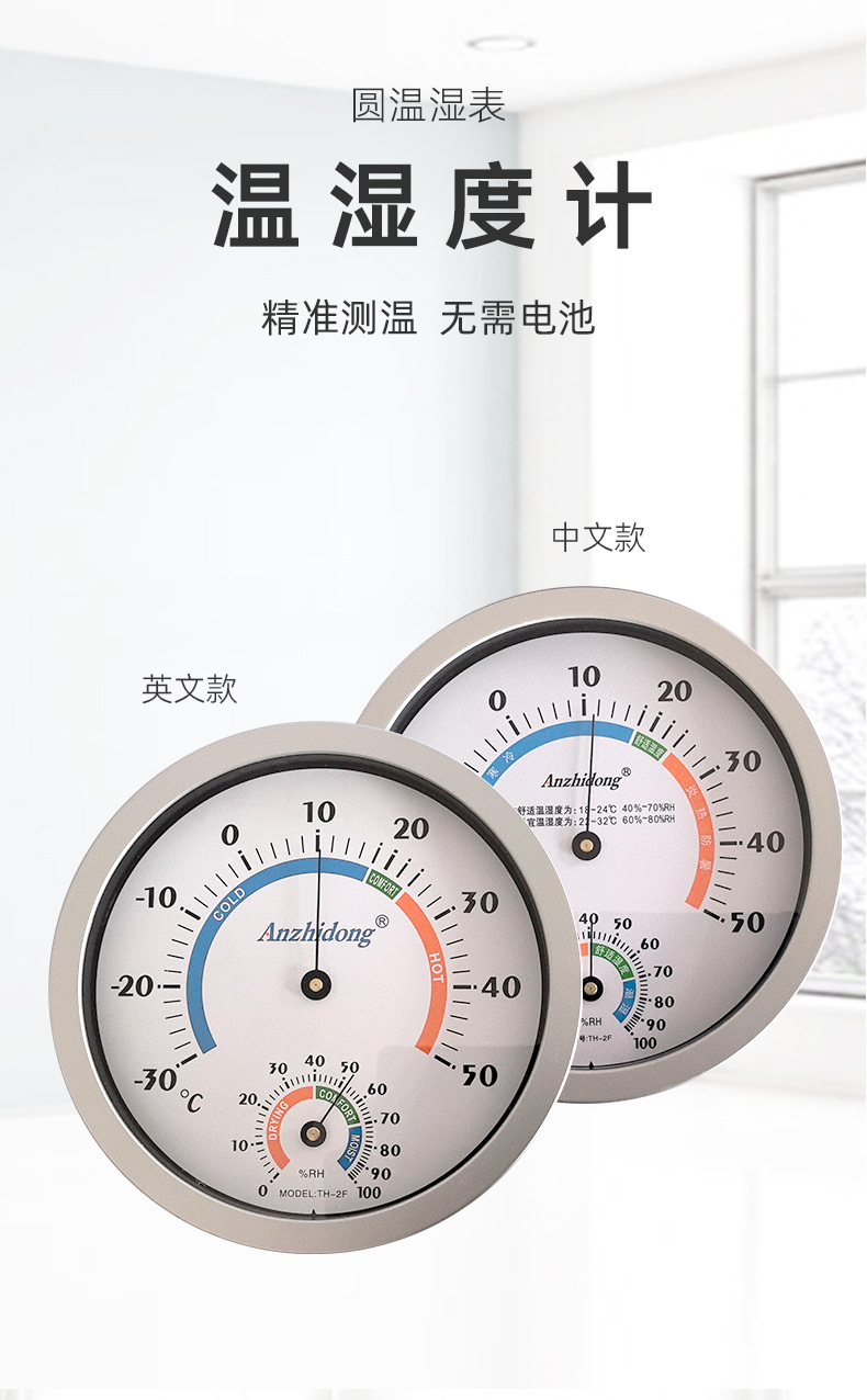 홈 포인터 유형 중국어 영어 TH-2F, 온도 및 습도 미터 약국 창고 벽에 장착 된 기계 온도 및 습도 미터