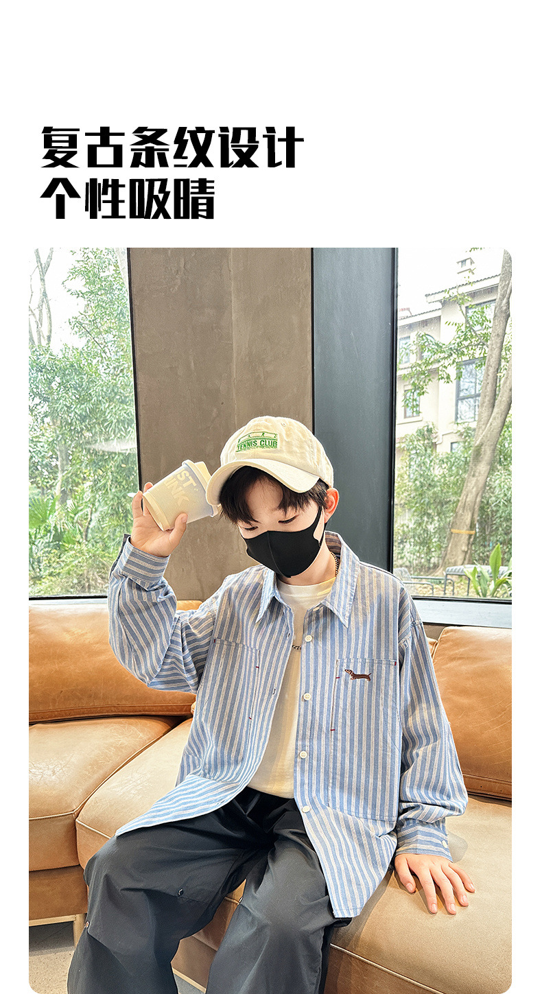 봄 소년 셔츠 큰 어린이 착용 어린이 소년의 봄과 가을 수직 줄무늬 셔츠 옷깃 최고 캐주얼 얇은 재킷스토어 가기
