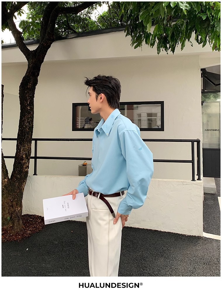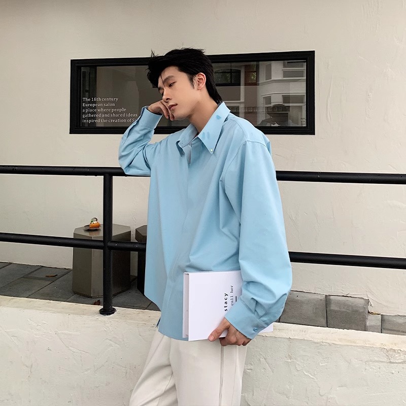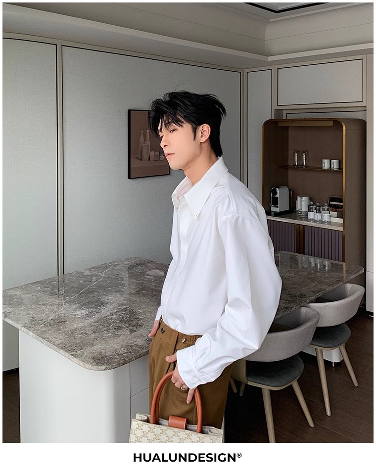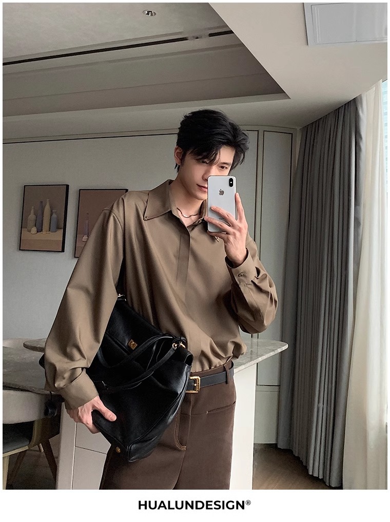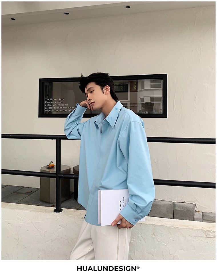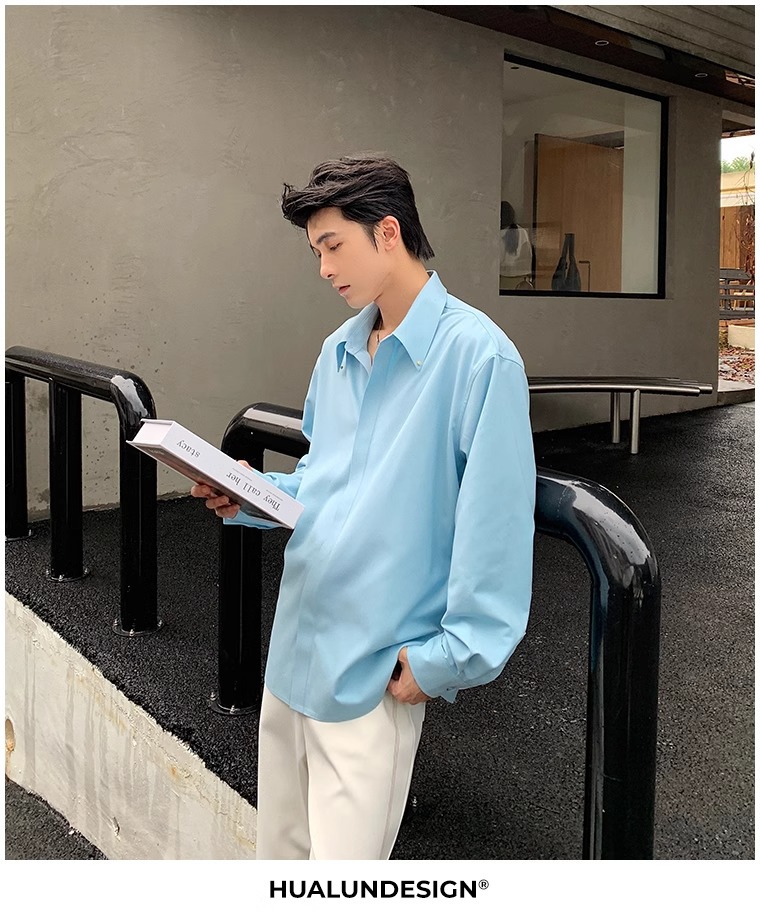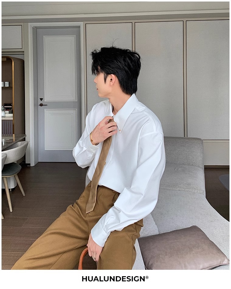 고급 센스 러피 잘 생긴 주름 방지 긴팔 셔츠 남성용 미국식 클린 핏 비 다림질 셔츠 간단한 단색 내부 탑스토어 가기