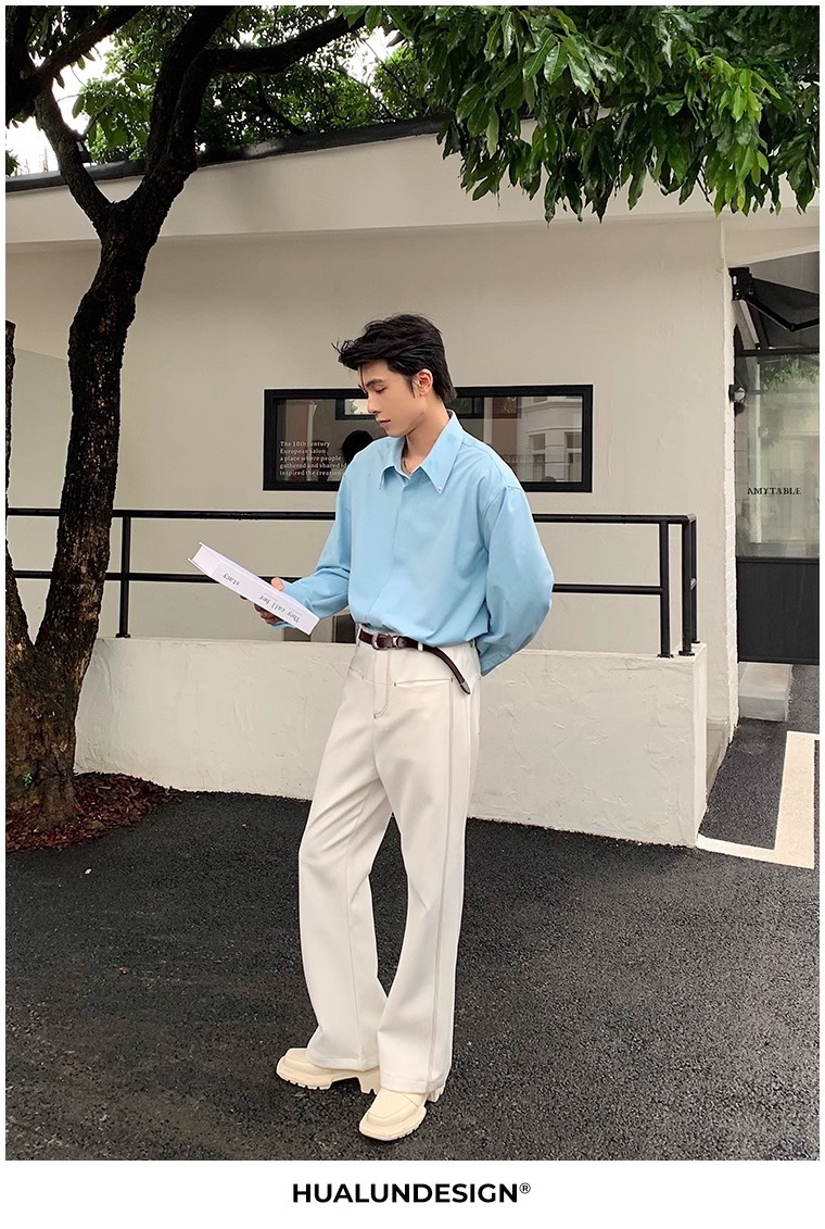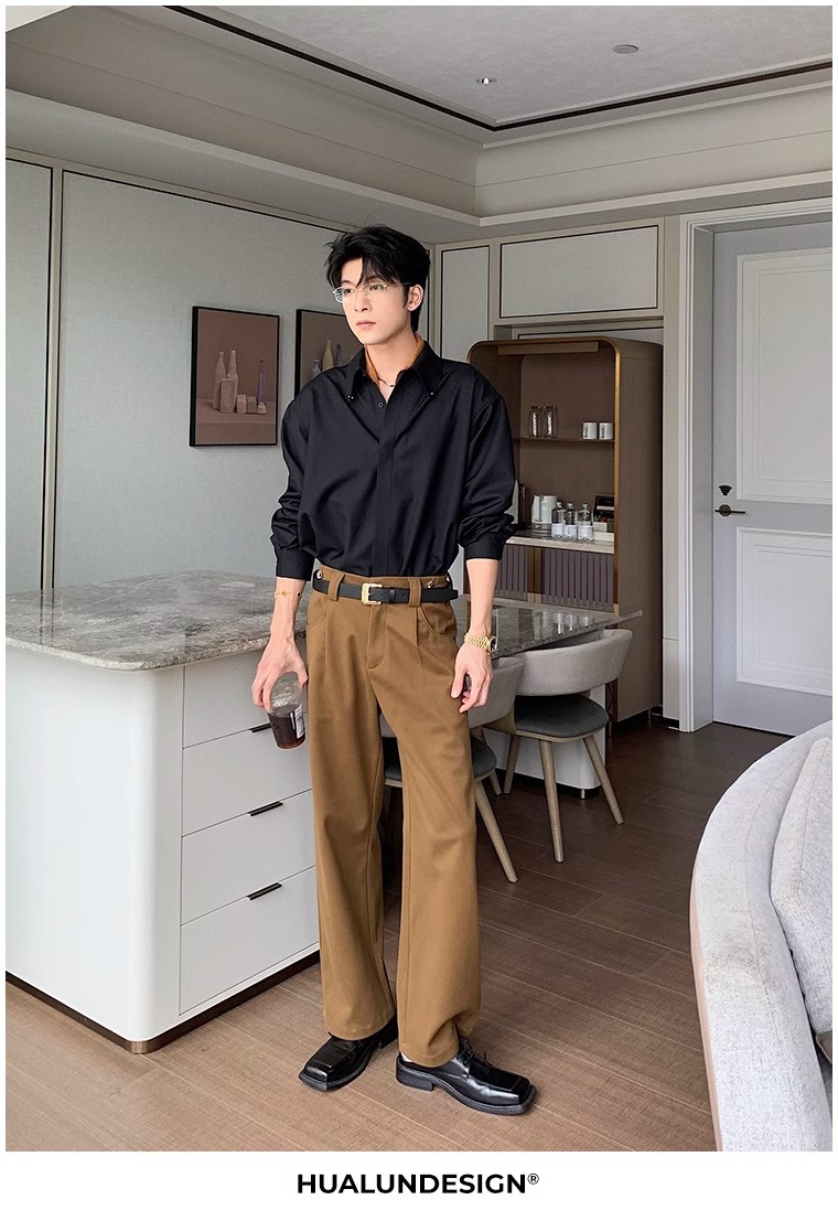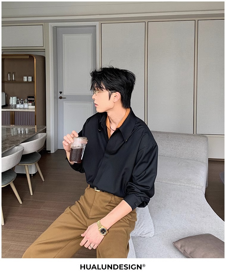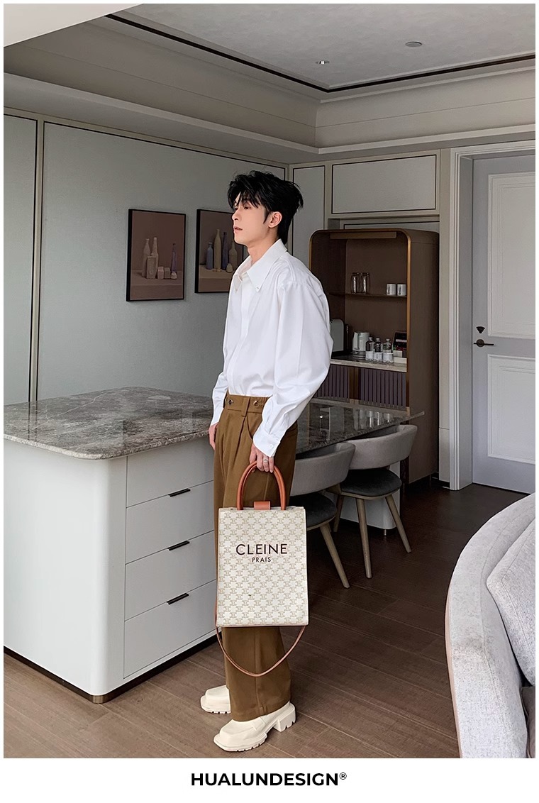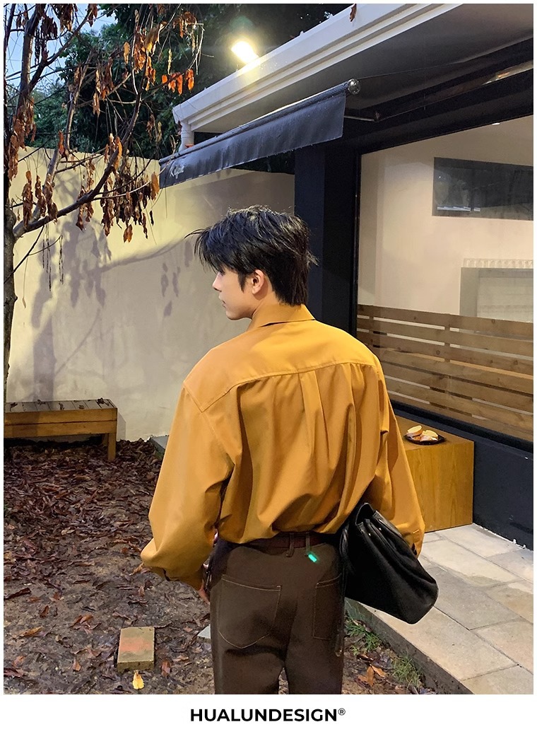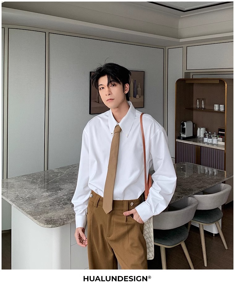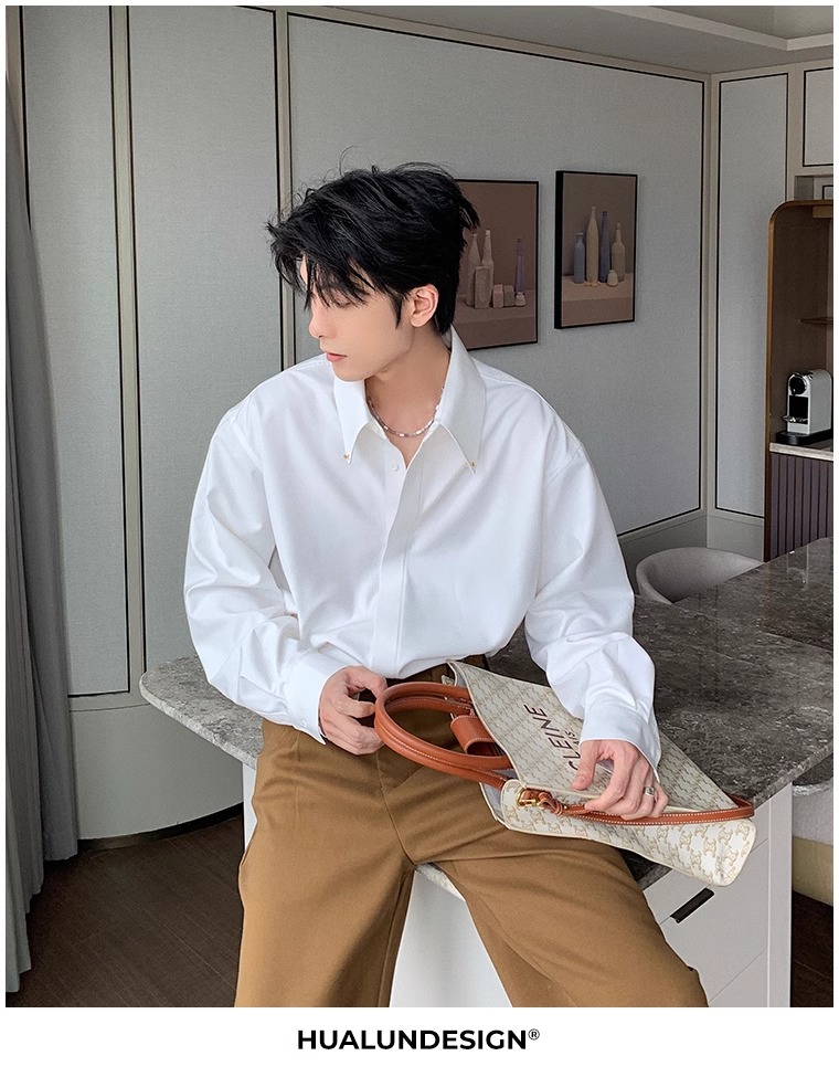 고급 센스 러피 잘 생긴 주름 방지 긴팔 셔츠 남성용 미국식 클린 핏 비 다림질 셔츠 간단한 단색 내부 탑스토어 가기