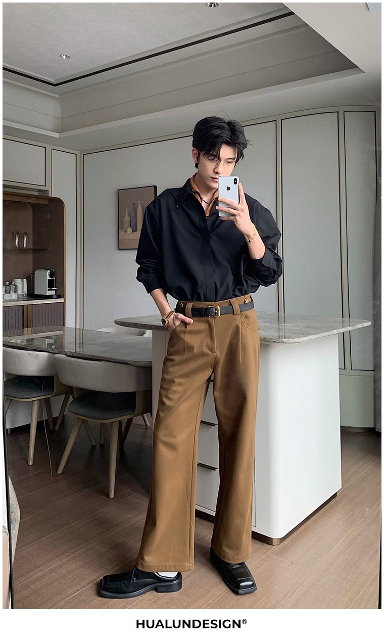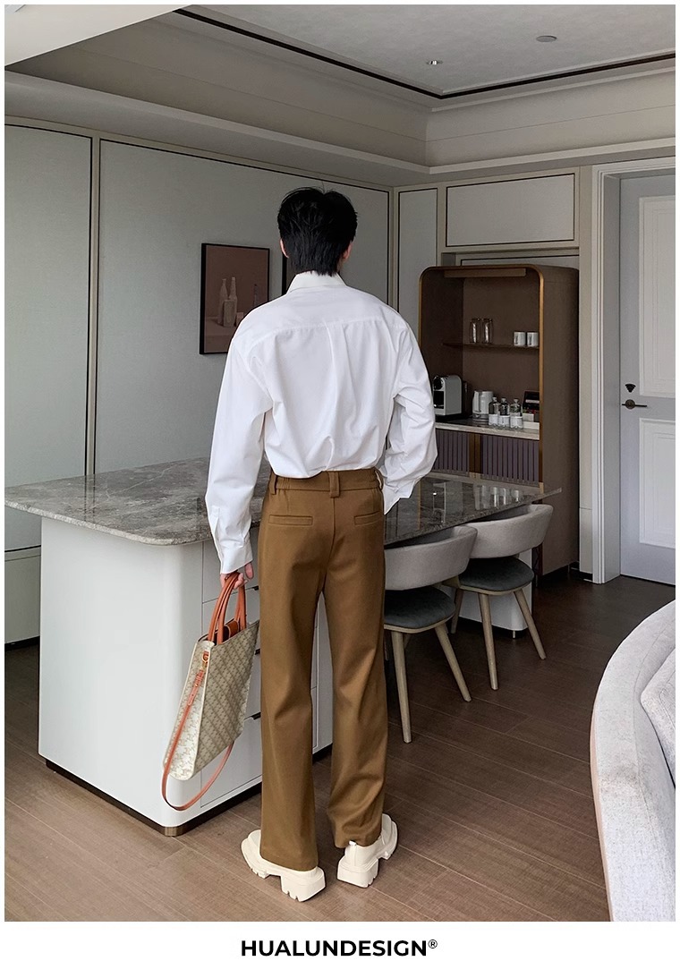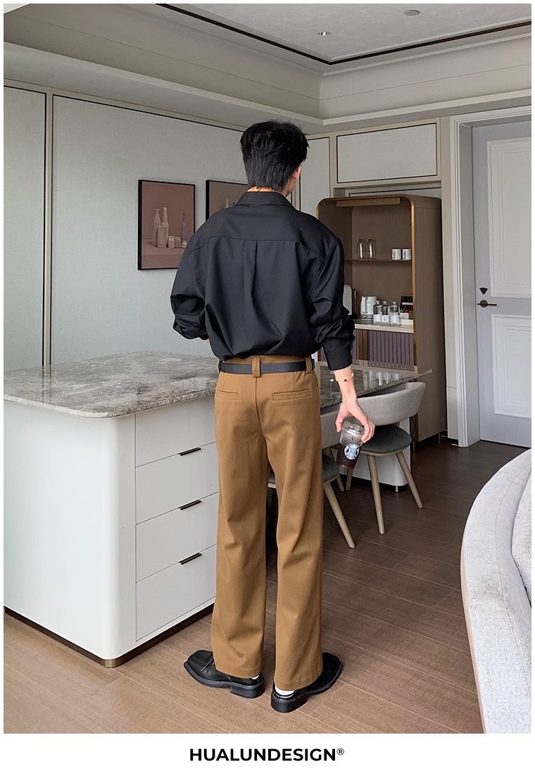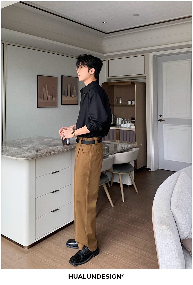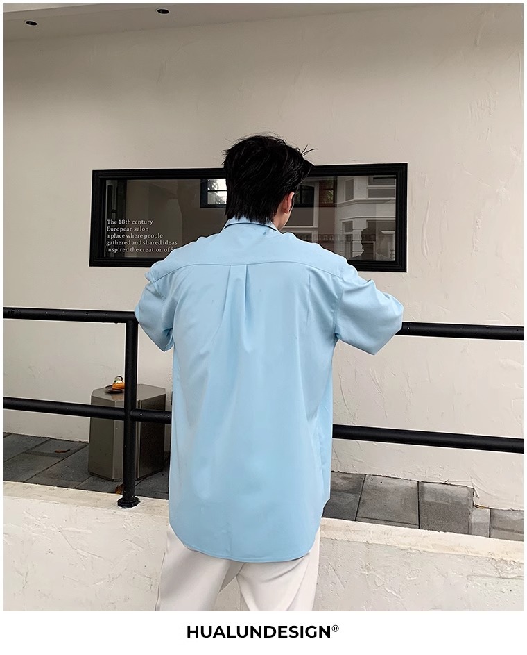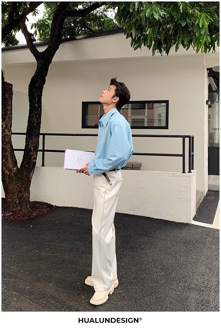 고급 센스 러피 잘 생긴 주름 방지 긴팔 셔츠 남성용 미국식 클린 핏 비 다림질 셔츠 간단한 단색 내부 탑스토어 가기