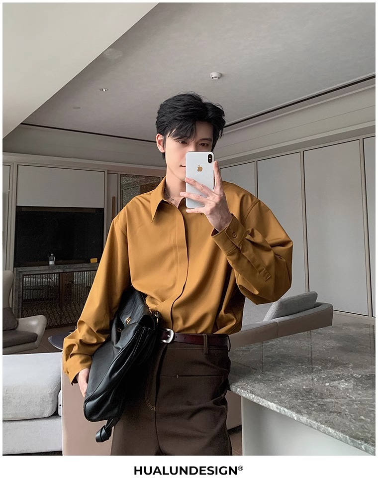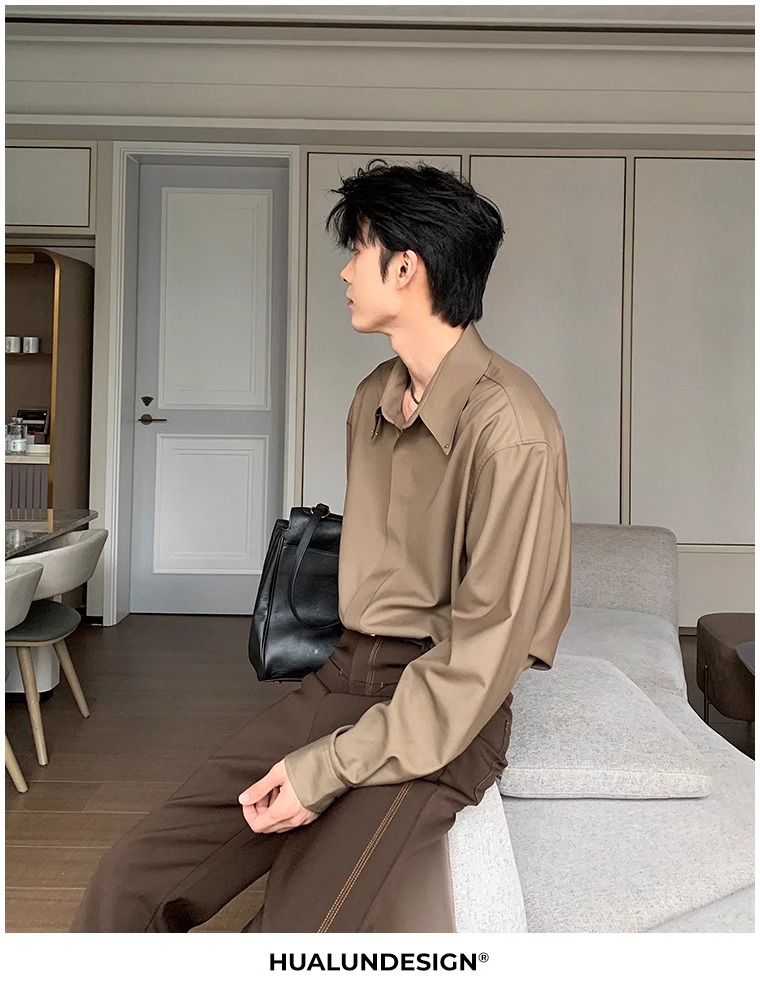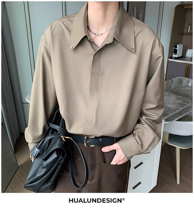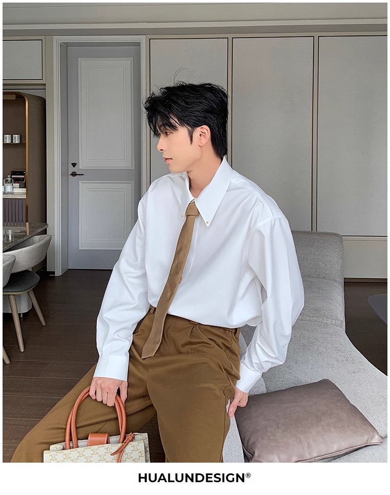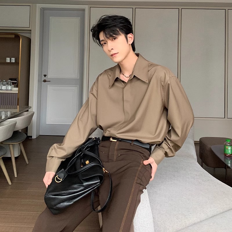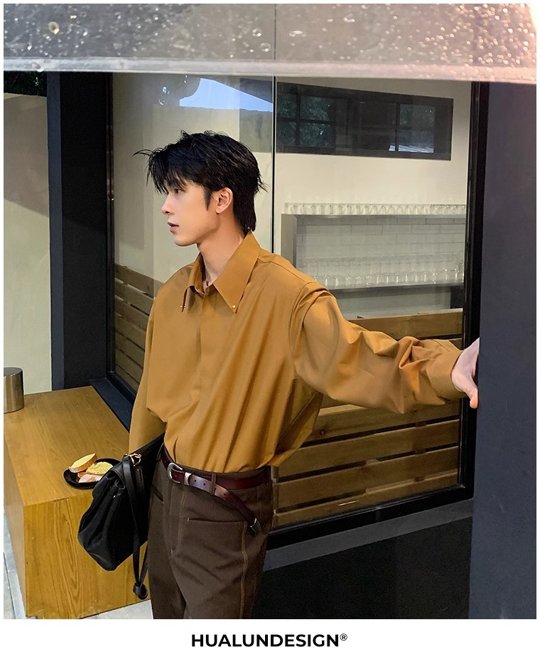 고급 센스 러피 잘 생긴 주름 방지 긴팔 셔츠 남성용 미국식 클린 핏 비 다림질 셔츠 간단한 단색 내부 탑