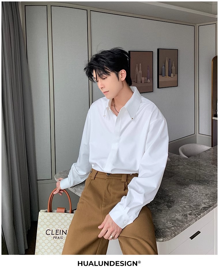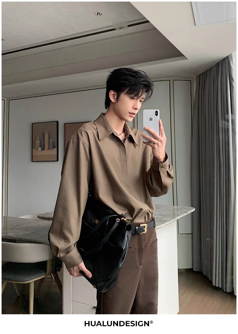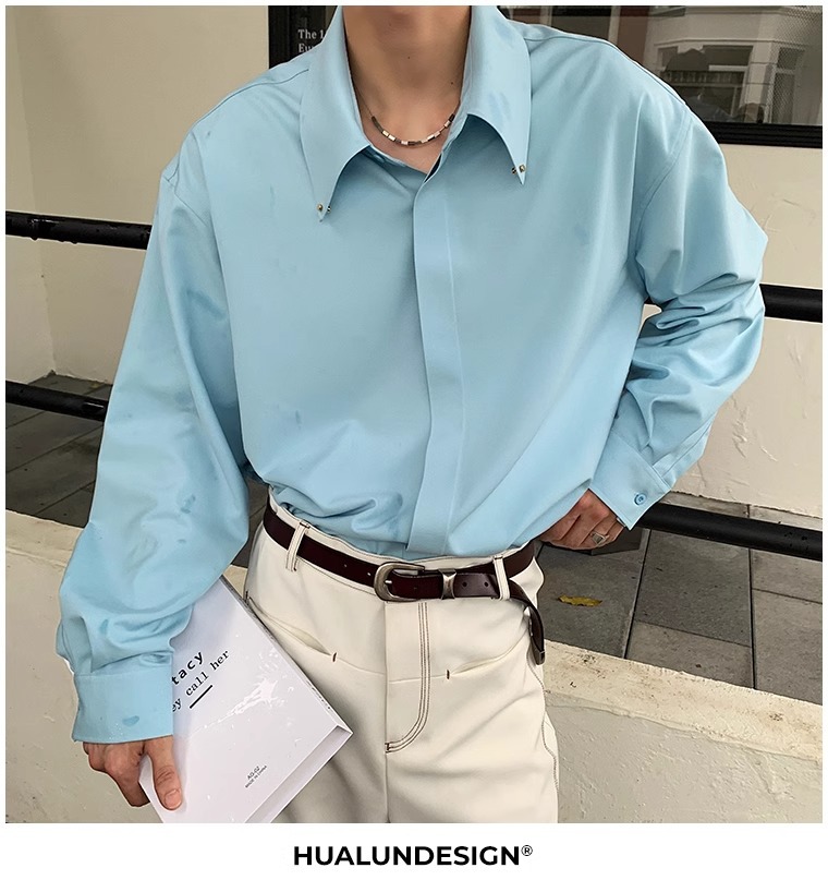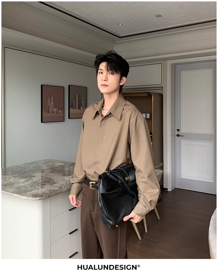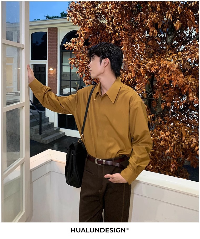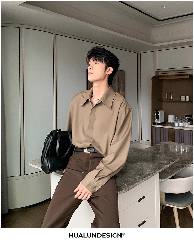 고급 센스 러피 잘 생긴 주름 방지 긴팔 셔츠 남성용 미국식 클린 핏 비 다림질 셔츠 간단한 단색 내부 탑