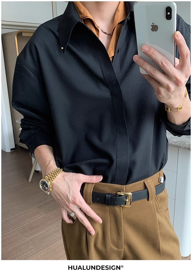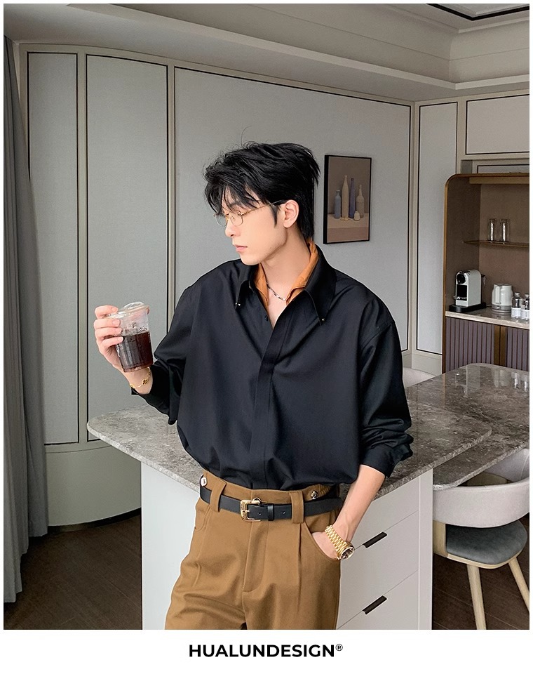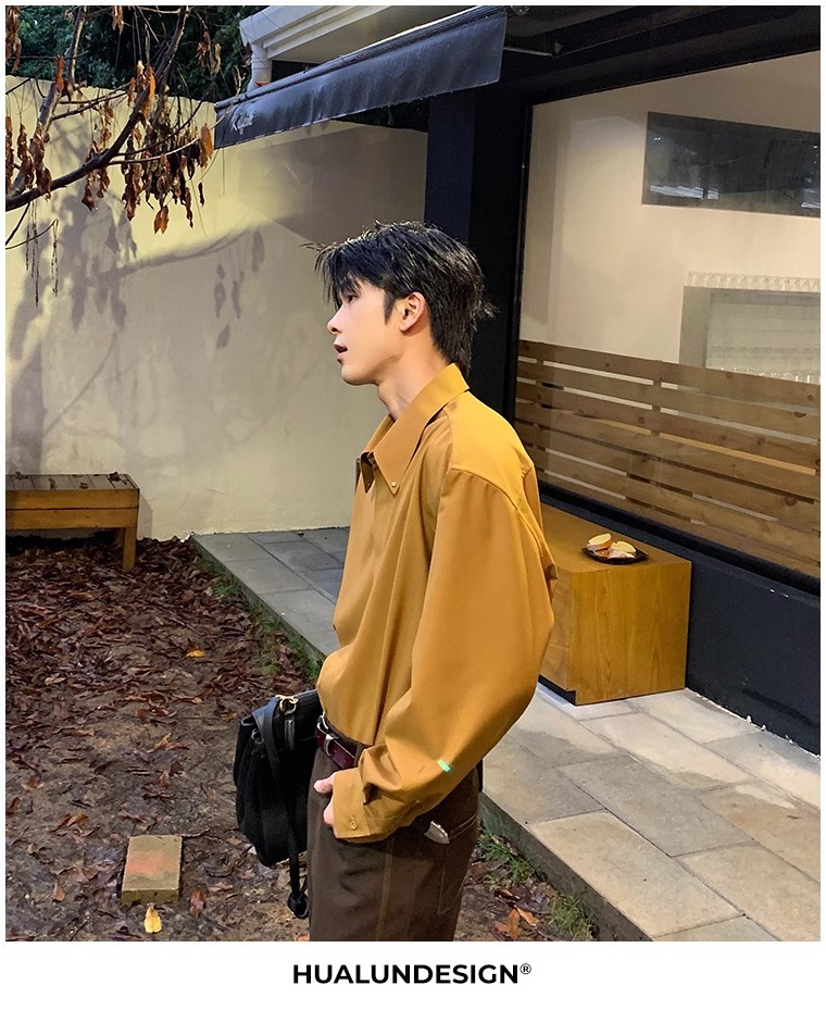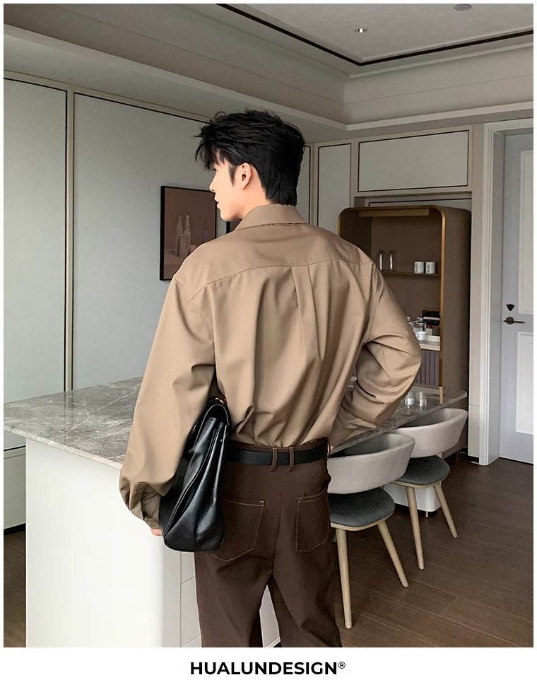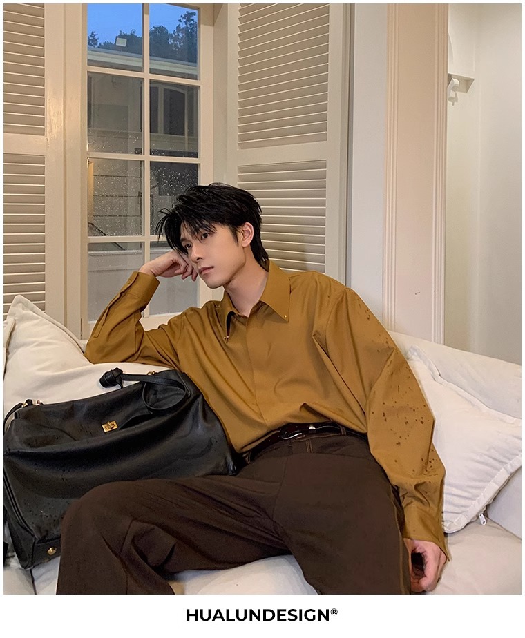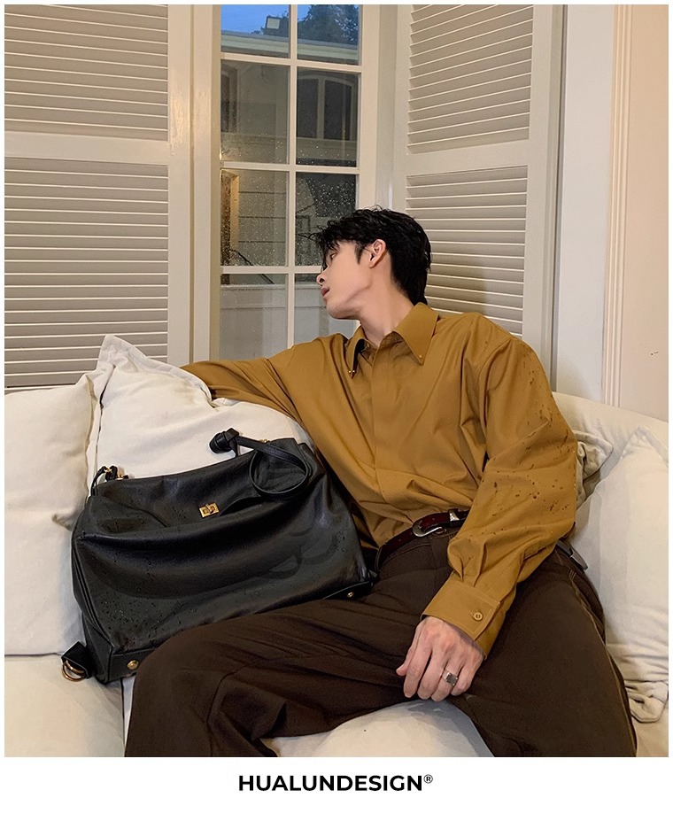 고급 센스 러피 잘 생긴 주름 방지 긴팔 셔츠 남성용 미국식 클린 핏 비 다림질 셔츠 간단한 단색 내부 탑