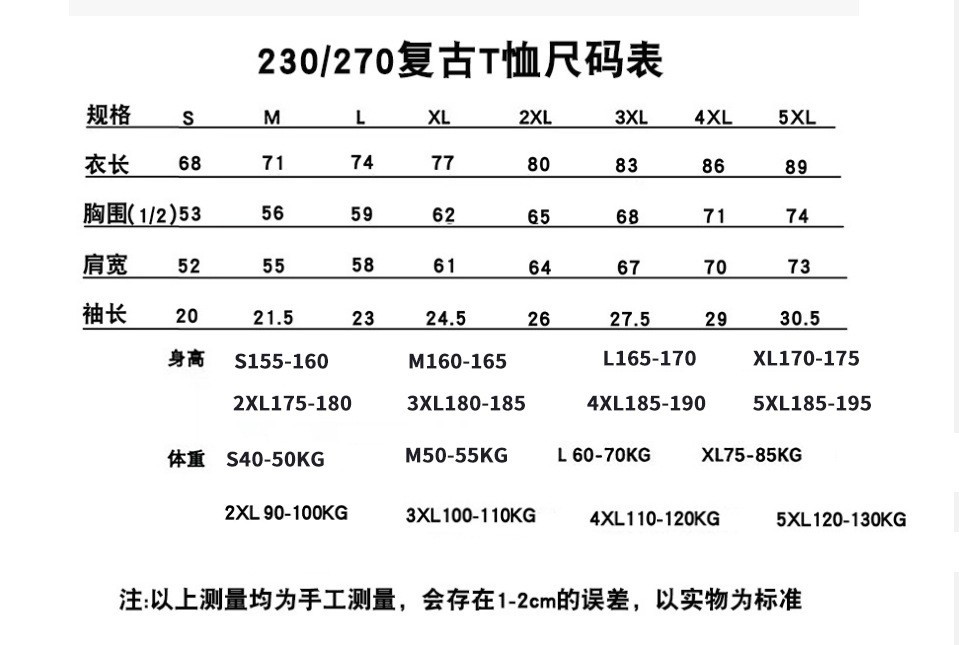 230g 씻은 오래 인쇄 된 크루 넥 패션 브랜드 느슨한 어깨 남성 및 여성 코튼 올드 티셔츠스토어 가기