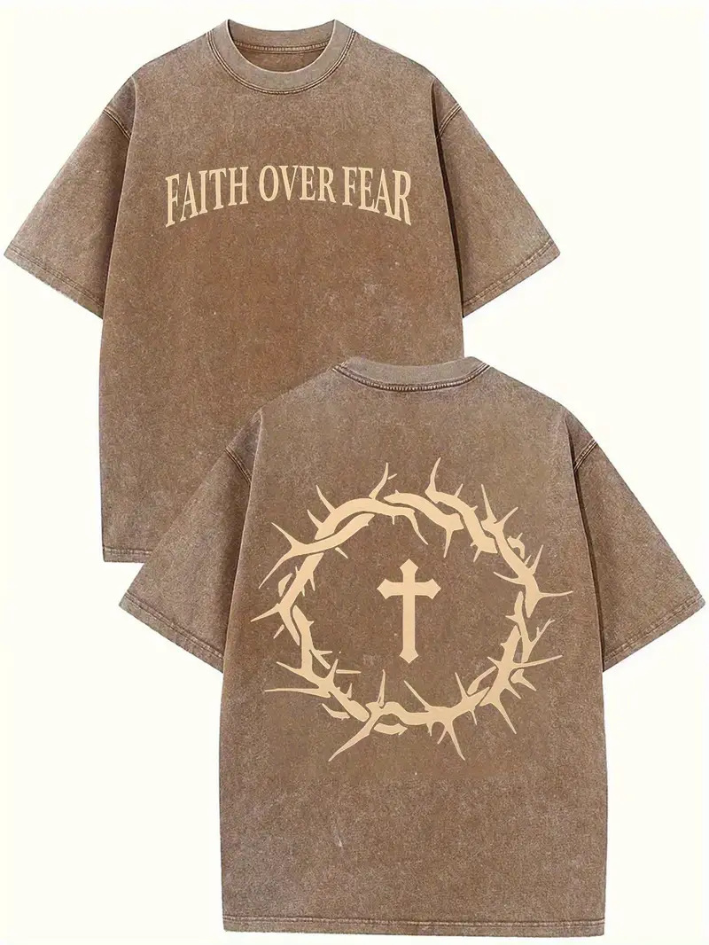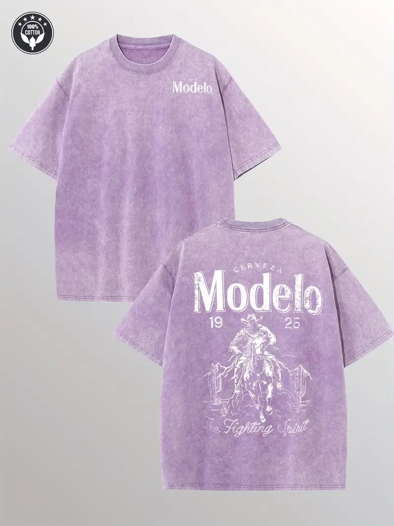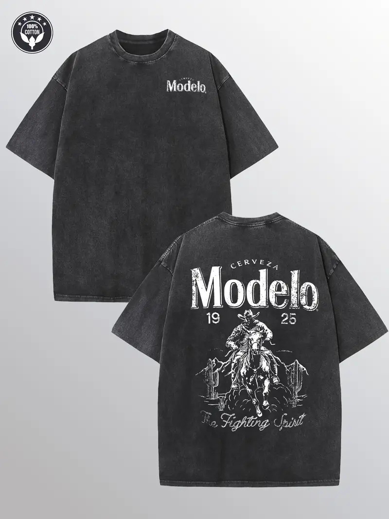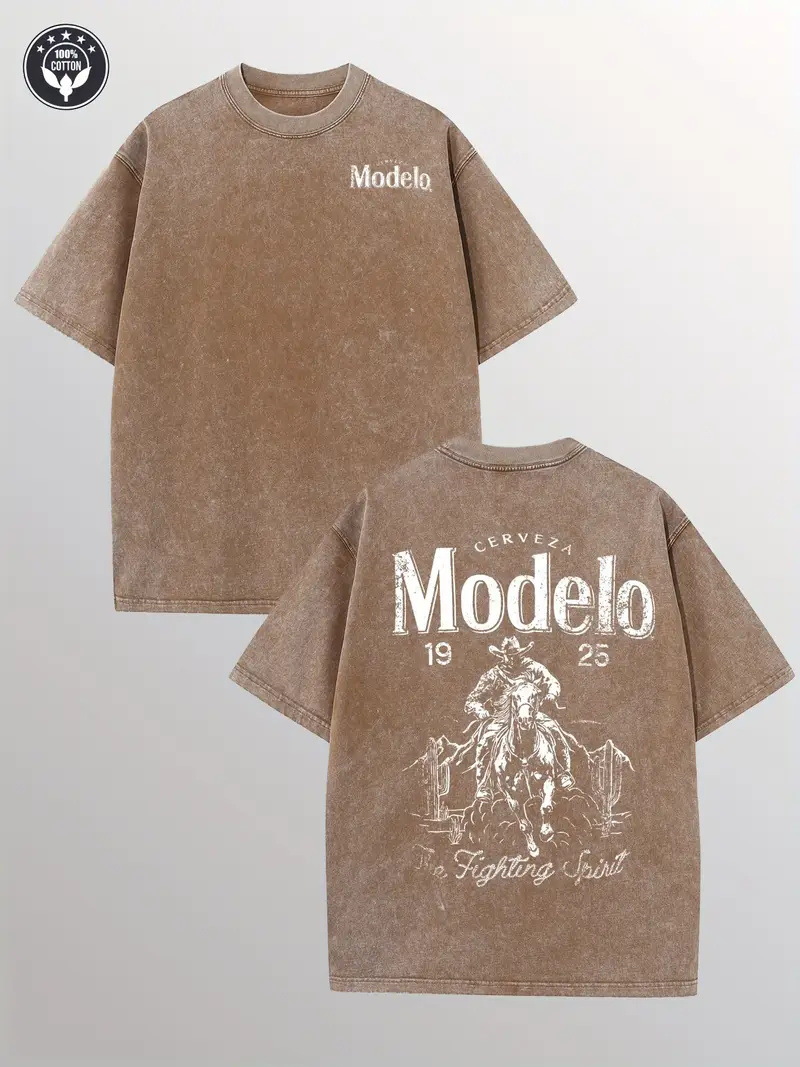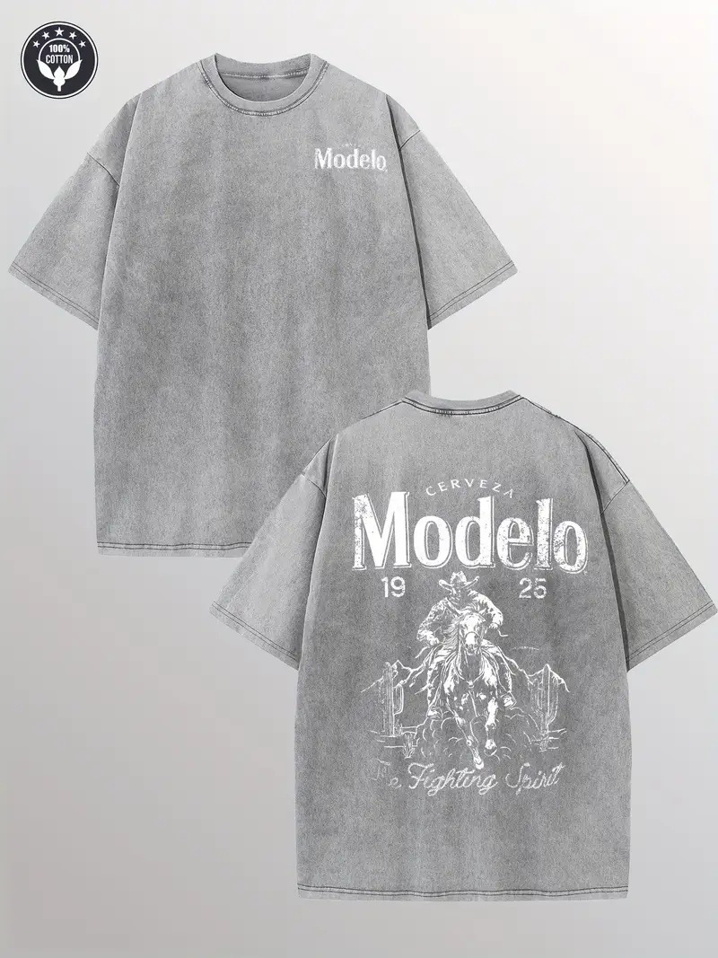 230g 씻은 오래 인쇄 된 크루 넥 패션 브랜드 느슨한 어깨 남성 및 여성 코튼 올드 티셔츠