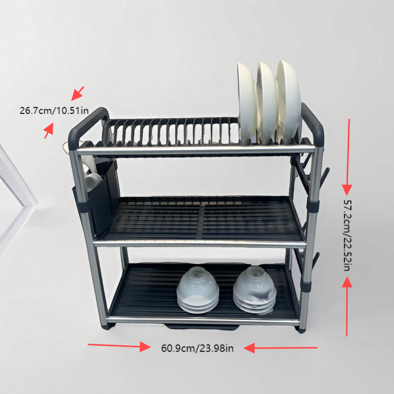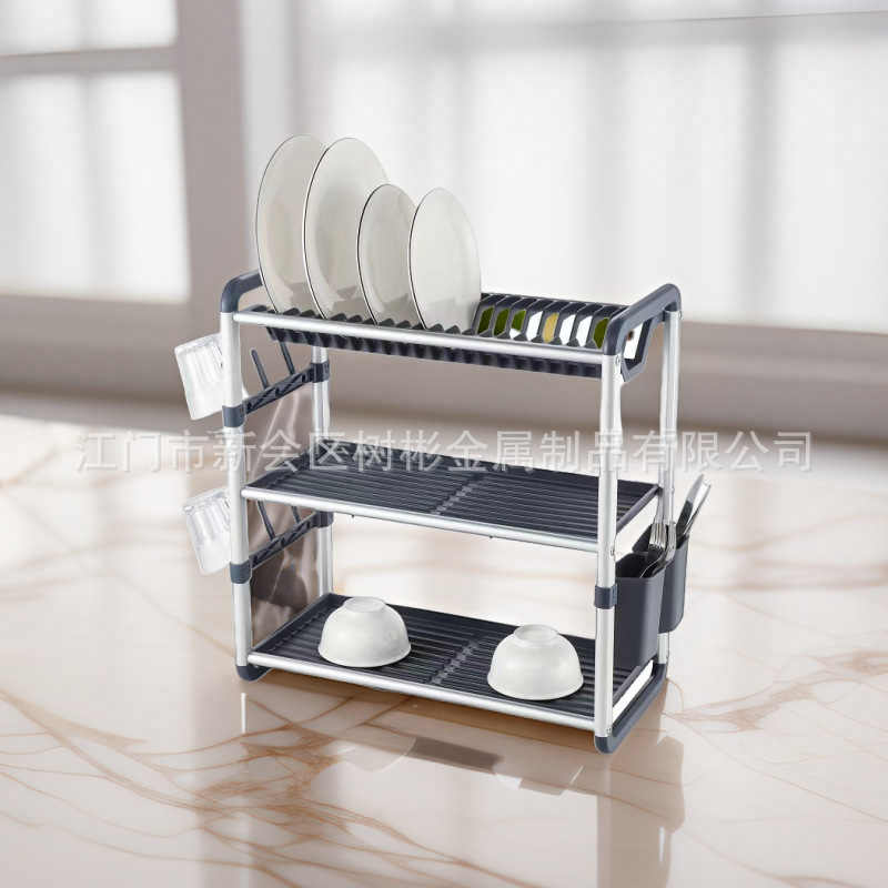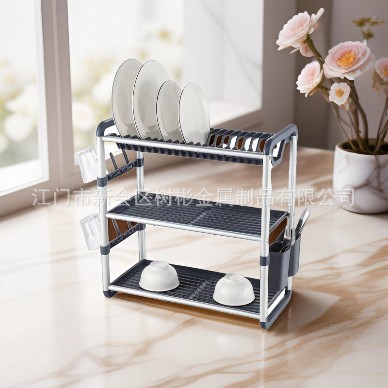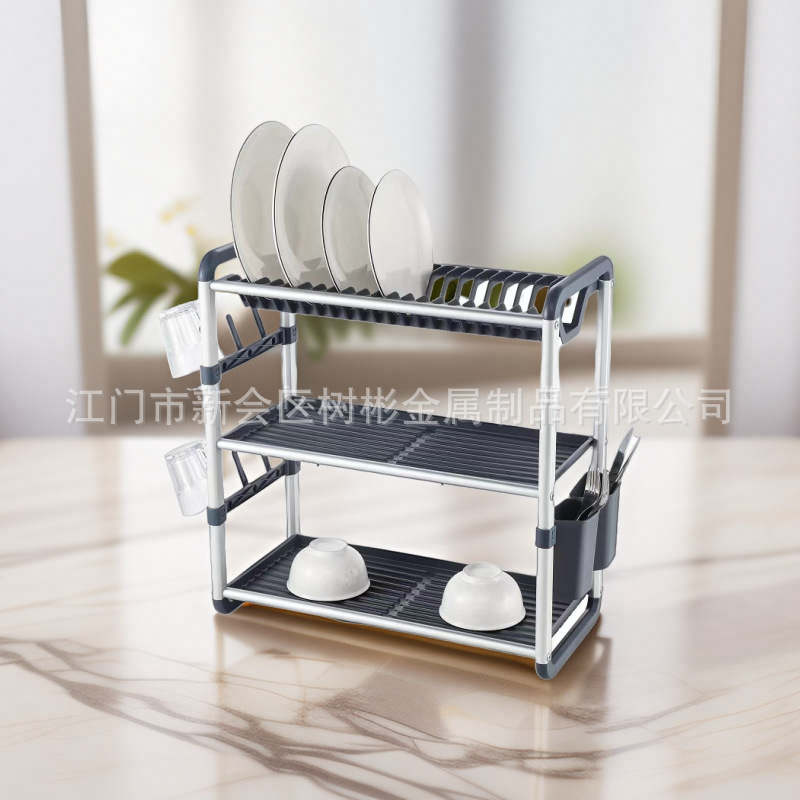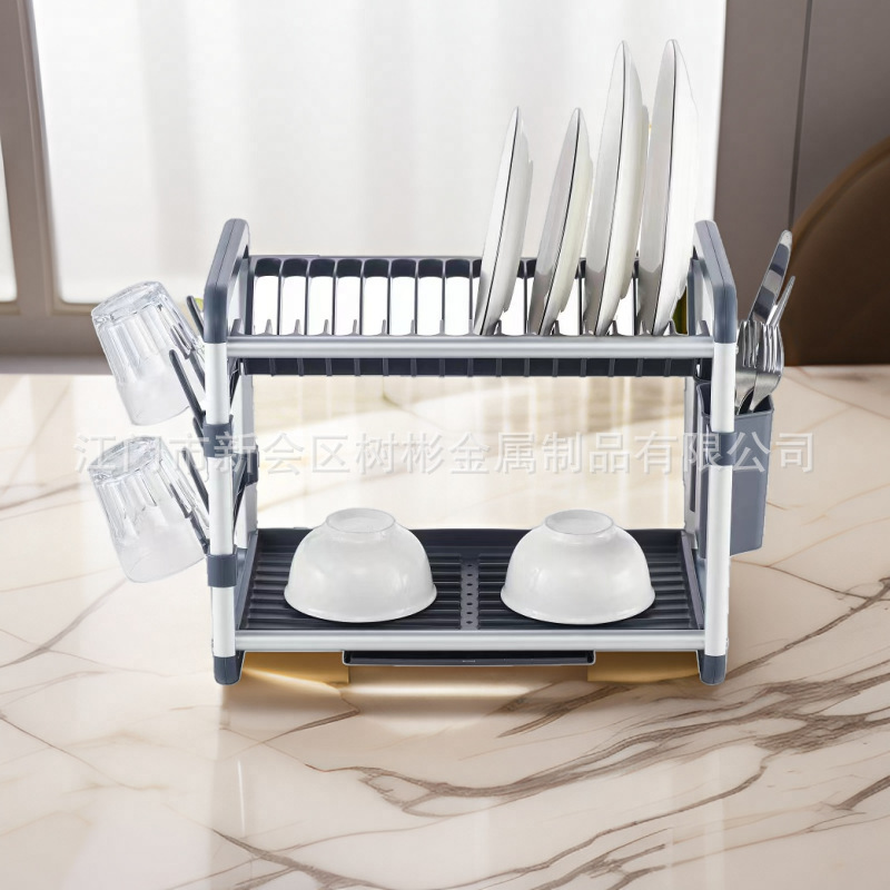 실버 공간 알루미늄 그릇 및 접시 젓가락 주방 보관 랙 가정용 다기능 2 층 3 층 그릇 및 젓가락 보관 랙