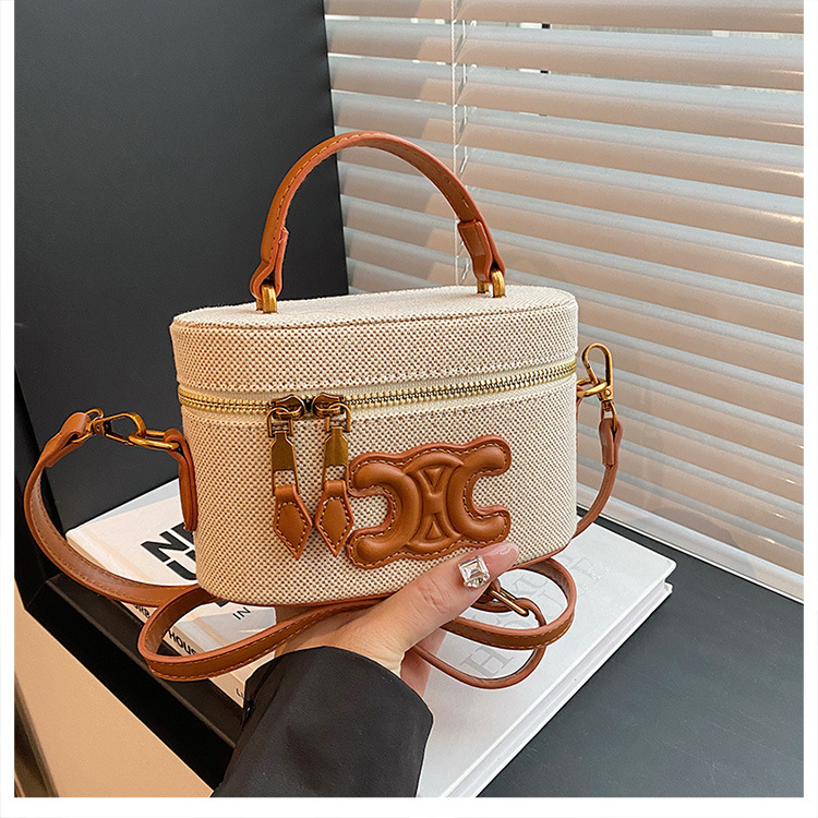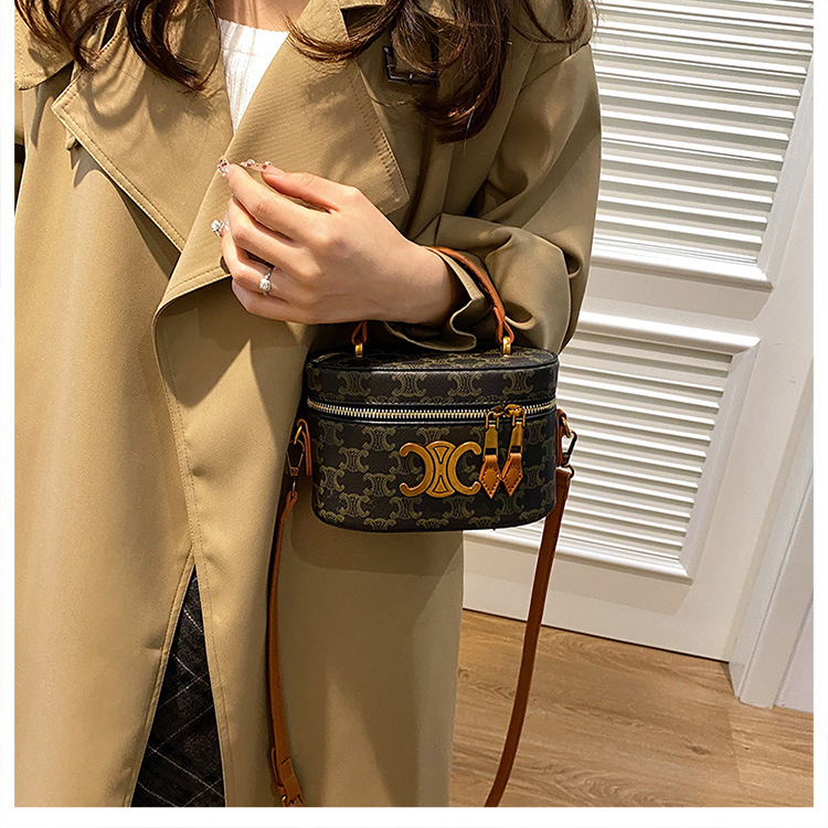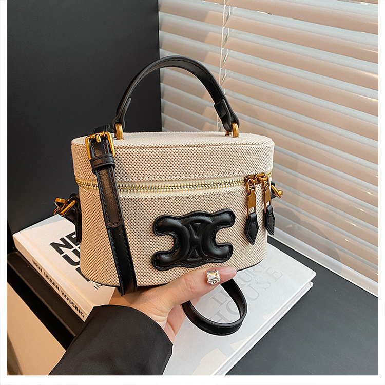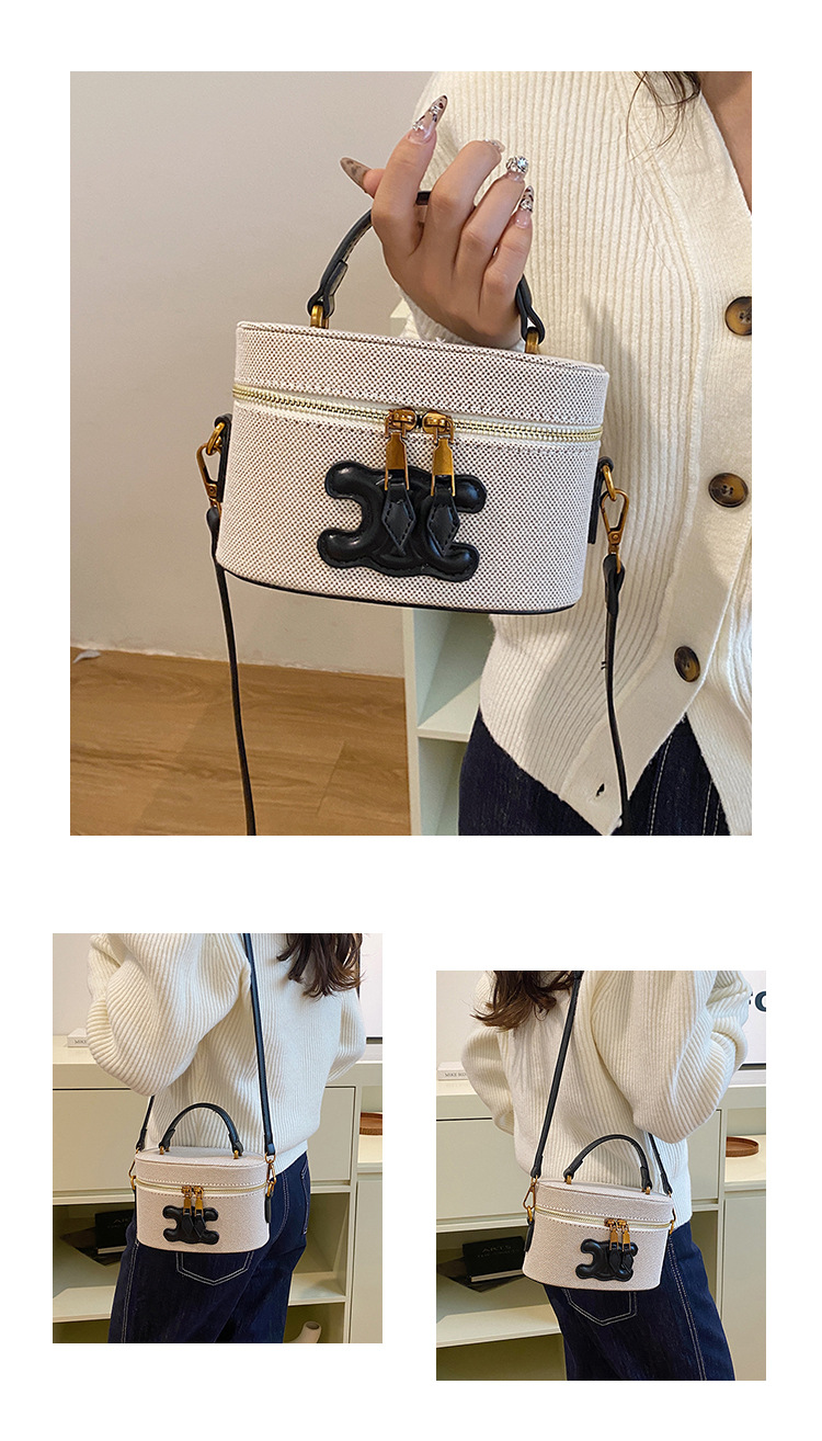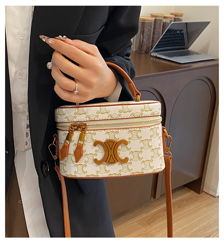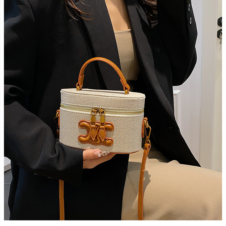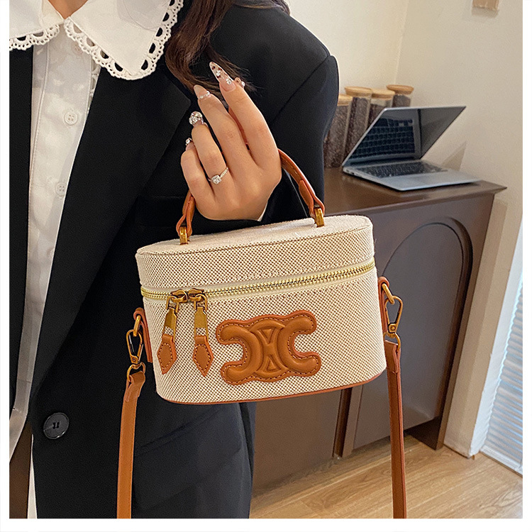 빈티지 콘트라스트 버킷 백 여성의 2025 새로운 틈새 디자인 휴대용 실린더 백 모든 매치 텍스처 숄더 크로스 바디 백스토어 가기