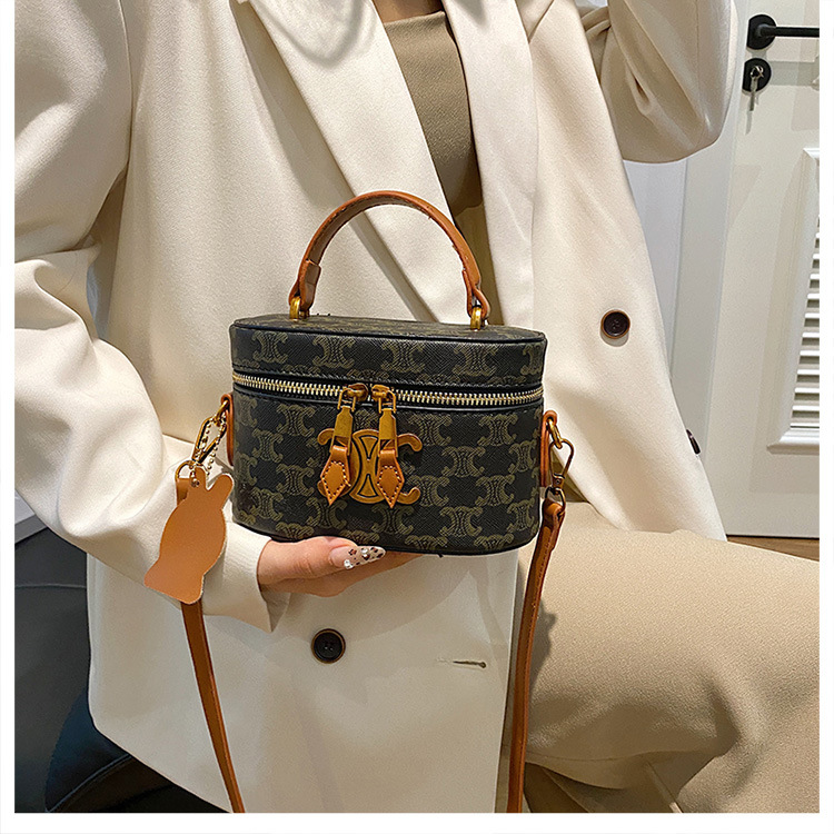 빈티지 콘트라스트 버킷 백 여성의 2025 새로운 틈새 디자인 휴대용 실린더 백 모든 매치 텍스처 숄더 크로스 바디 백