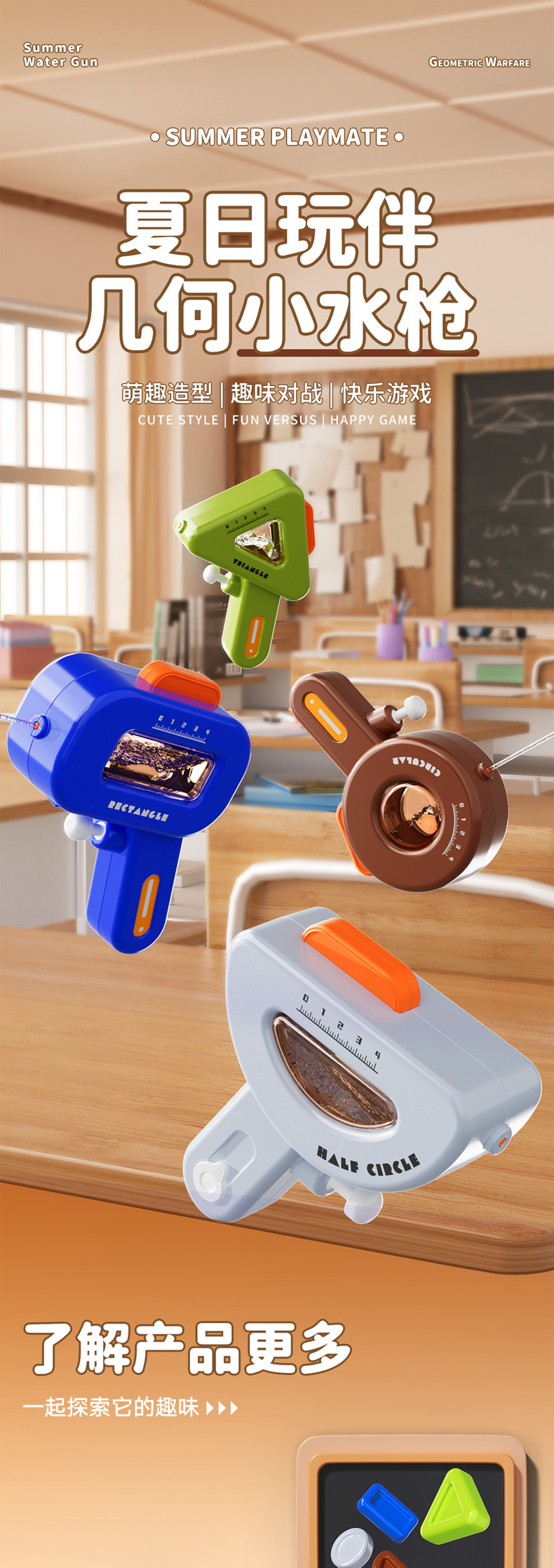 여름 새로운 물 튀는 기하학적 작은 물 총 여름 야외 해변 귀여운 귀여운 부드러운 핸즈없는 어린이 장난감스토어 가기