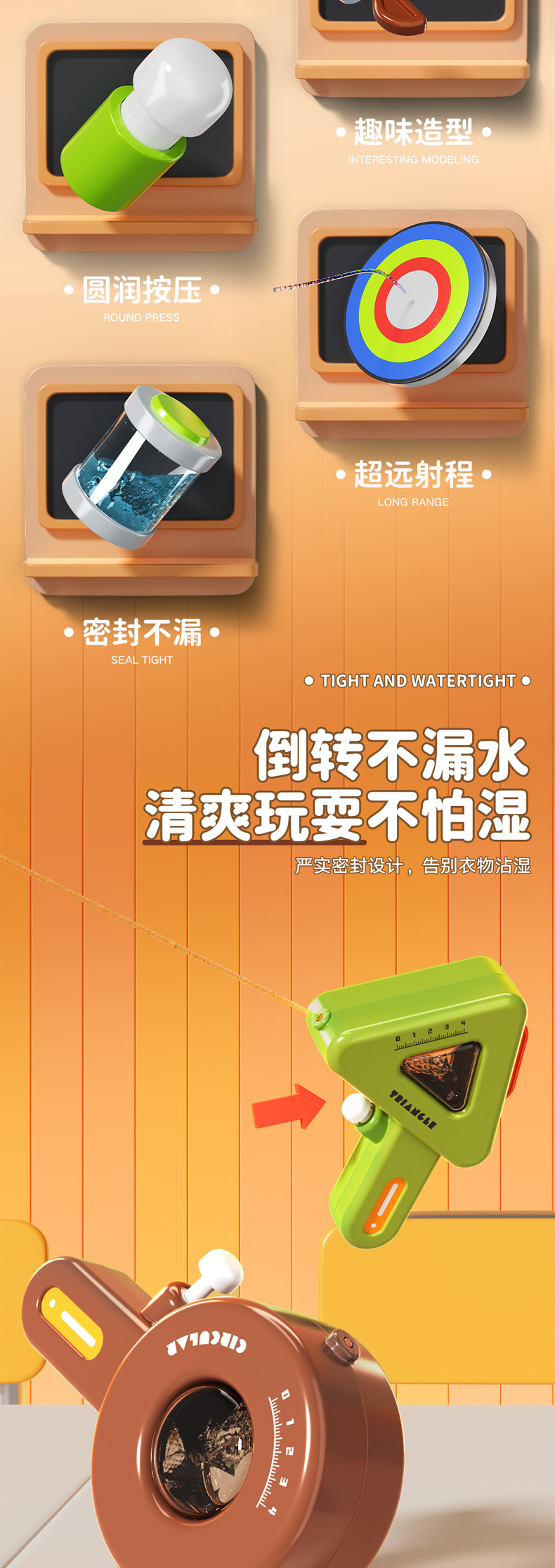 여름 새로운 물 튀는 기하학적 작은 물 총 여름 야외 해변 귀여운 귀여운 부드러운 핸즈없는 어린이 장난감