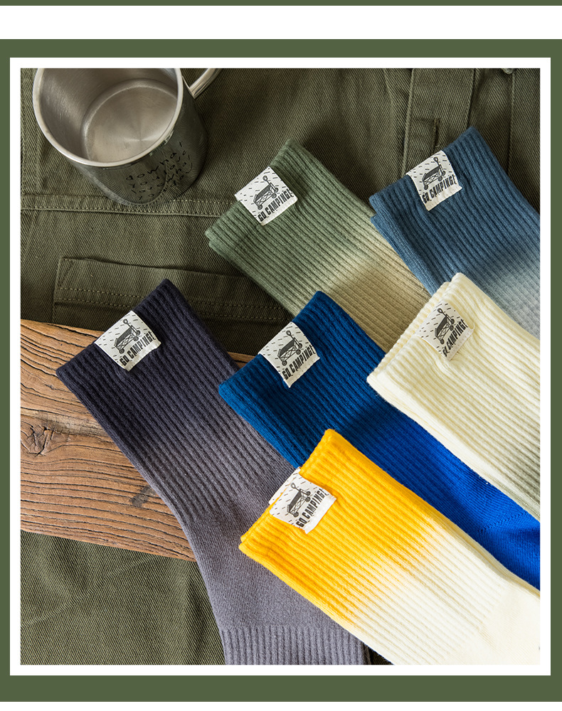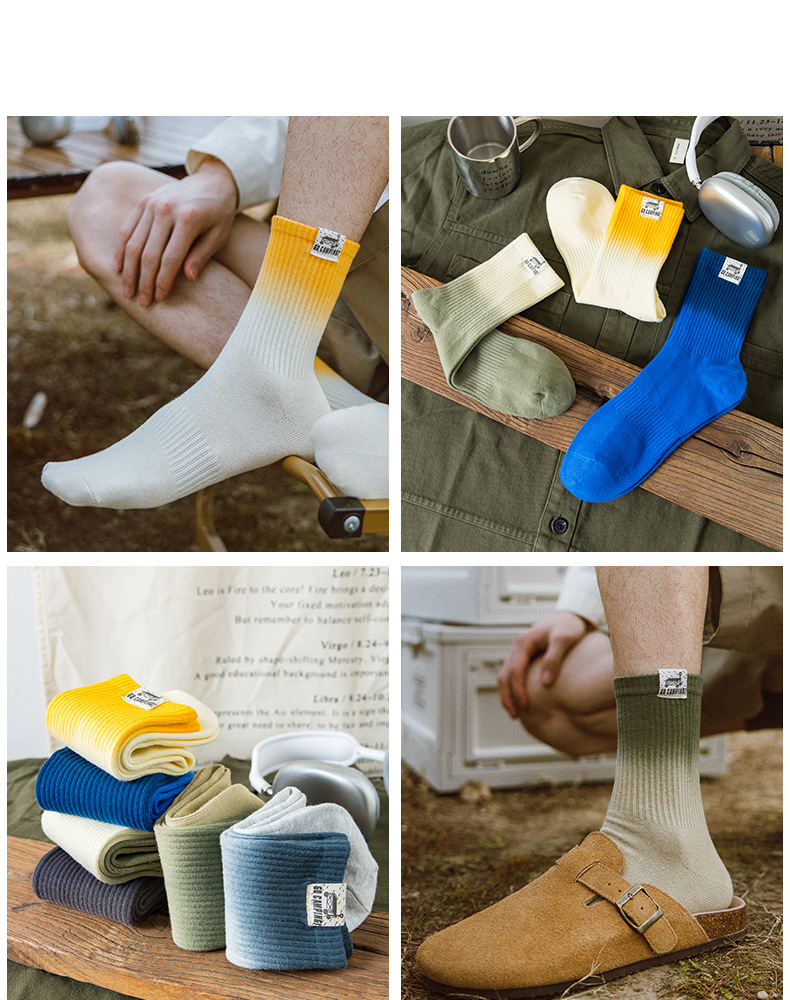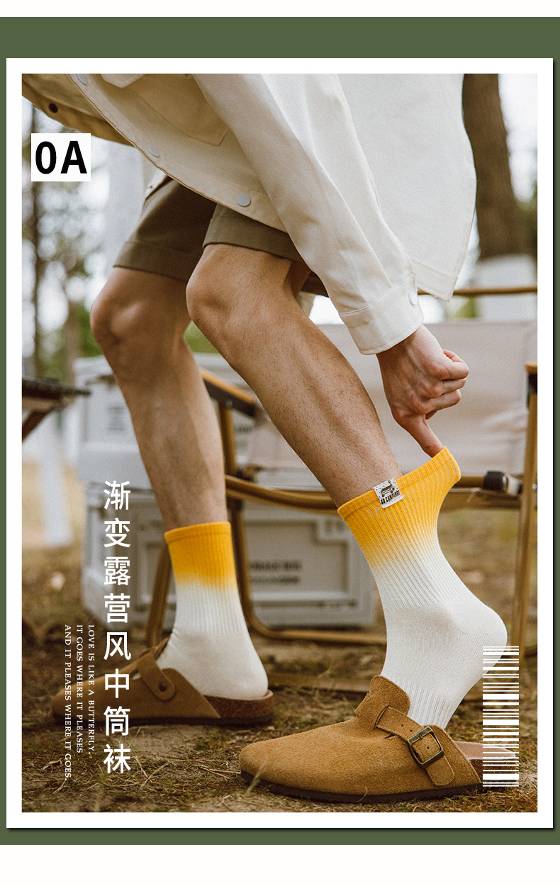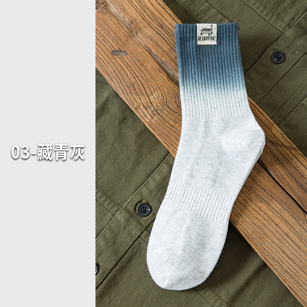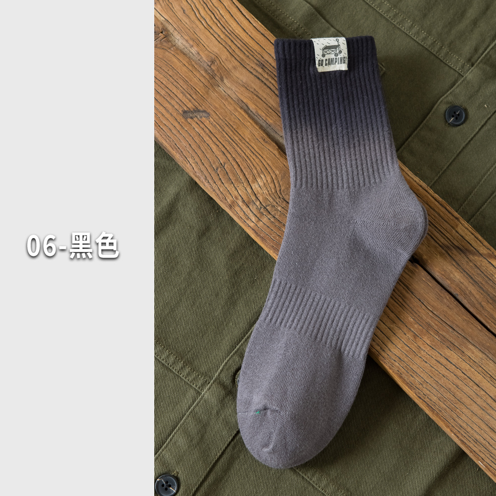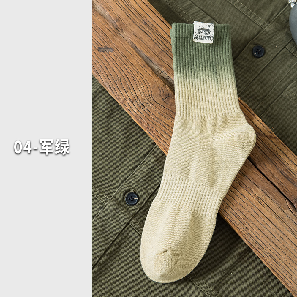 25 봄과 여름 그라디언트 미드 튜브 양말 남성 야외 커플 작업복 흡수 스포츠 코튼 양말 여성용 중립 넥타이 염색 양말스토어 가기