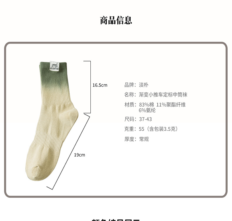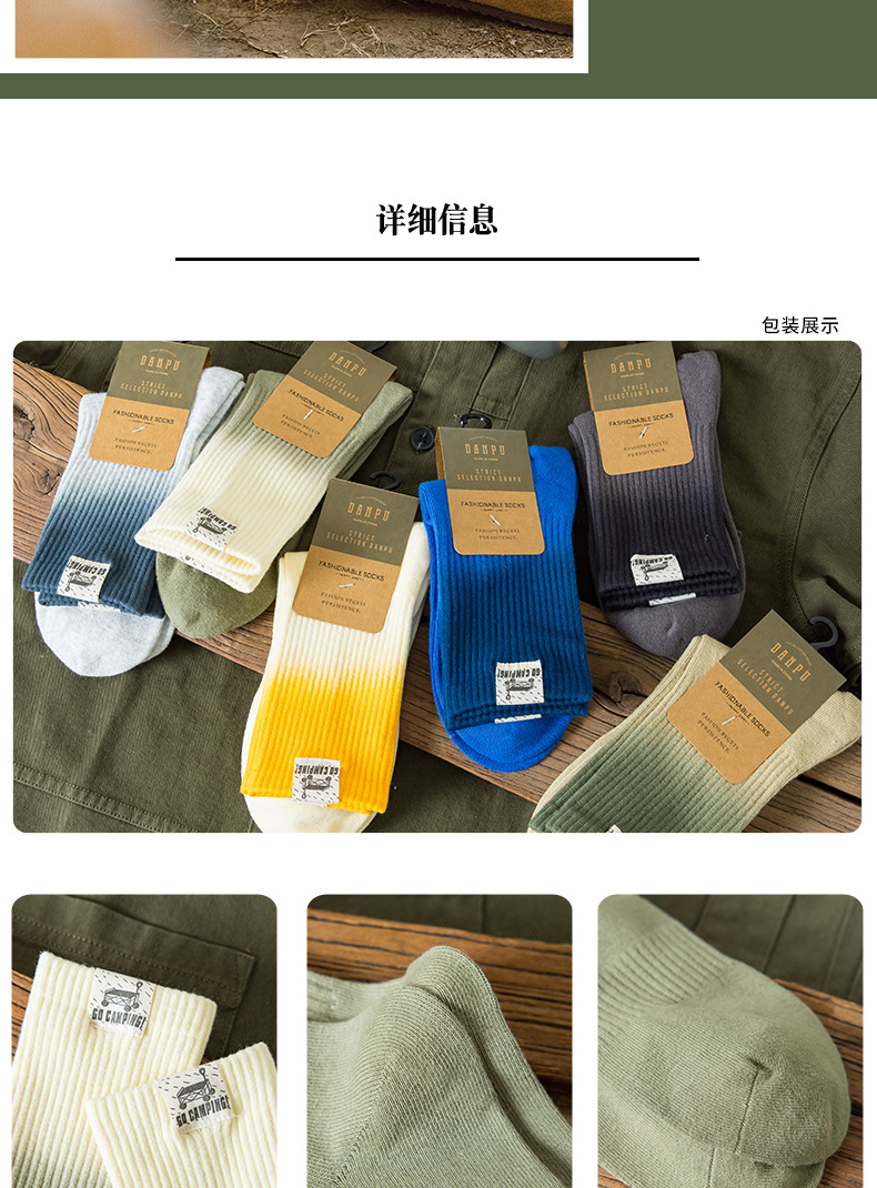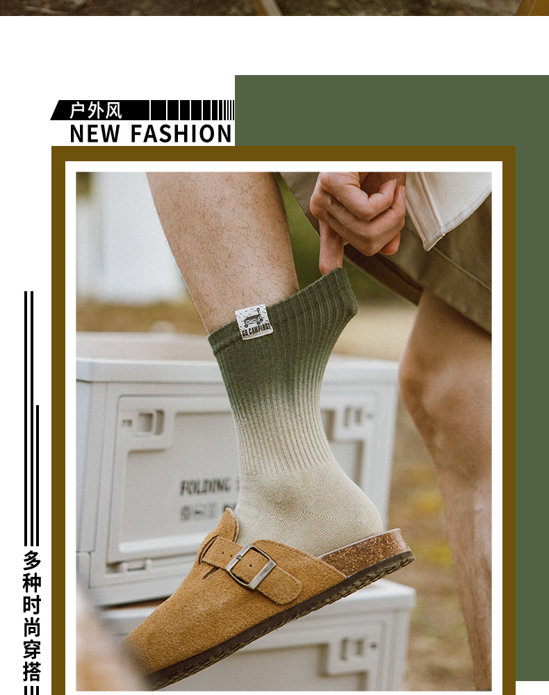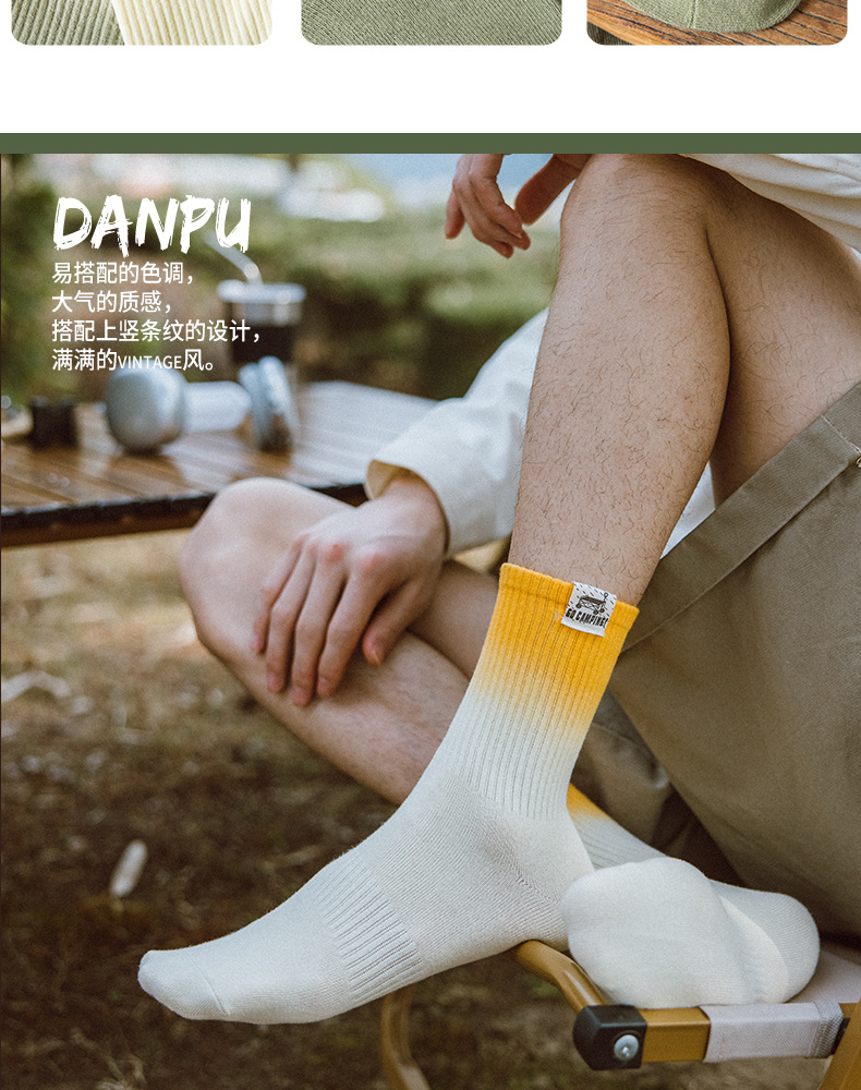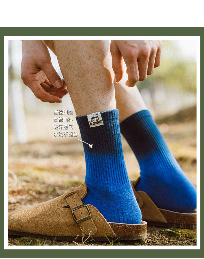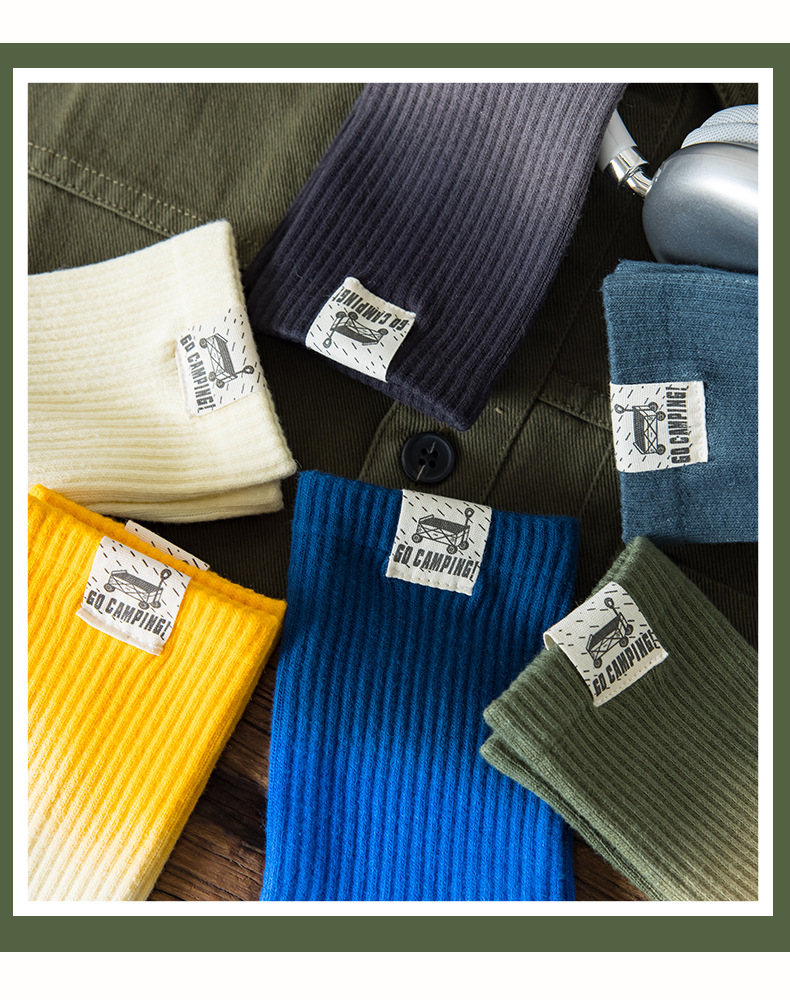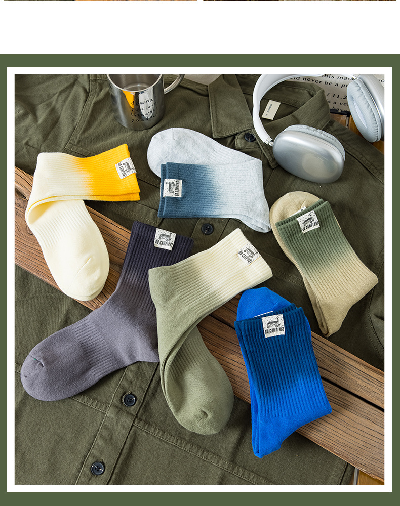 25 봄과 여름 그라디언트 미드 튜브 양말 남성 야외 커플 작업복 흡수 스포츠 코튼 양말 여성용 중립 넥타이 염색 양말스토어 가기