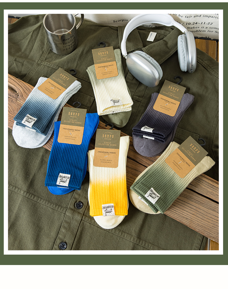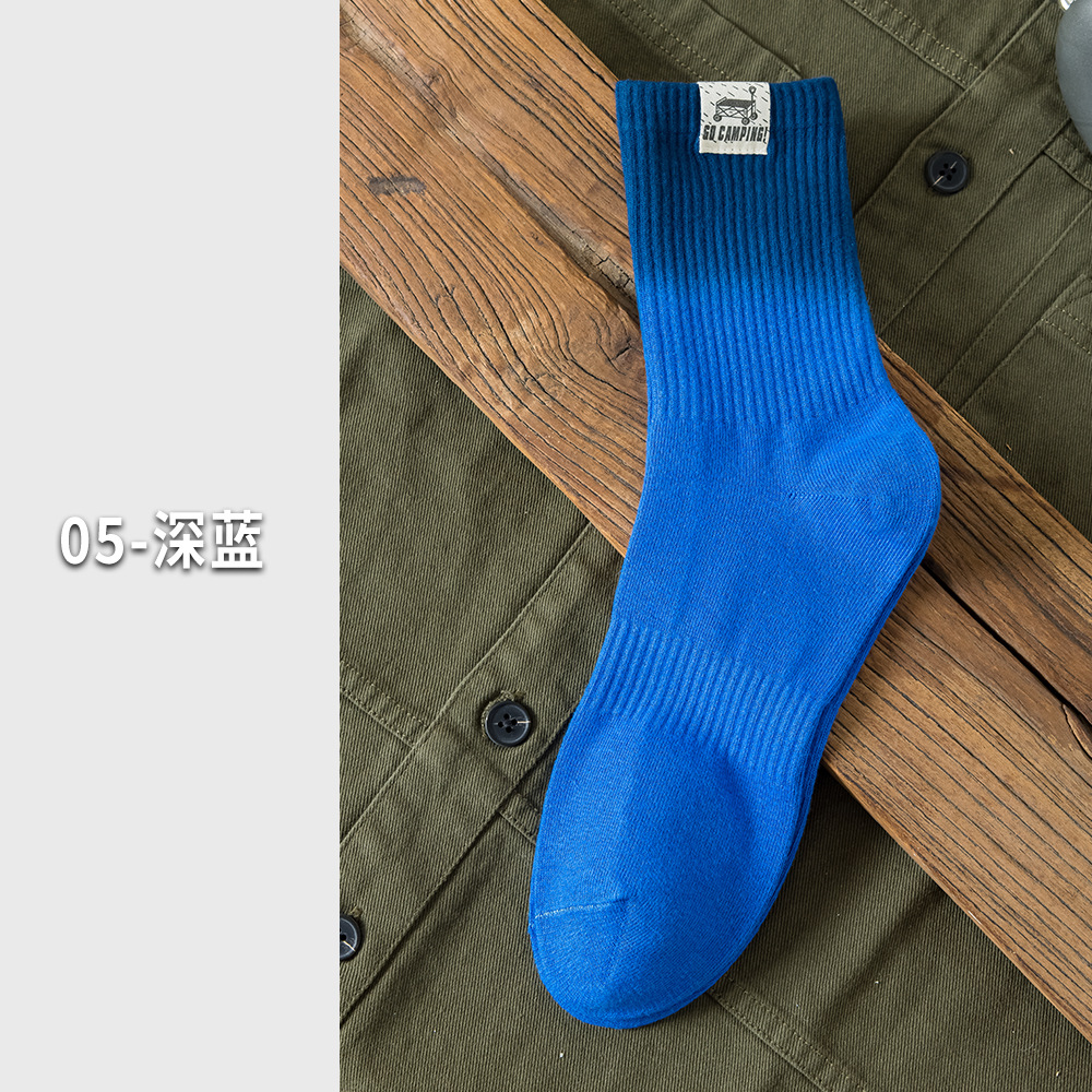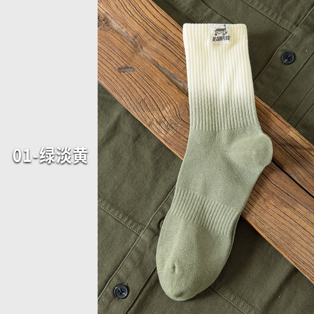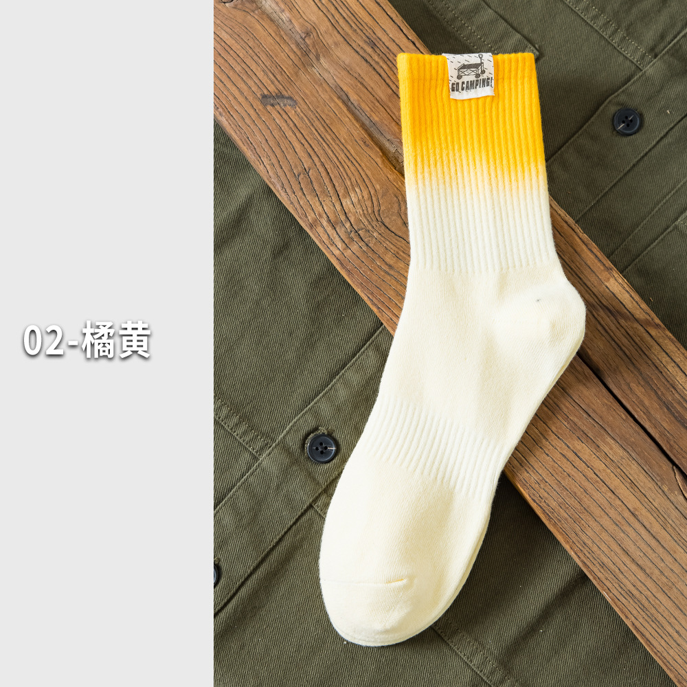 25 봄과 여름 그라디언트 미드 튜브 양말 남성 야외 커플 작업복 흡수 스포츠 코튼 양말 여성용 중립 넥타이 염색 양말