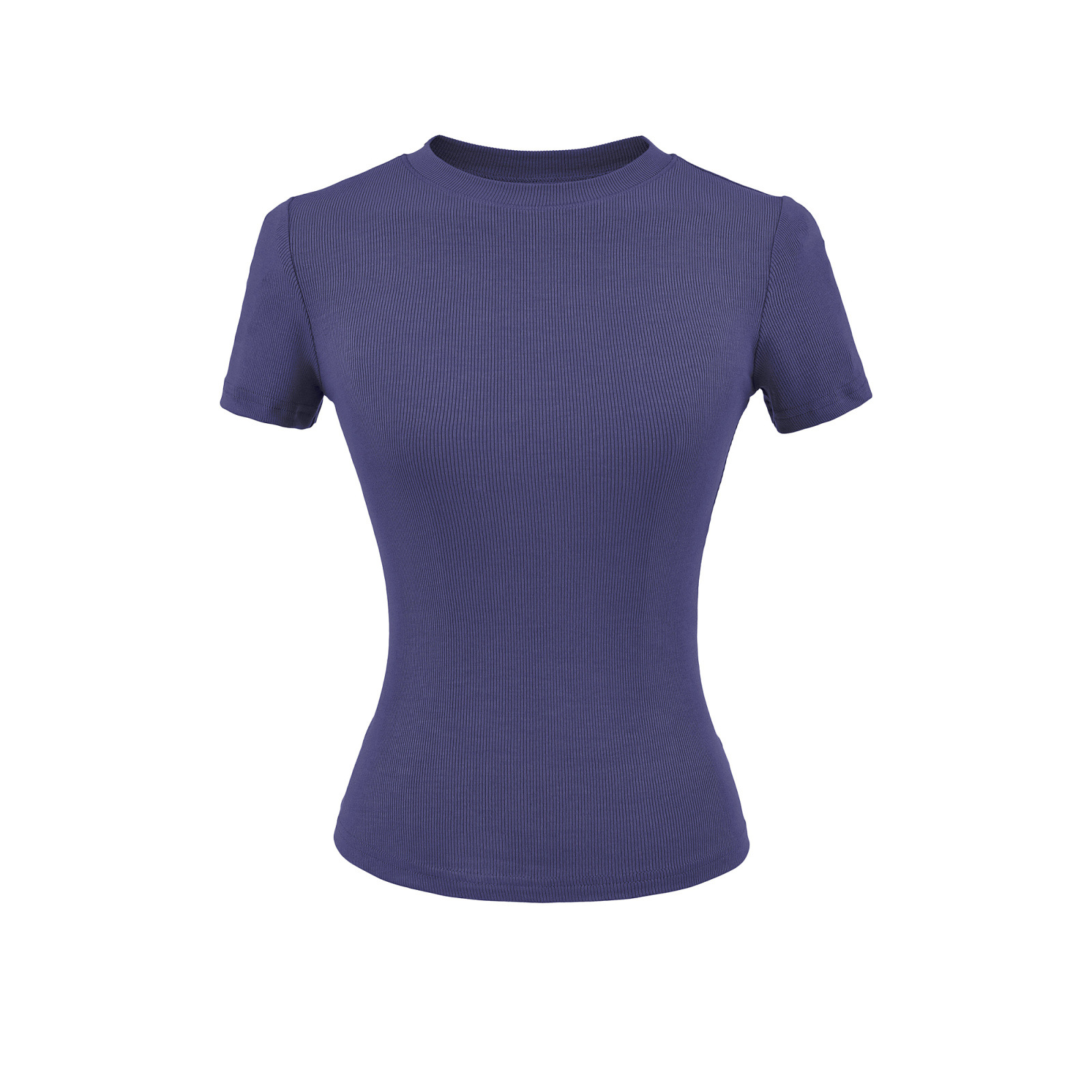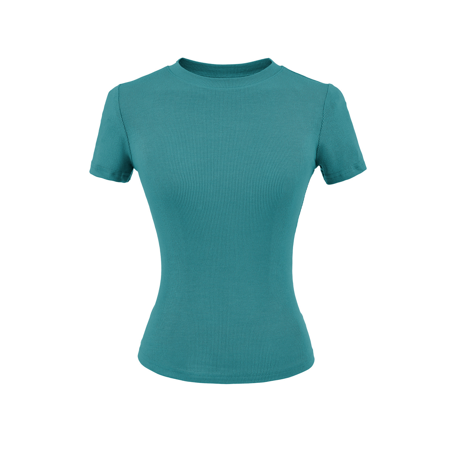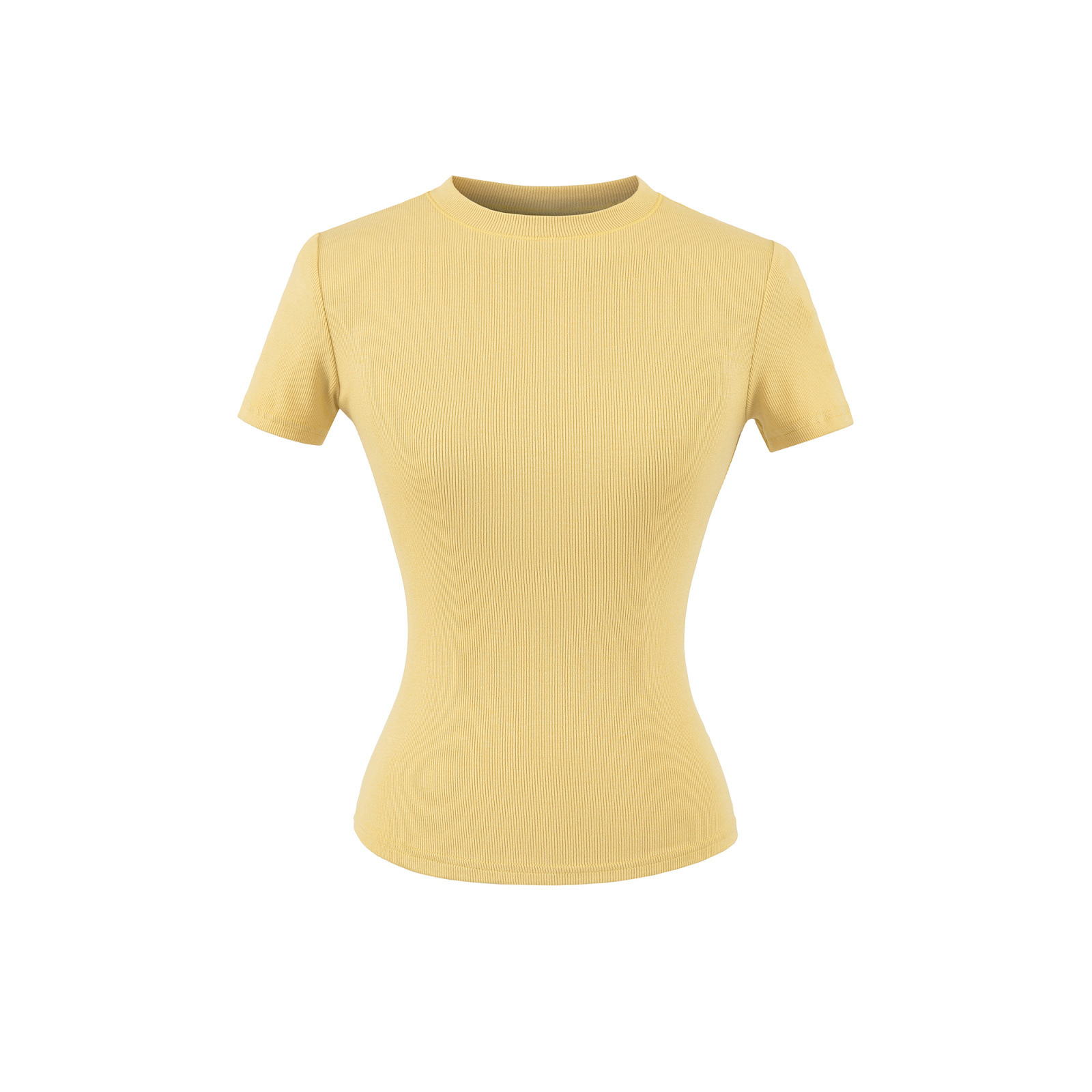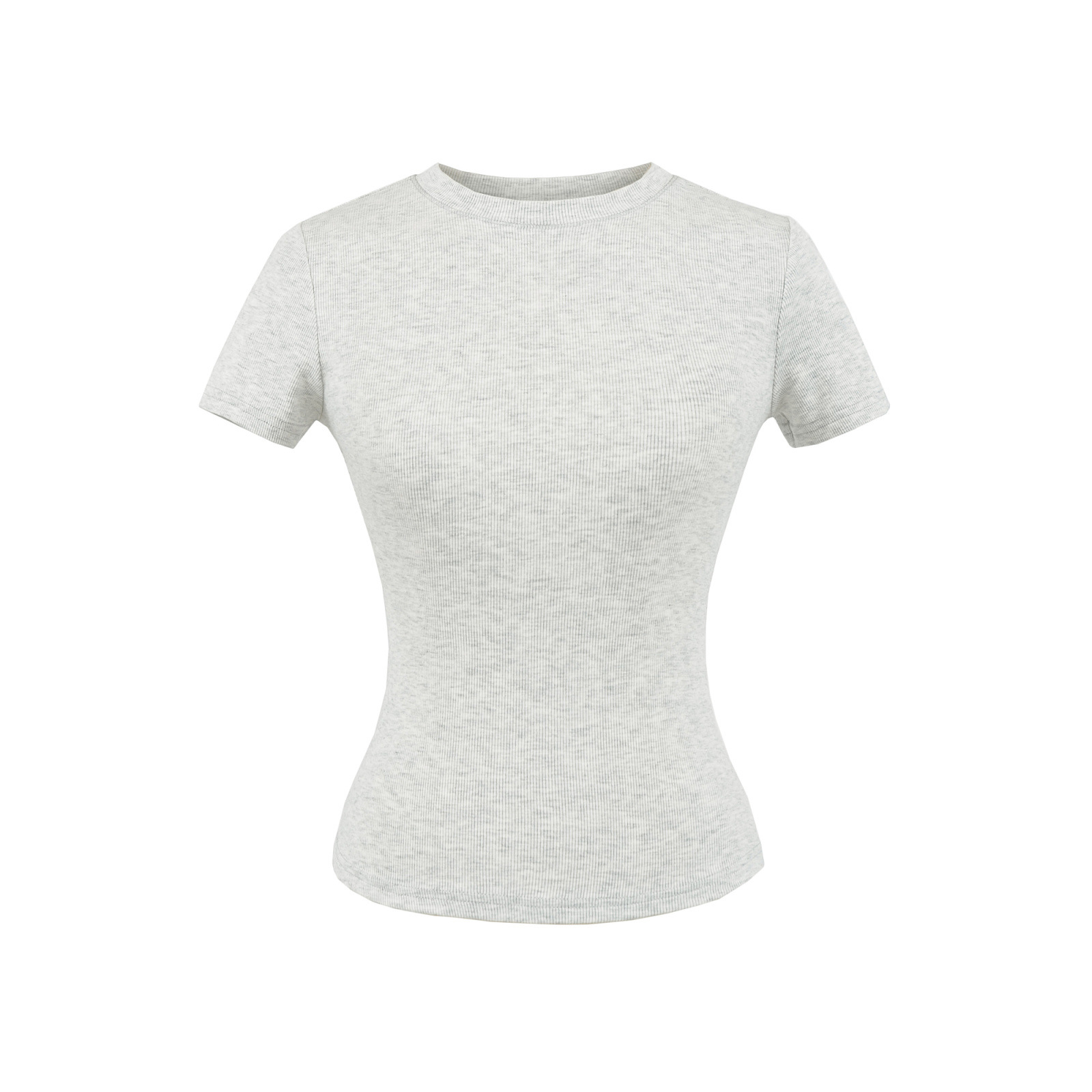 2025 Hot Girl Threaded Tight 반팔 티셔츠 여성 여름 슬림 피트 작은 라운드 넥 솔리드 컬러 스트레치 스포츠 탑 크로스 보더