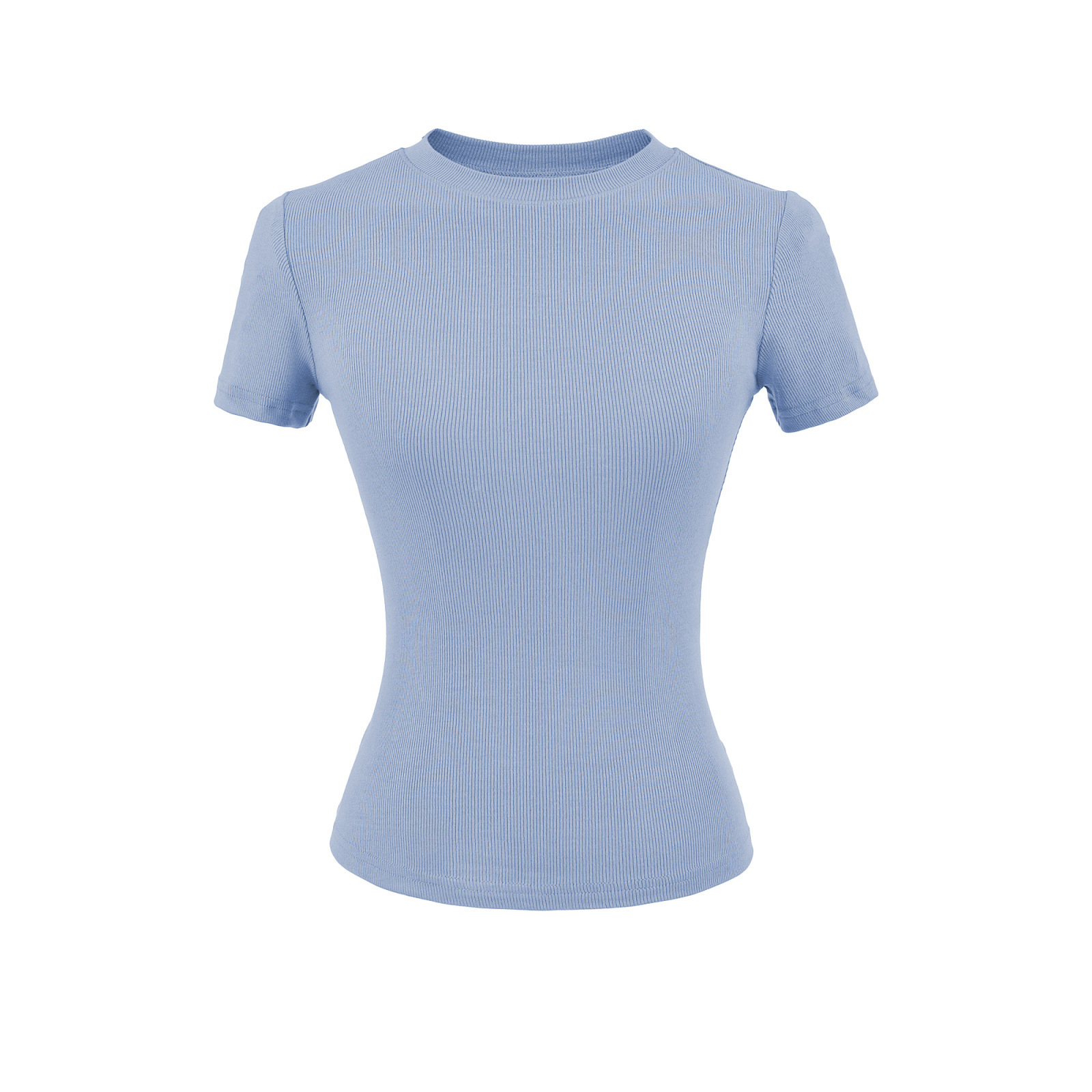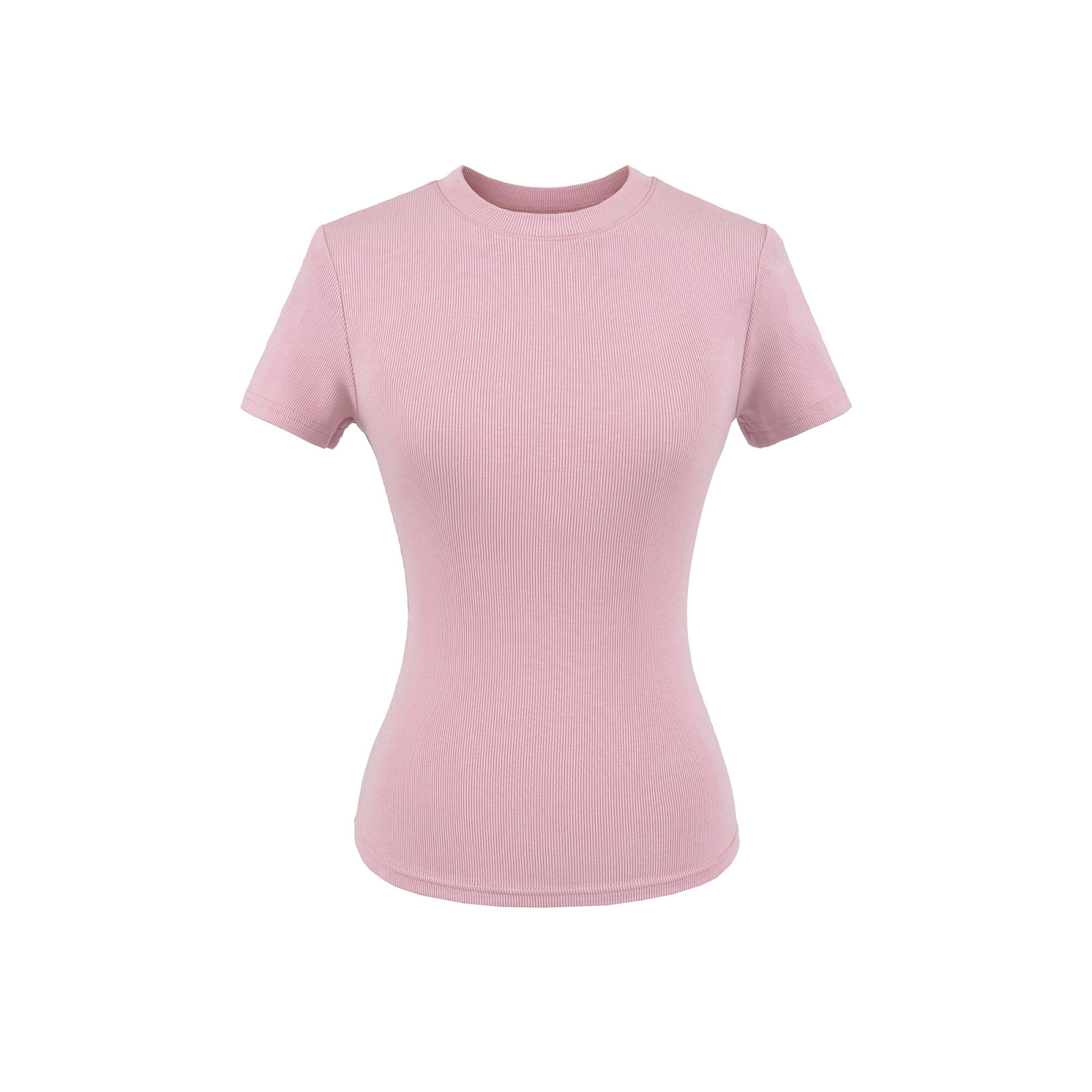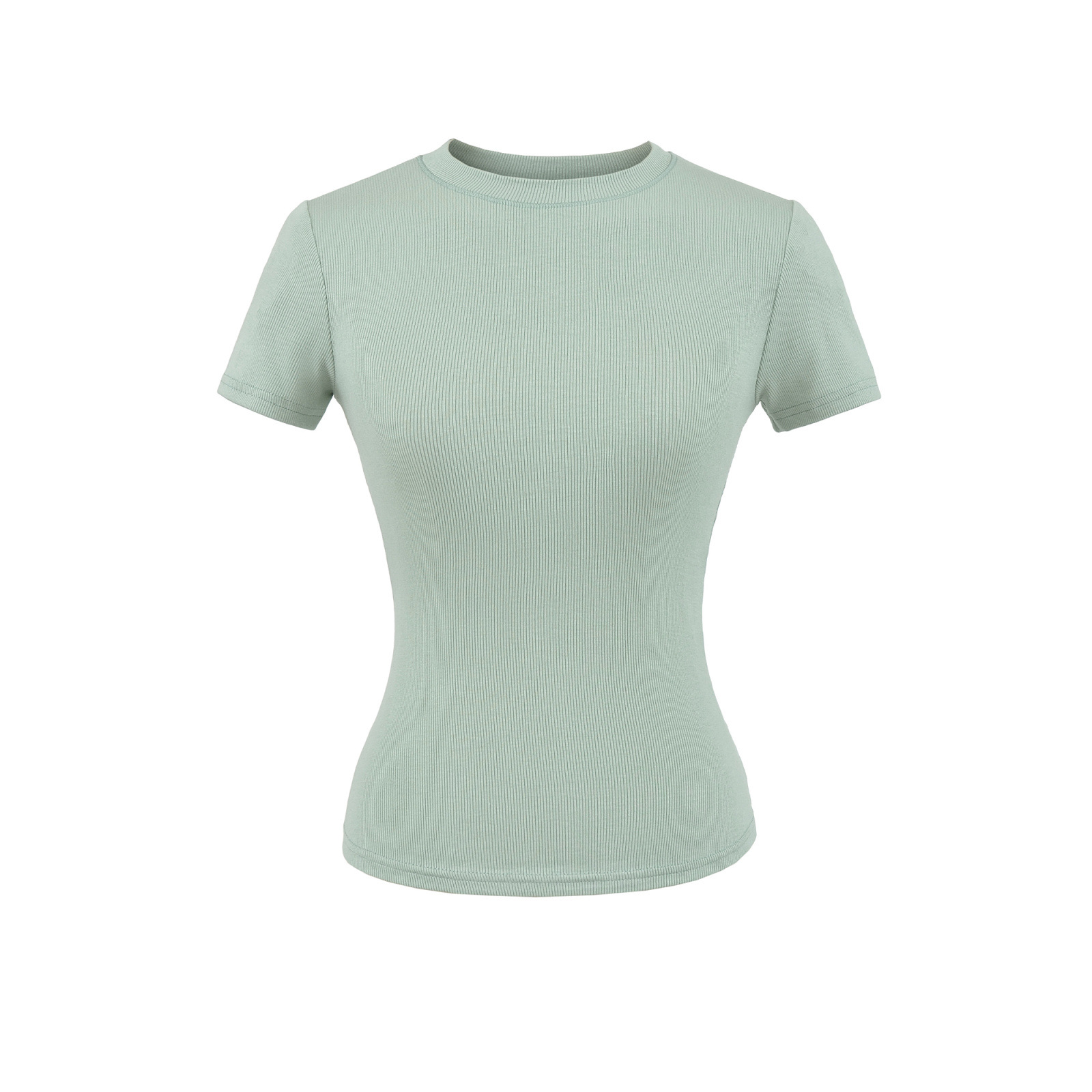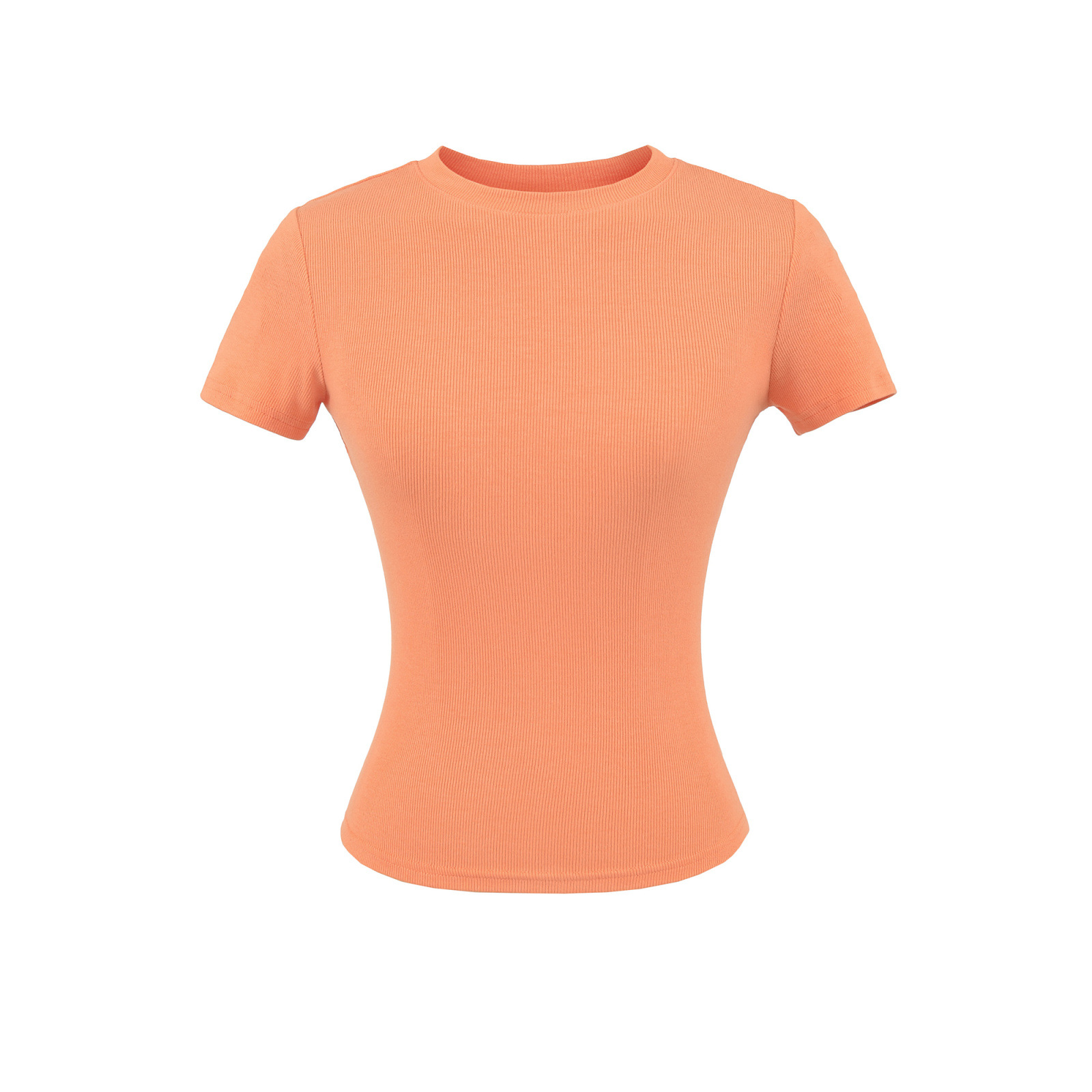 2025 Hot Girl Threaded Tight 반팔 티셔츠 여성 여름 슬림 피트 작은 라운드 넥 솔리드 컬러 스트레치 스포츠 탑 크로스 보더스토어 가기