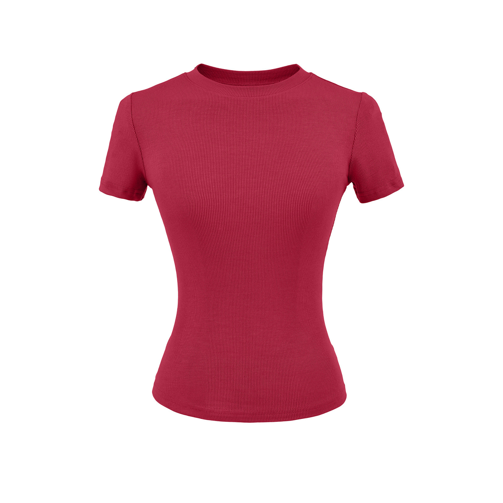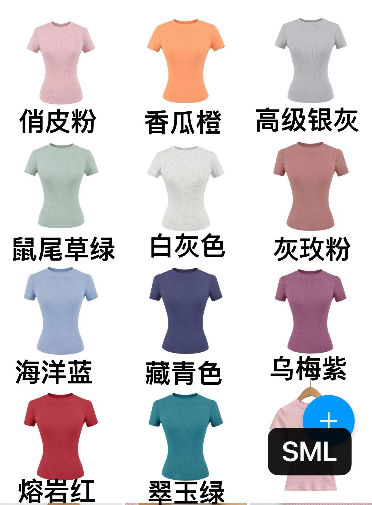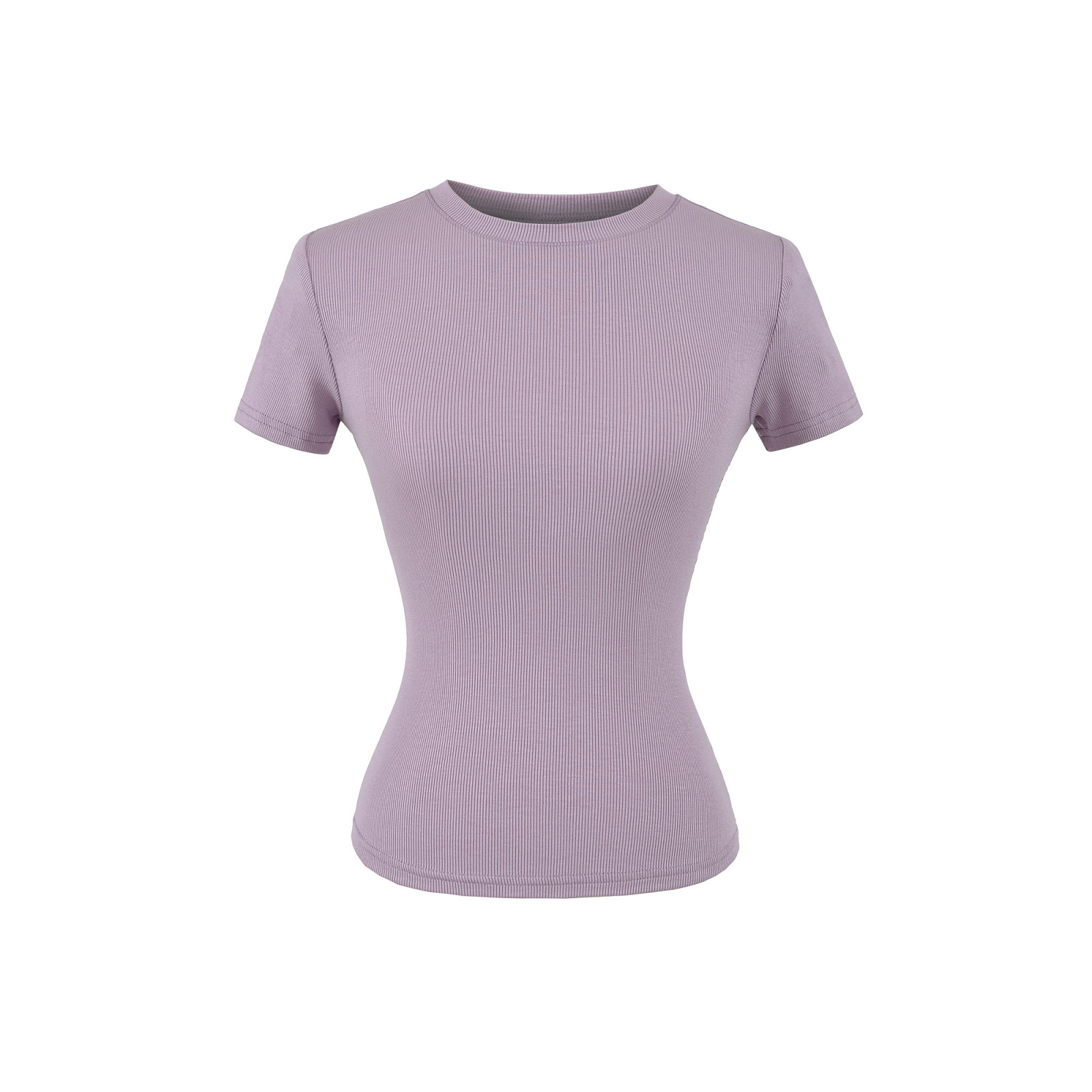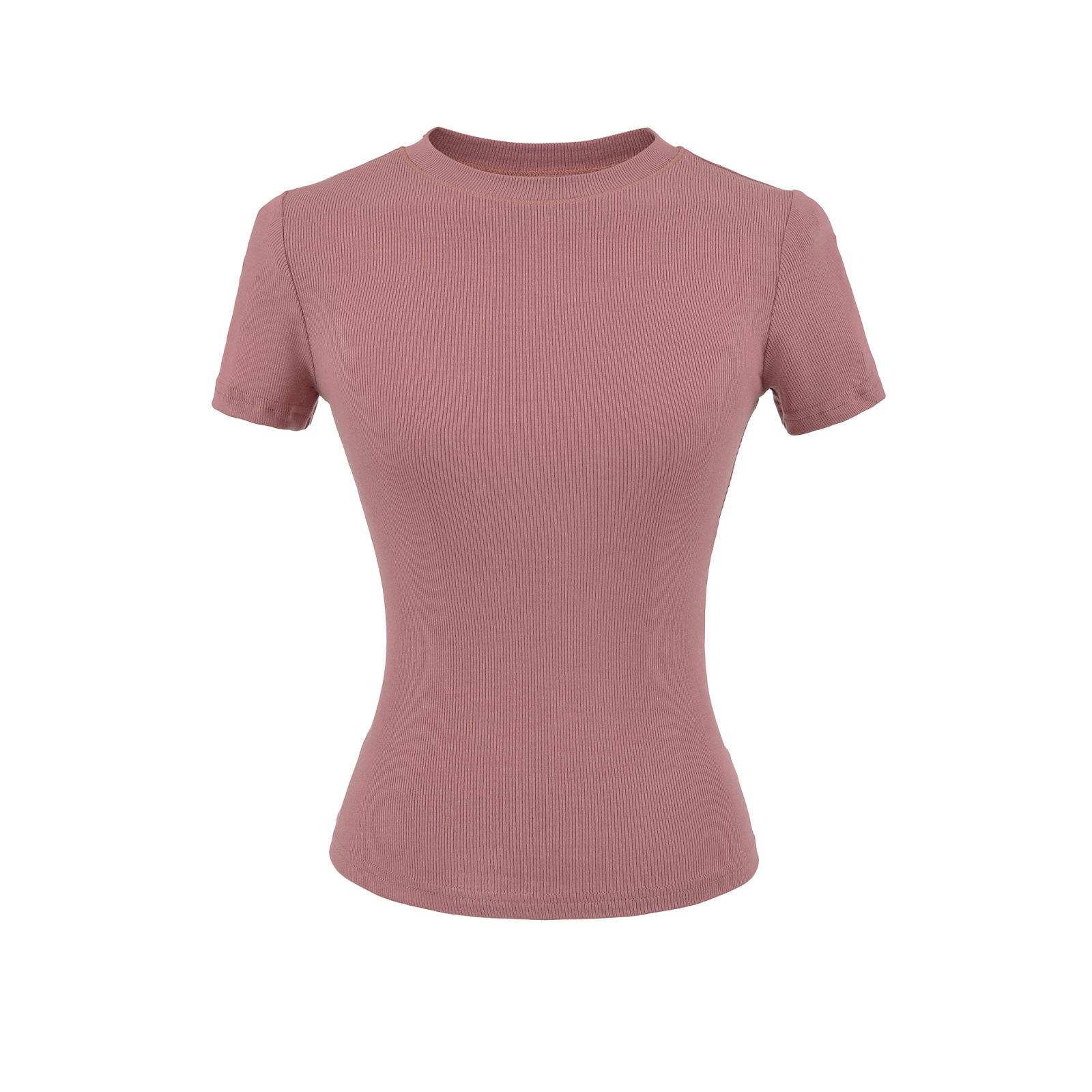 2025 Hot Girl Threaded Tight 반팔 티셔츠 여성 여름 슬림 피트 작은 라운드 넥 솔리드 컬러 스트레치 스포츠 탑 크로스 보더스토어 가기