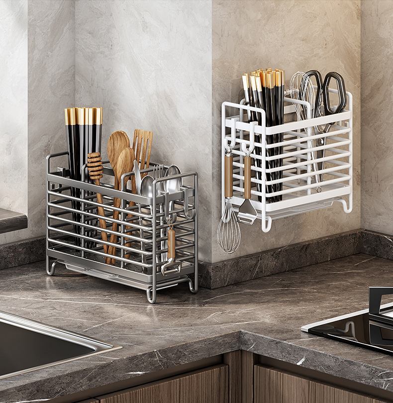 젓가락 보관 상자 주방 젓가락 홀더 벽걸이 형 젓가락 바구니 가정용 숟가락 젓가락 케이지 배수 보관 랙스토어 가기