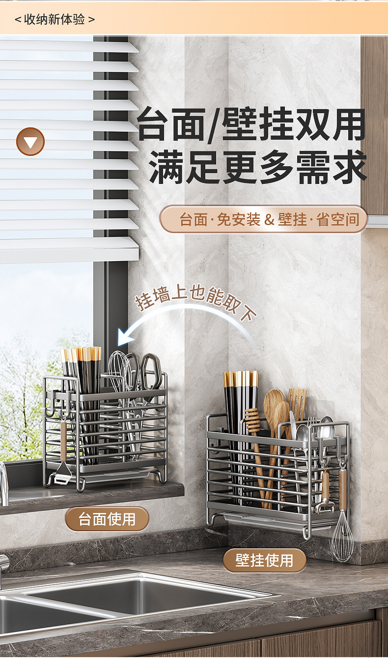 젓가락 보관 상자 주방 젓가락 홀더 벽걸이 형 젓가락 바구니 가정용 숟가락 젓가락 케이지 배수 보관 랙