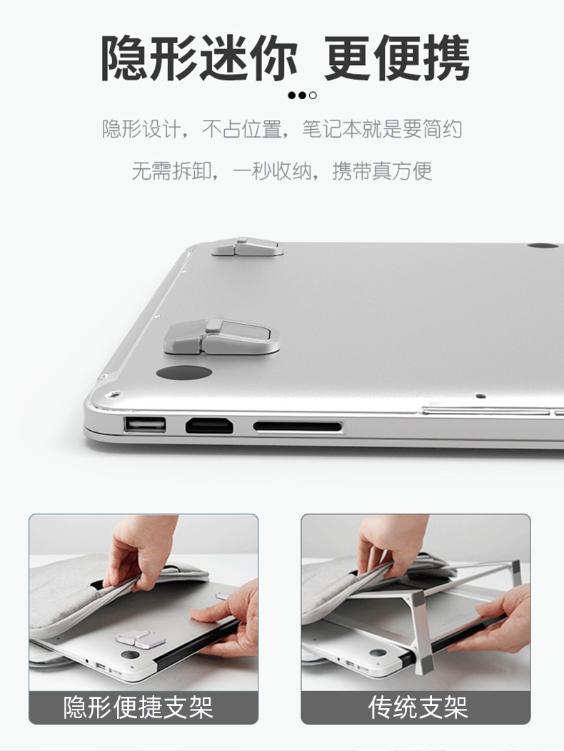 笔记本电脑支架隐形粘贴托架折叠收纳便携增高架键盘脚垫支撑架子