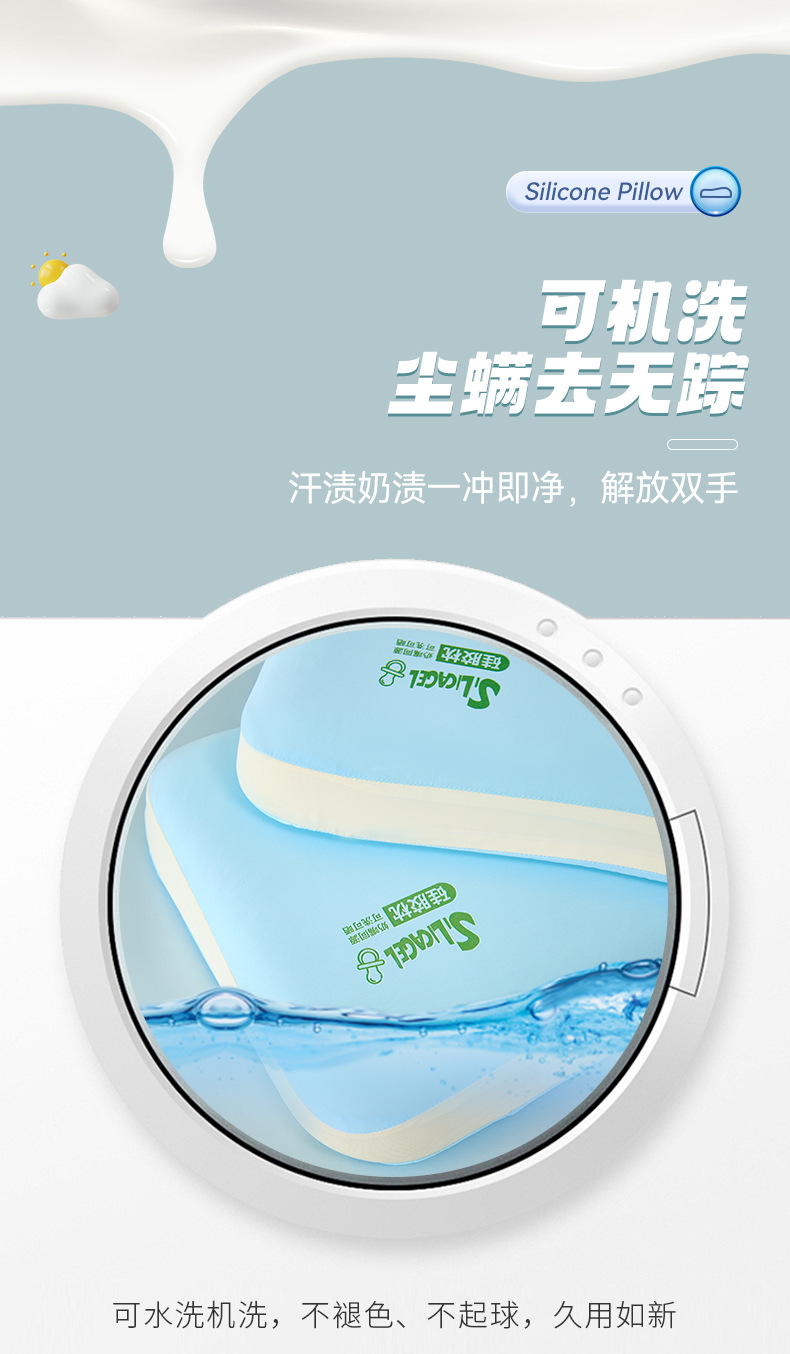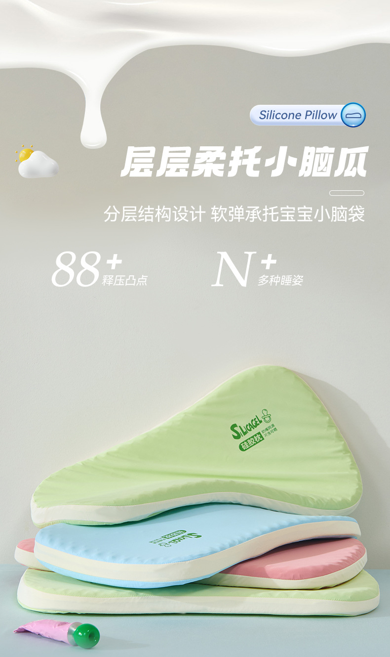 클래스 A 식품 학년 빨 수있는 선탠 실리콘 베이비 베개 어린이 베개 코어 편안한 피부 친화적 인 베개 코어 공장 도매스토어 가기