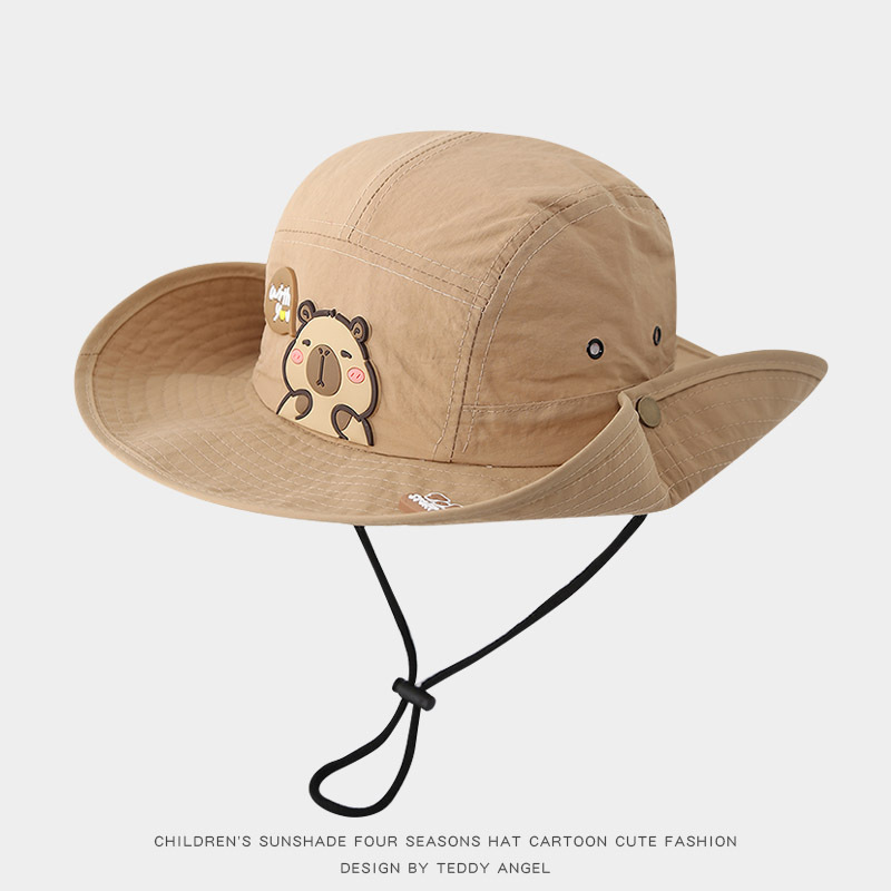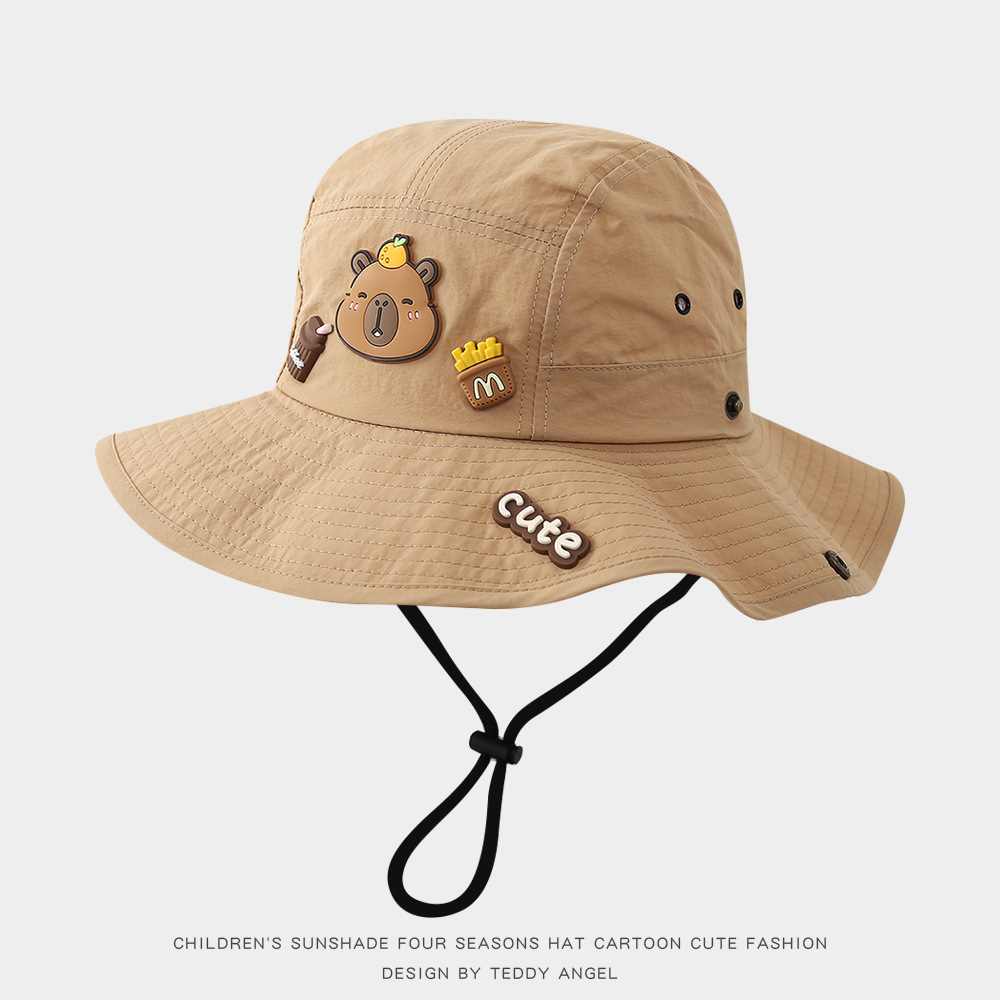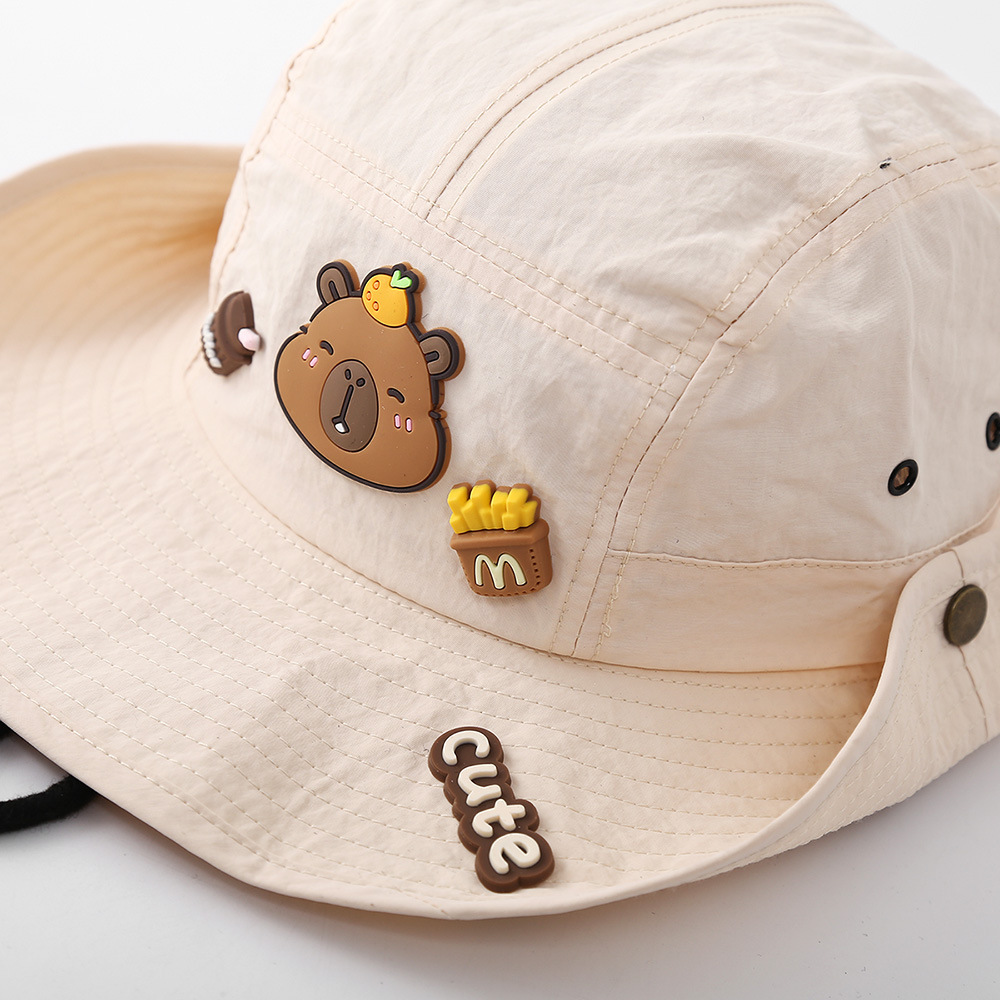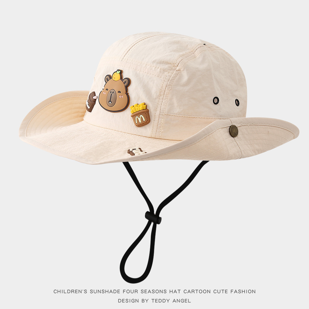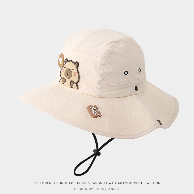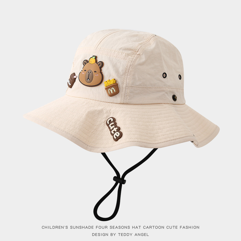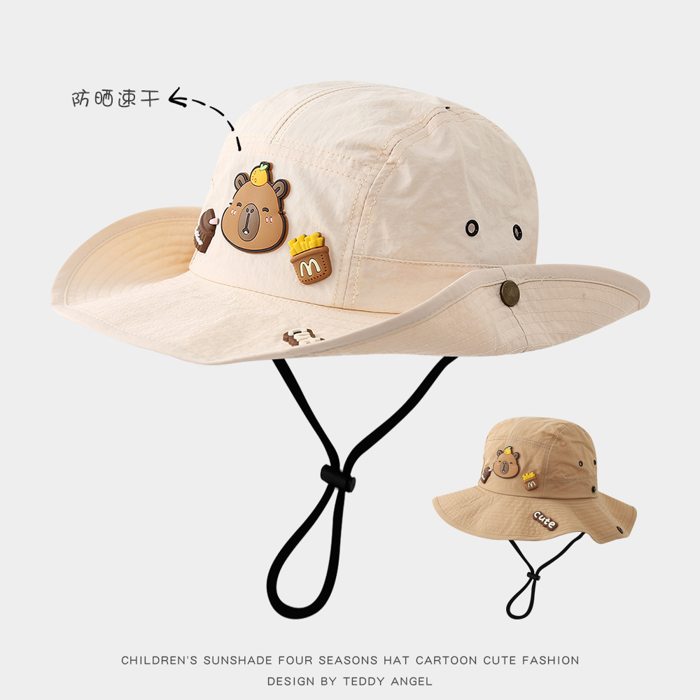 어린이 태양 모자 여름 귀여운 Kapibara 얇은 속건성 태양 보호 분지 모자 큰 챙 아기 어부 모자