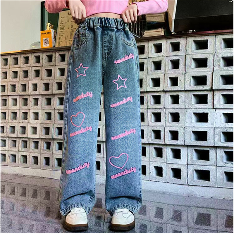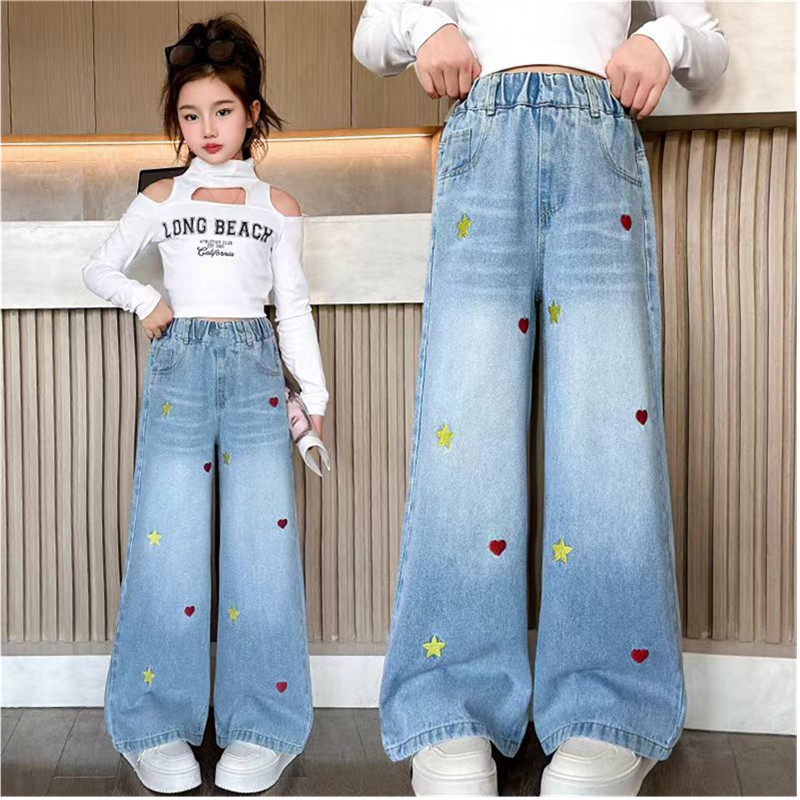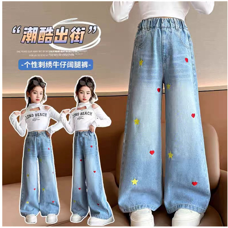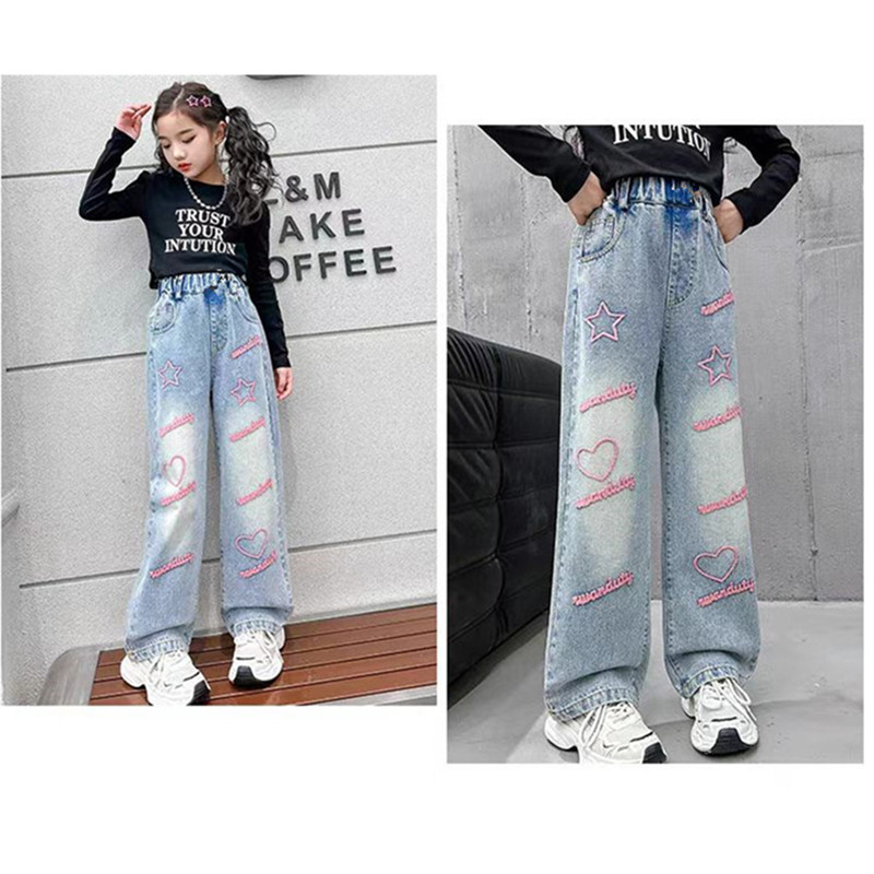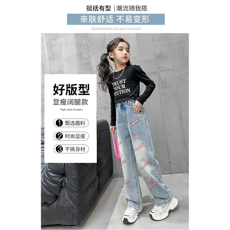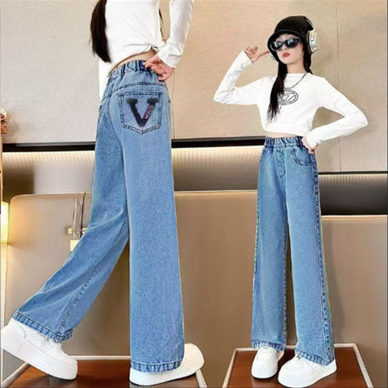 여자 긴 바지 제조 업체 도매 봄과 가을 큰 어린이 바지 슬림 한국 버전의 새로운 어린이 넓은 다리 바지 도매스토어 가기