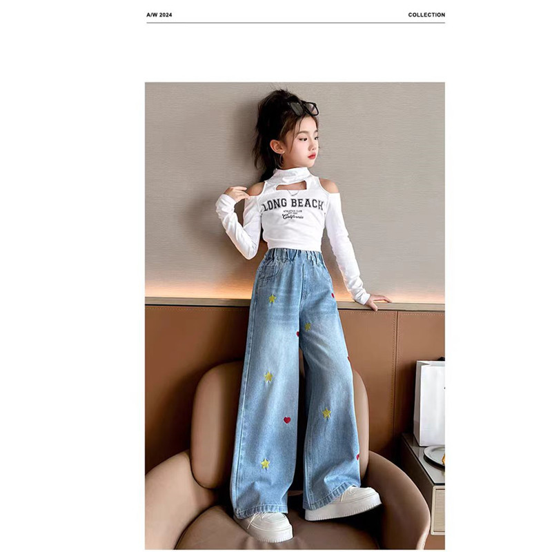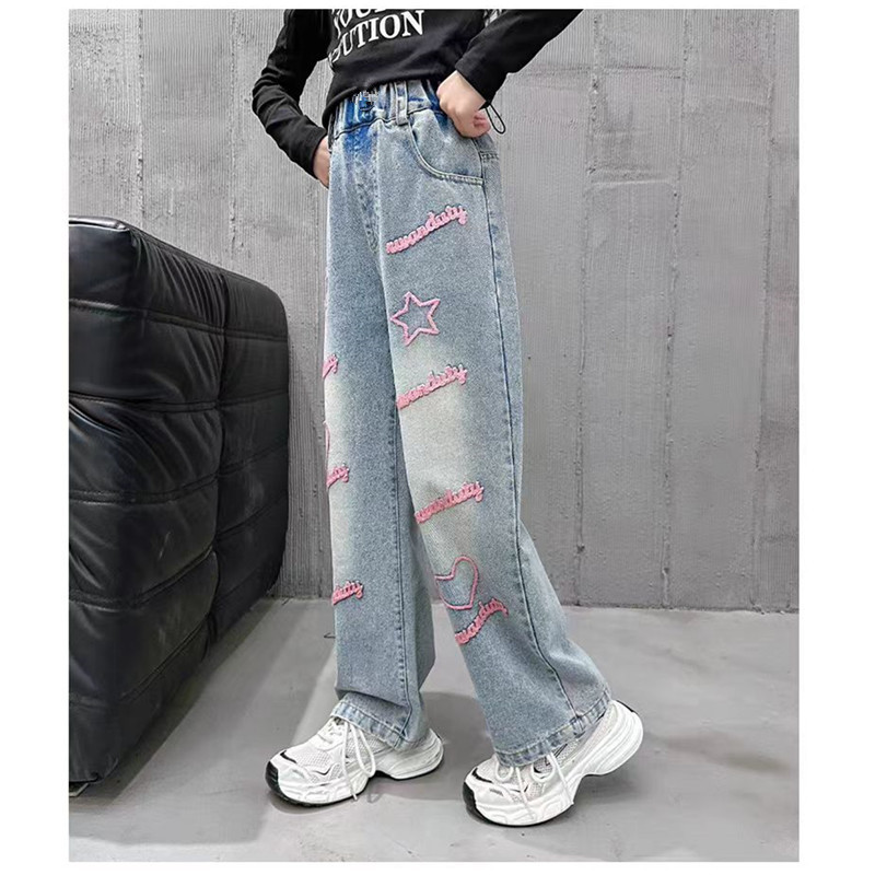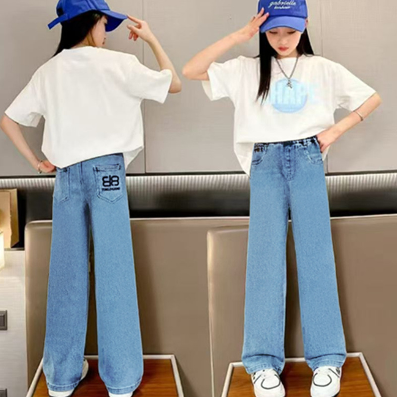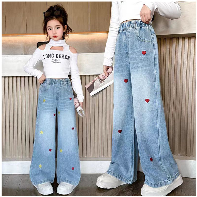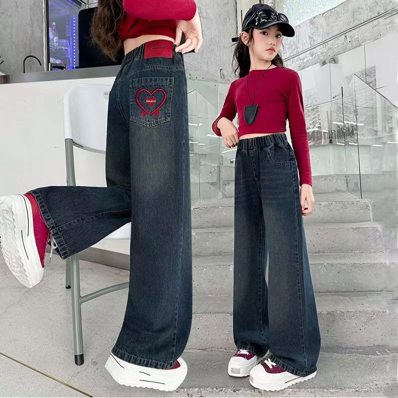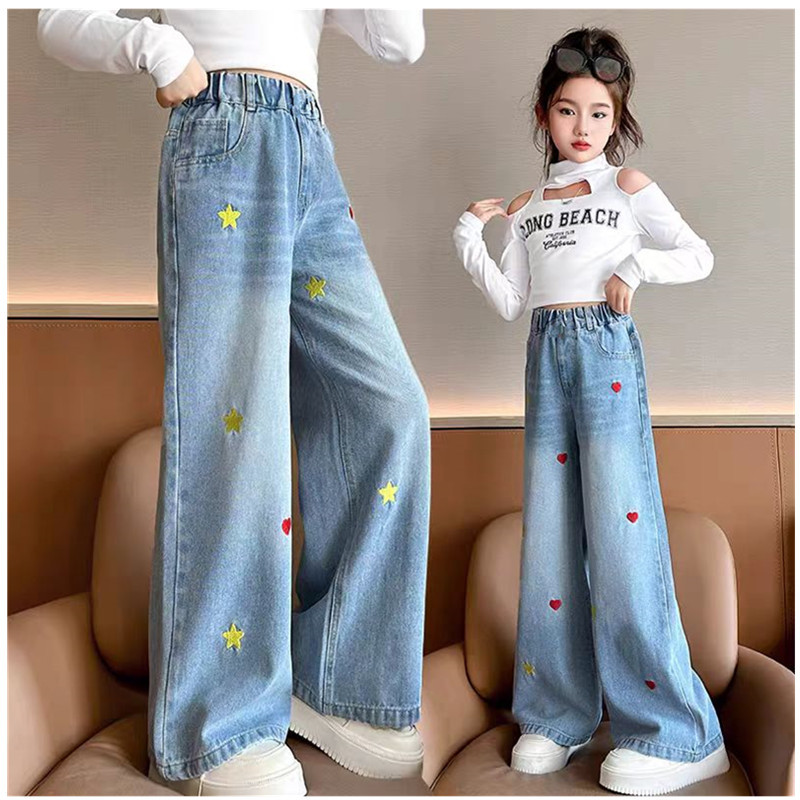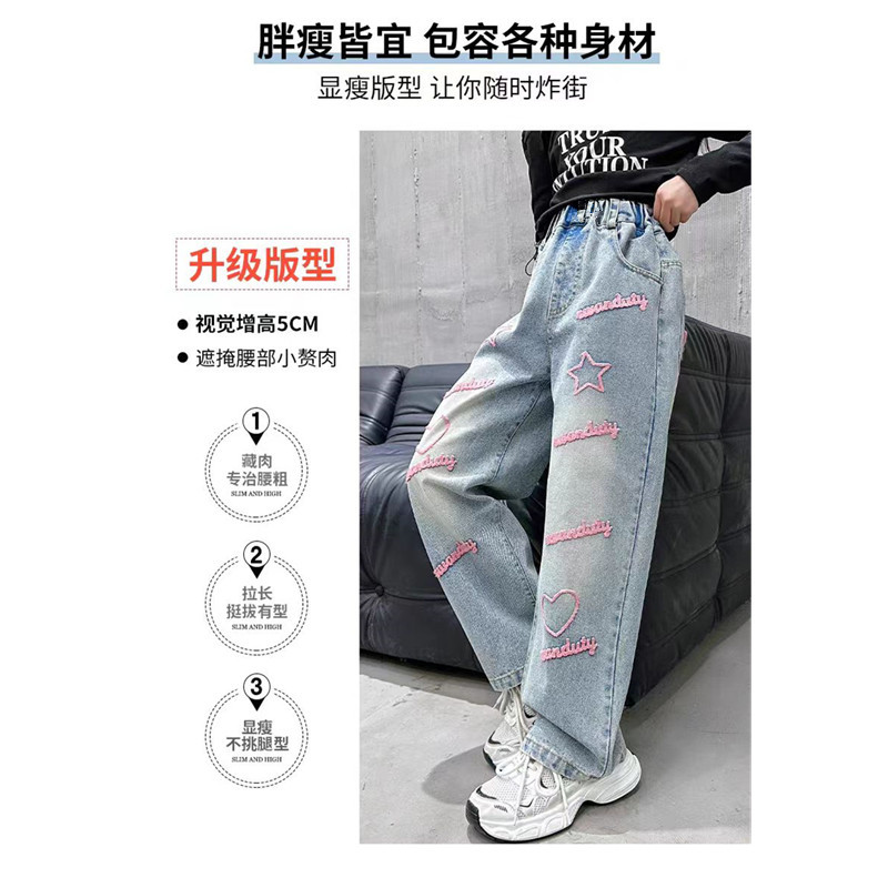 여자 긴 바지 제조 업체 도매 봄과 가을 큰 어린이 바지 슬림 한국 버전의 새로운 어린이 넓은 다리 바지 도매스토어 가기