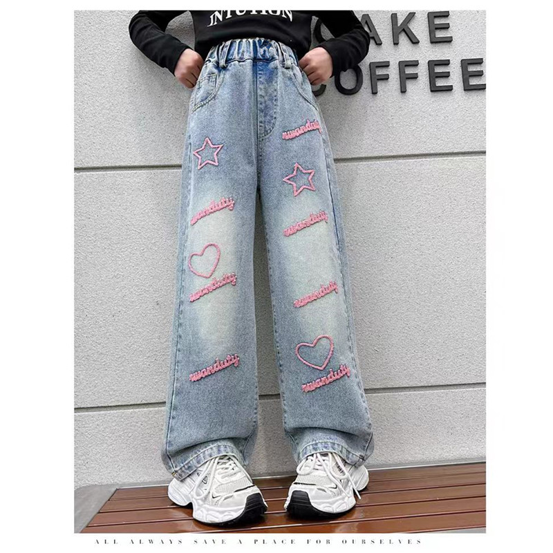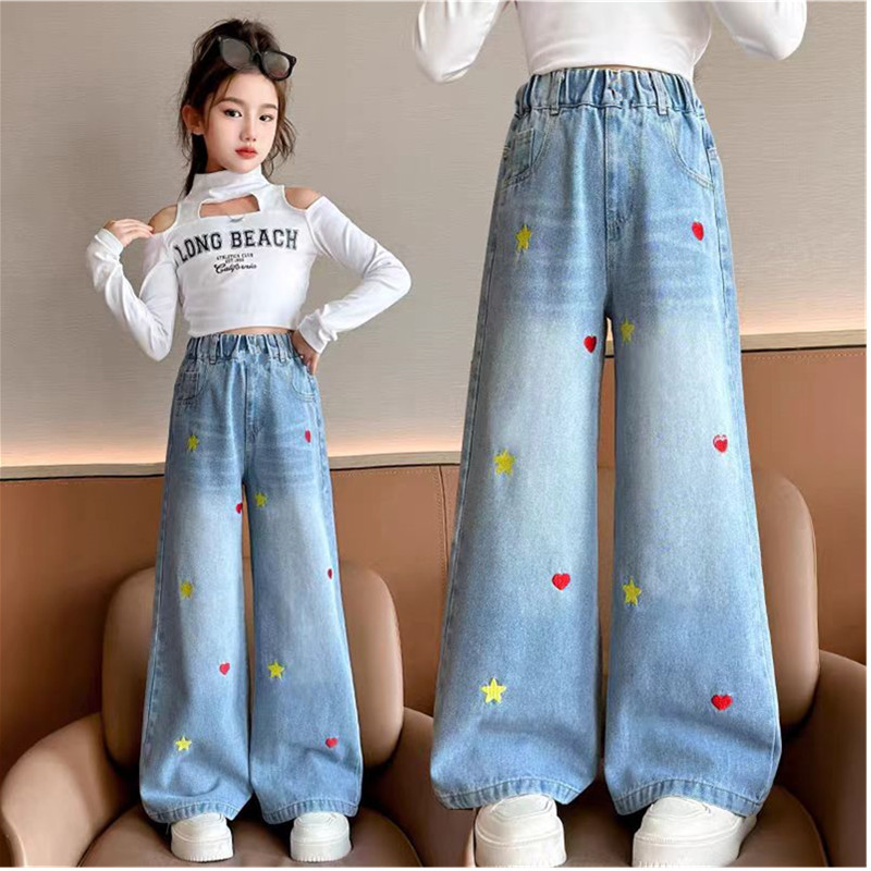 여자 긴 바지 제조 업체 도매 봄과 가을 큰 어린이 바지 슬림 한국 버전의 새로운 어린이 넓은 다리 바지 도매