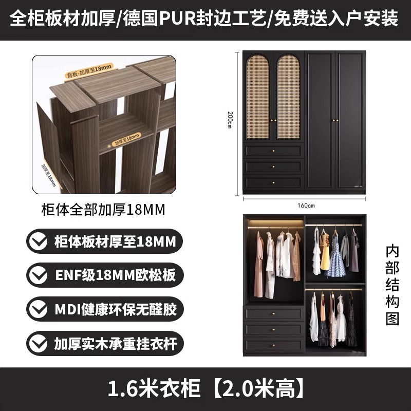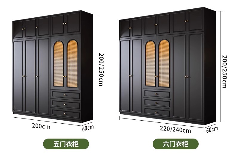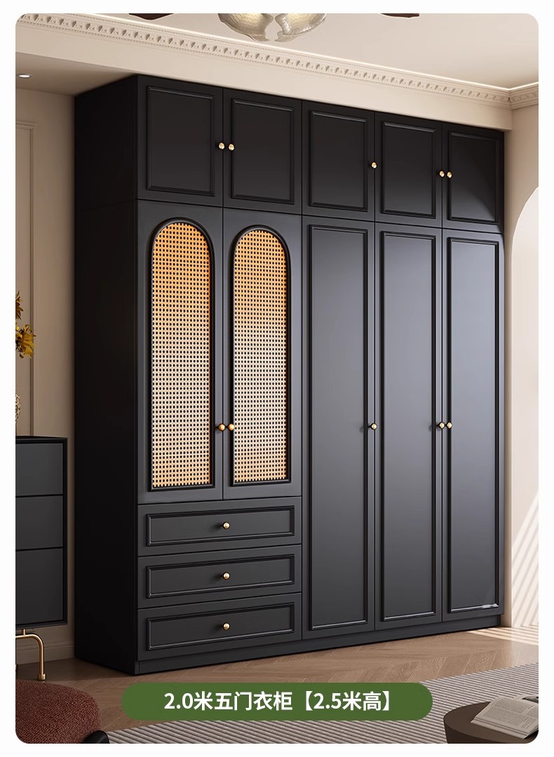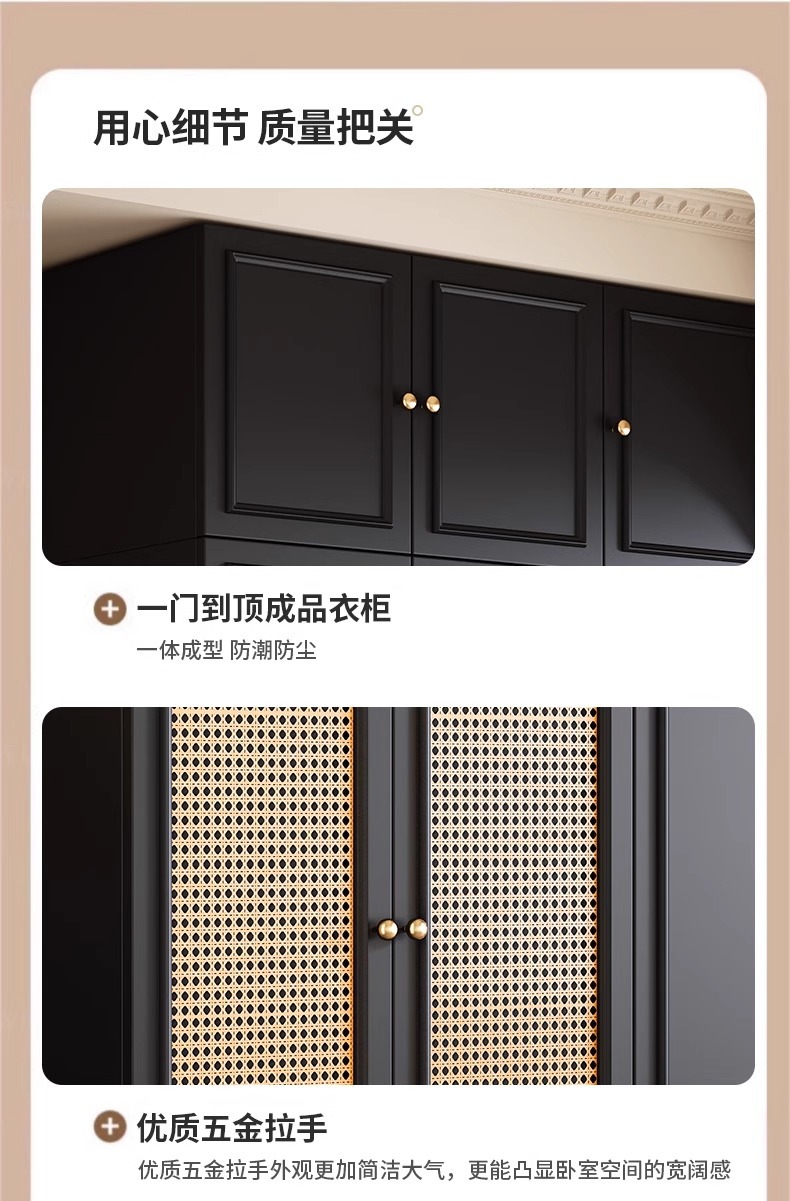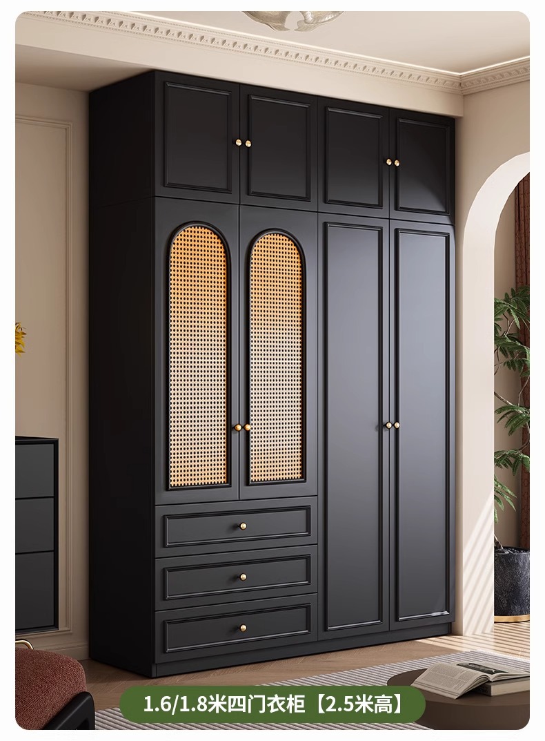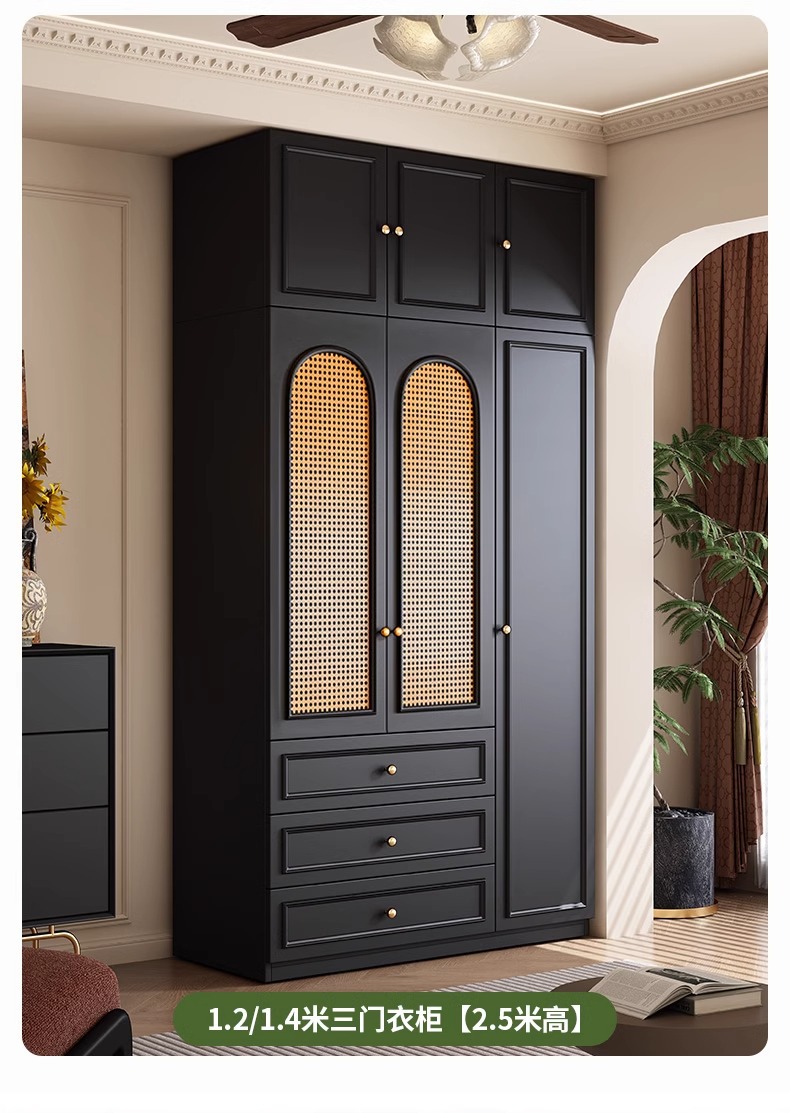 프렌치 레트로 스타일 블랙 옷장 등나무 문 홈 침실 작은 아파트 솔리드 우드 아메리칸 스타일 강력하고 튼튼한 대형 옷장스토어 가기