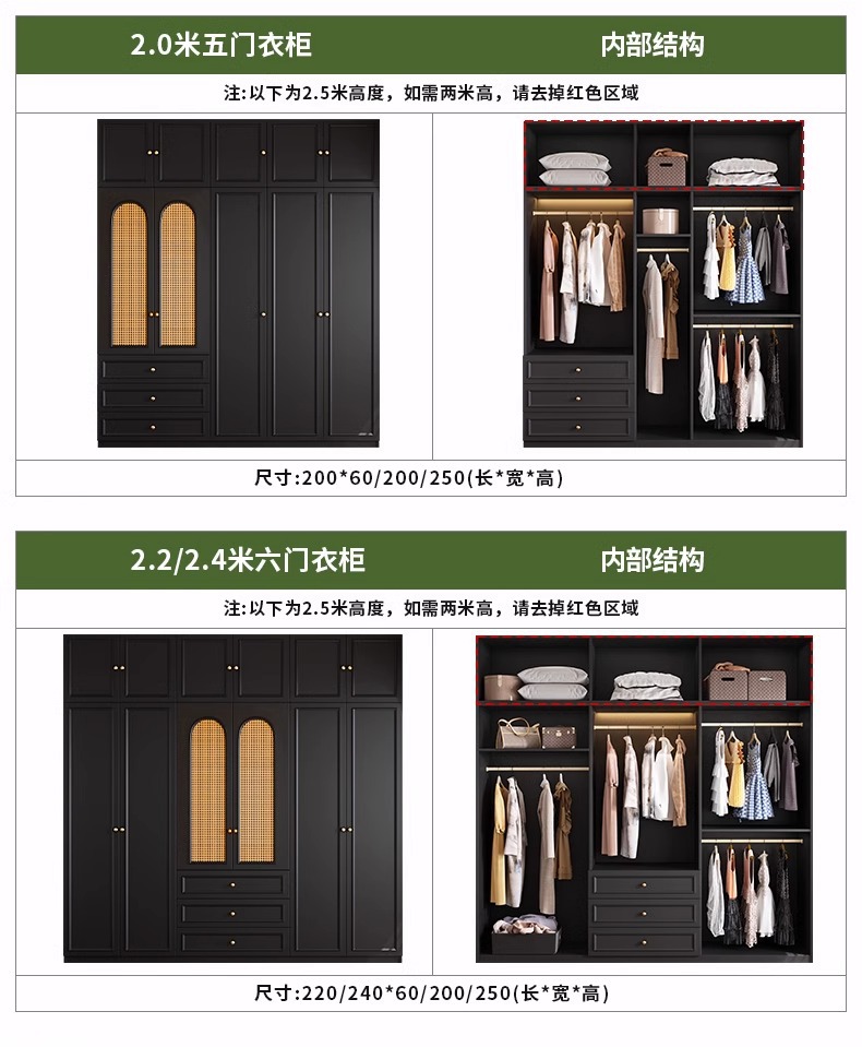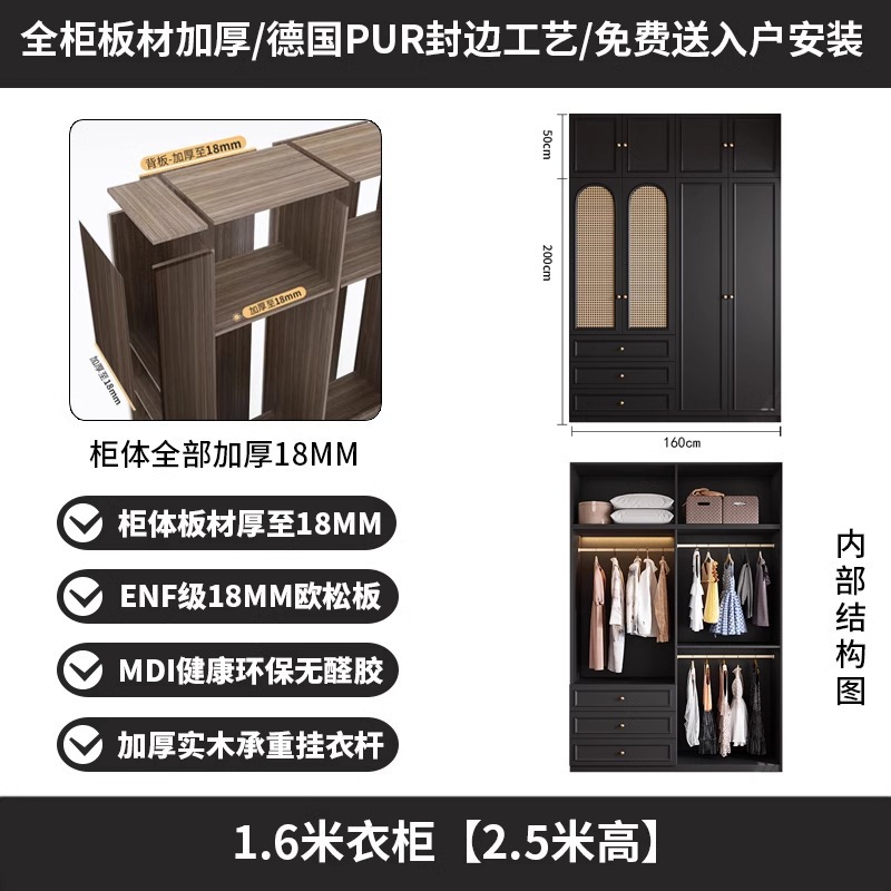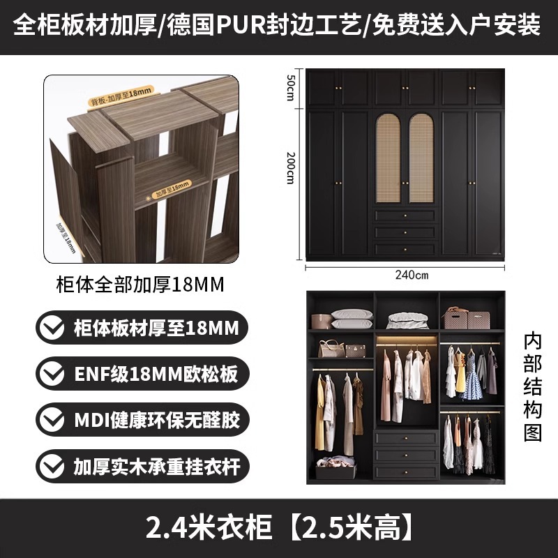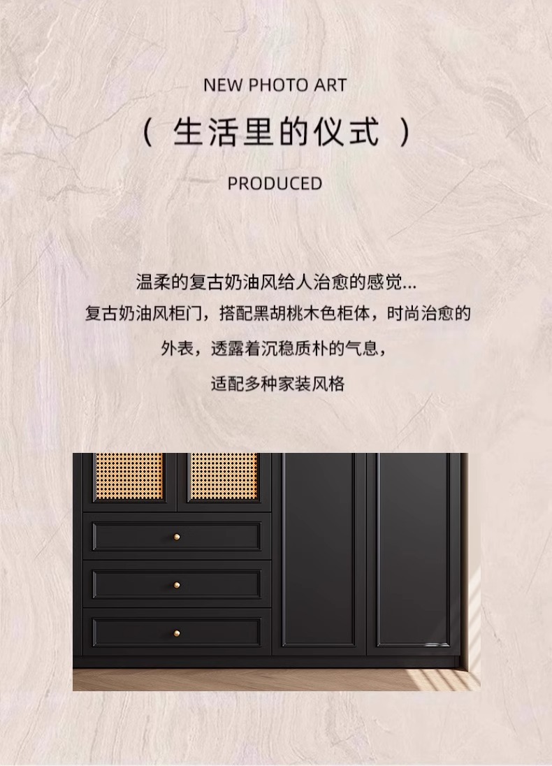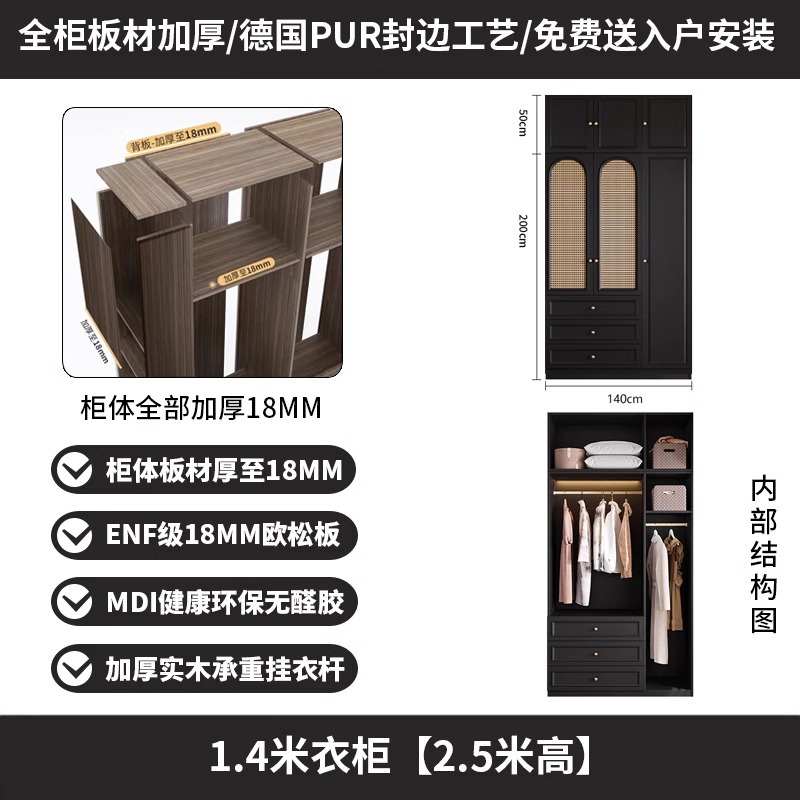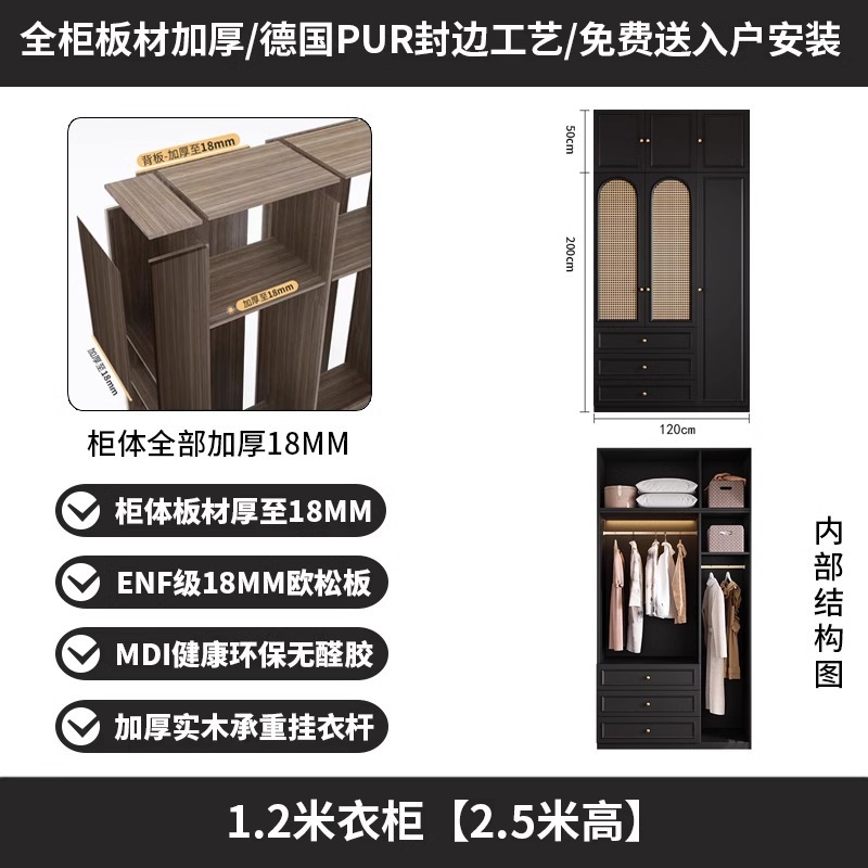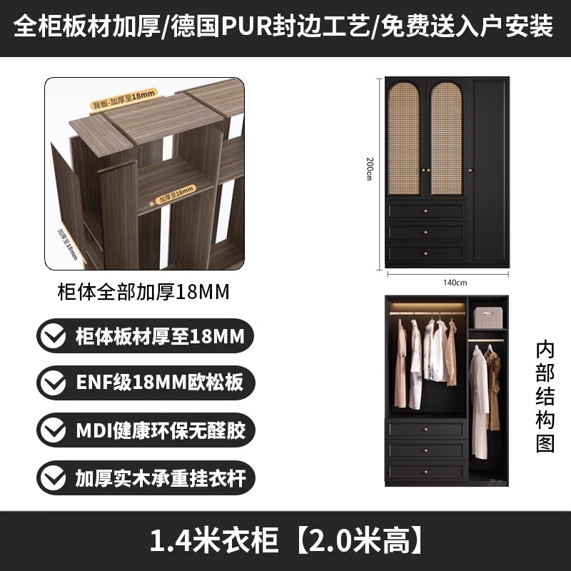 프렌치 레트로 스타일 블랙 옷장 등나무 문 홈 침실 작은 아파트 솔리드 우드 아메리칸 스타일 강력하고 튼튼한 대형 옷장스토어 가기
